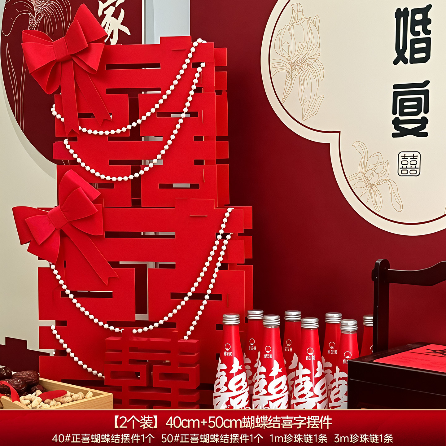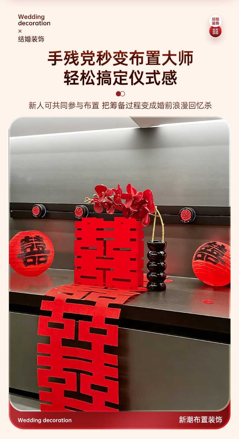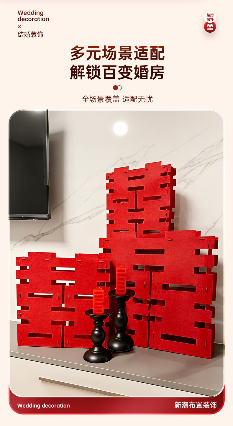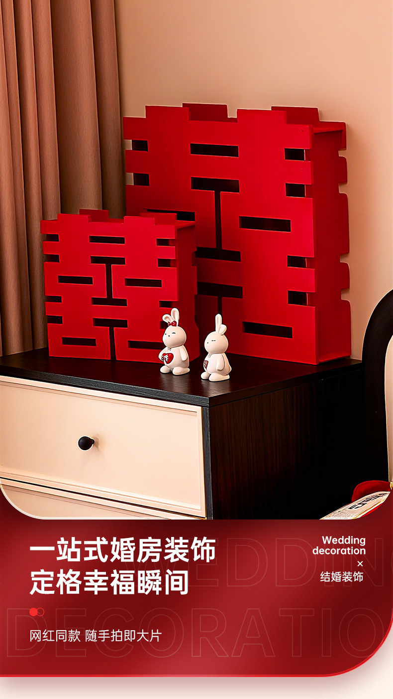 结婚立体喜字摆件婚房布置套装婚礼卧室床头柜子氛围装饰拍照道具