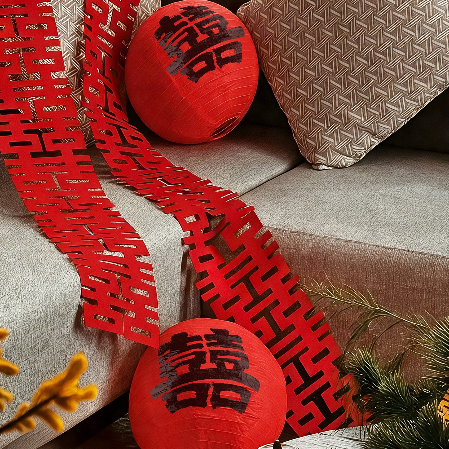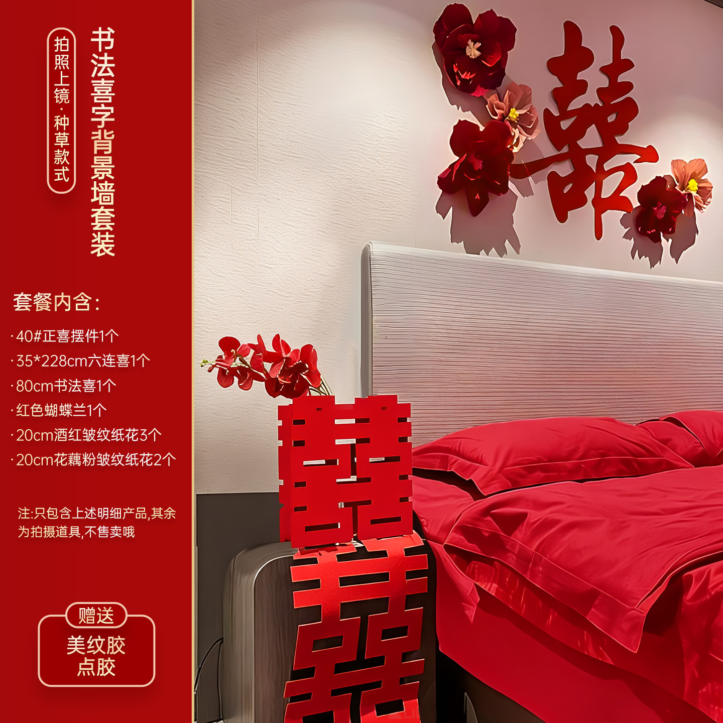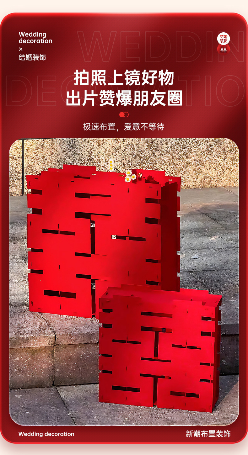 结婚立体喜字摆件婚房布置套装婚礼卧室床头柜子氛围装饰拍照道具