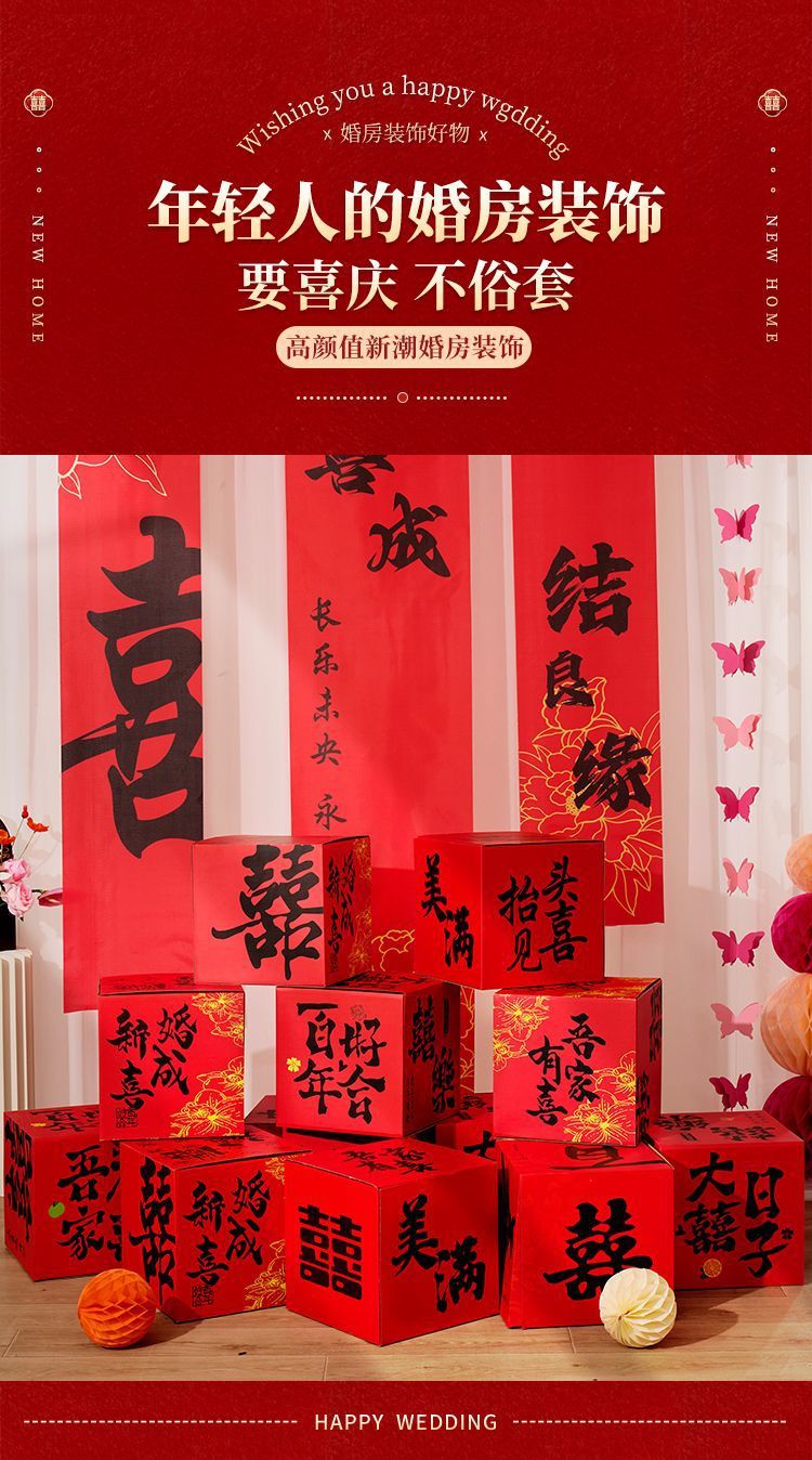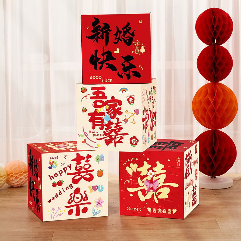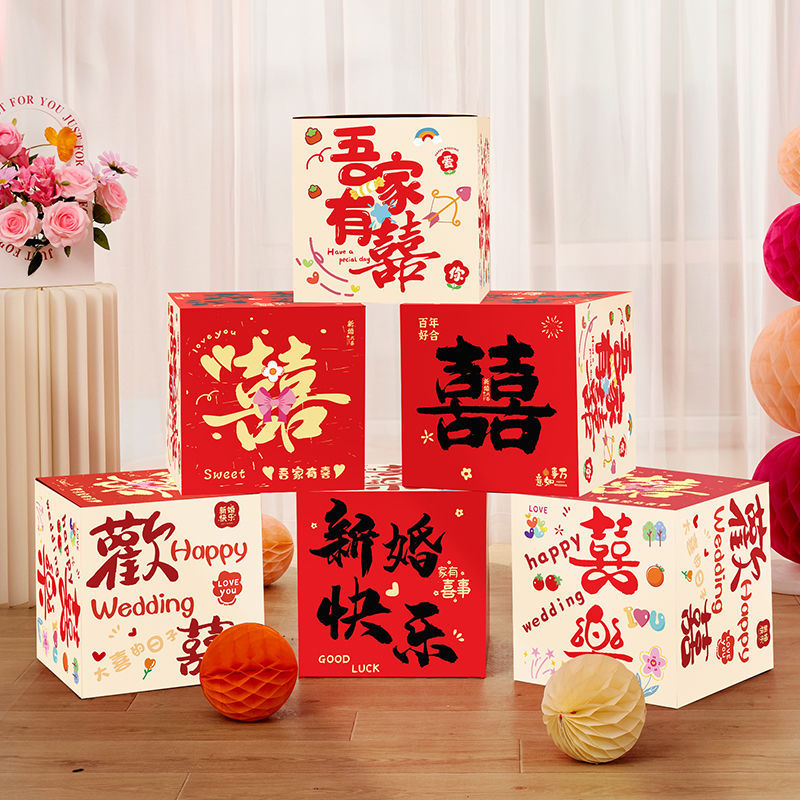 吾家婚品婚房布置纸板小喜盒子摆件结婚拍照道具装饰婚房卧室装饰