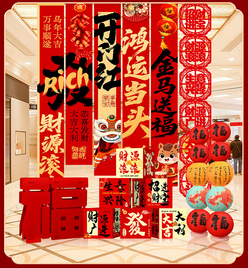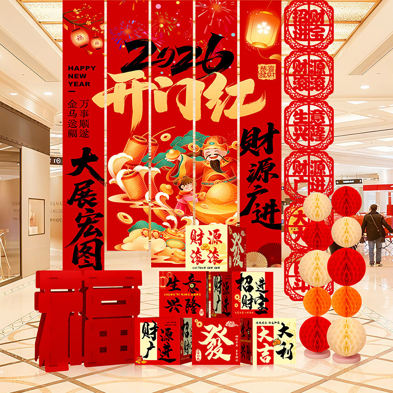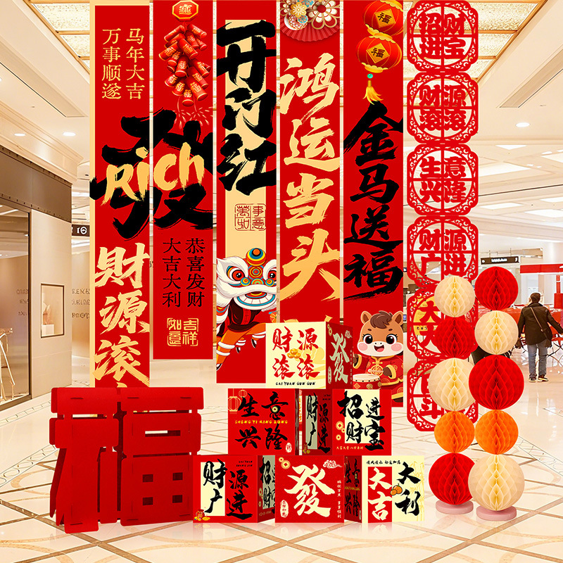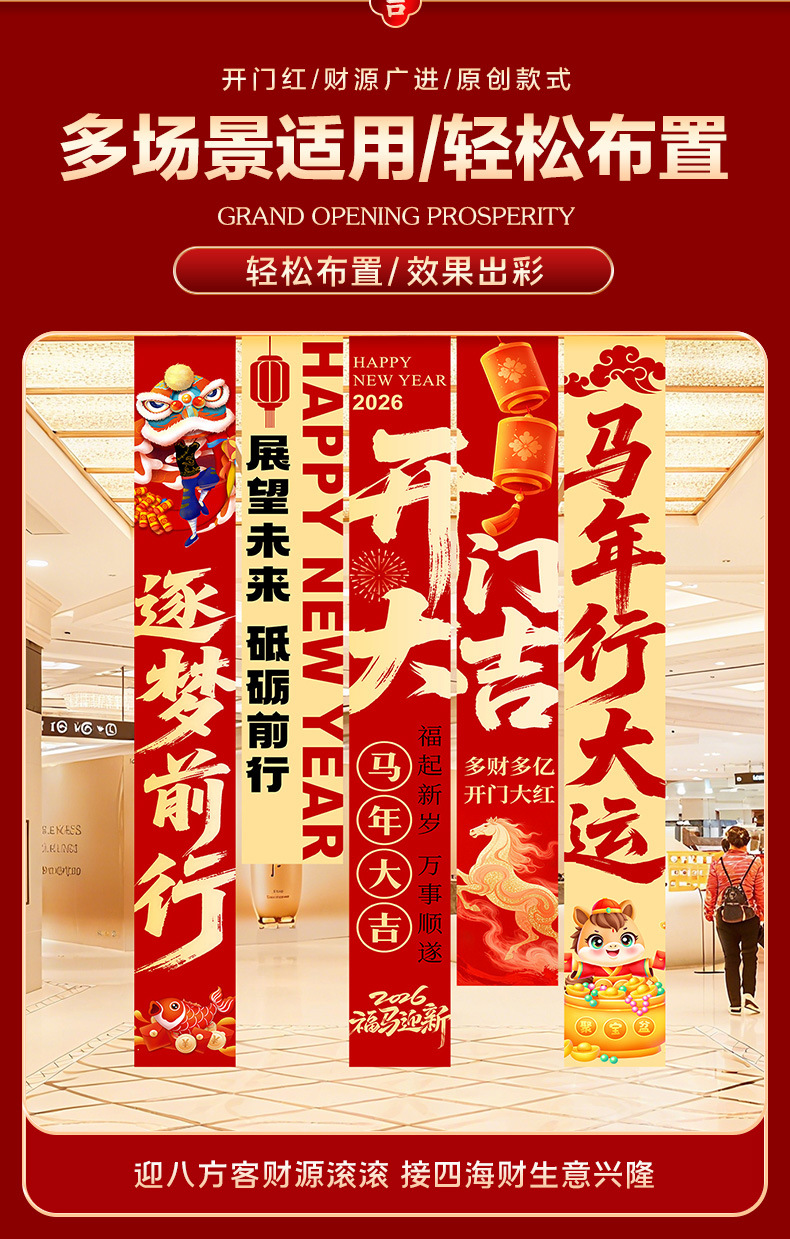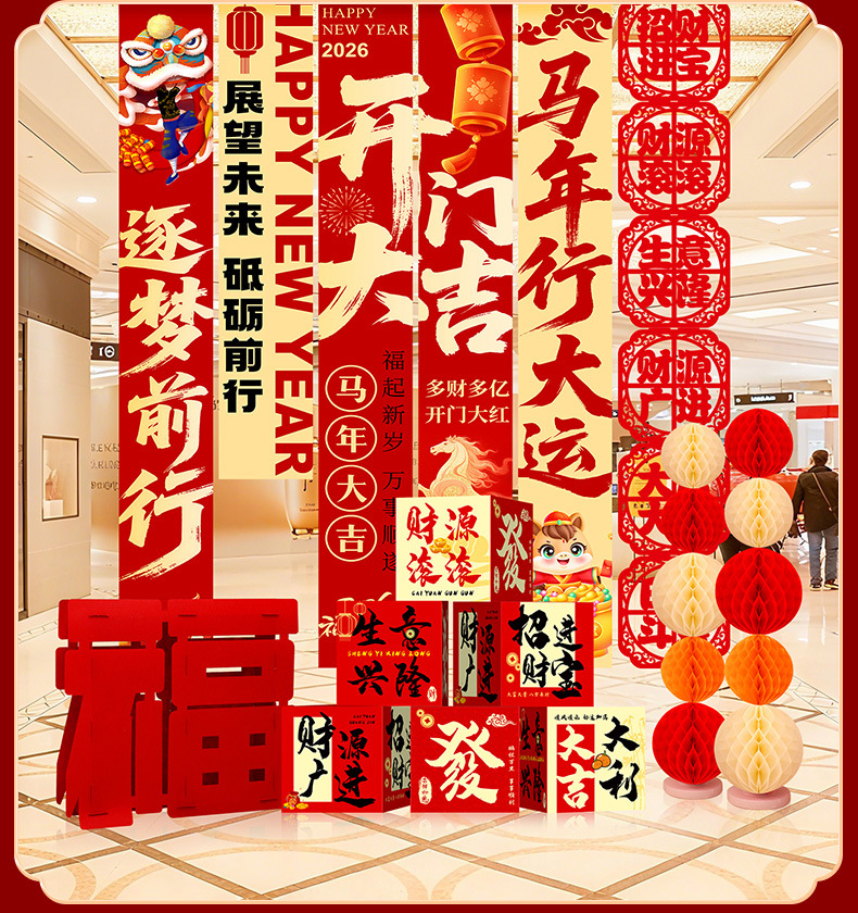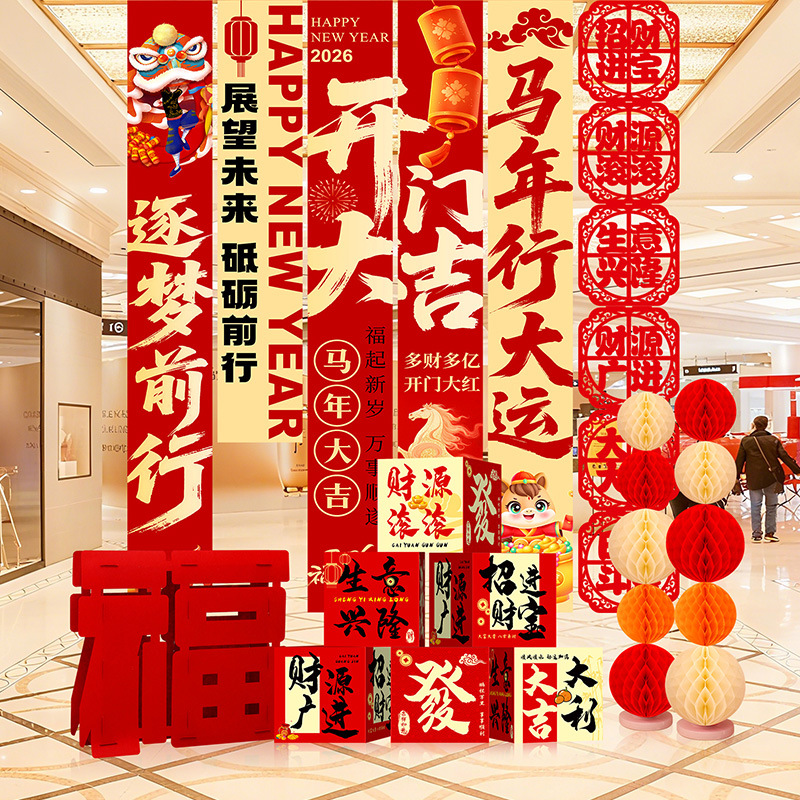 开门红气氛布置装饰保险公司商场银行职场新马年活动道具背景挂布