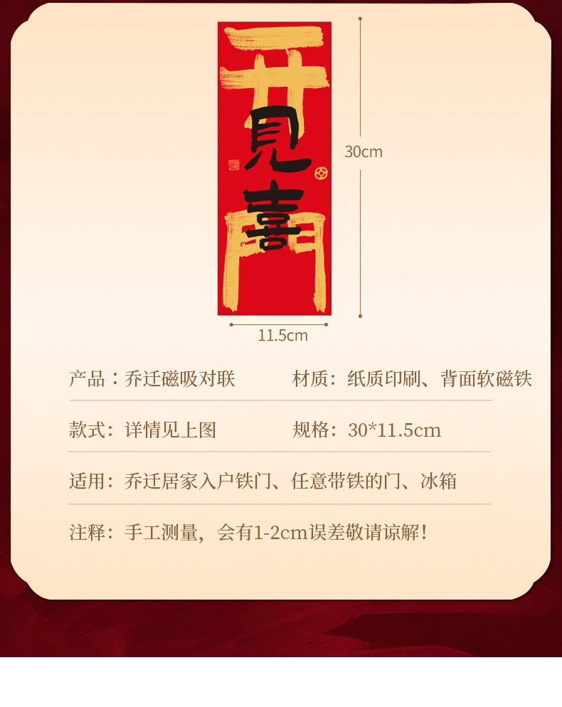磁吸小对联乔迁之喜门联入户防盗门门贴装饰搬家入宅新居布置仪式