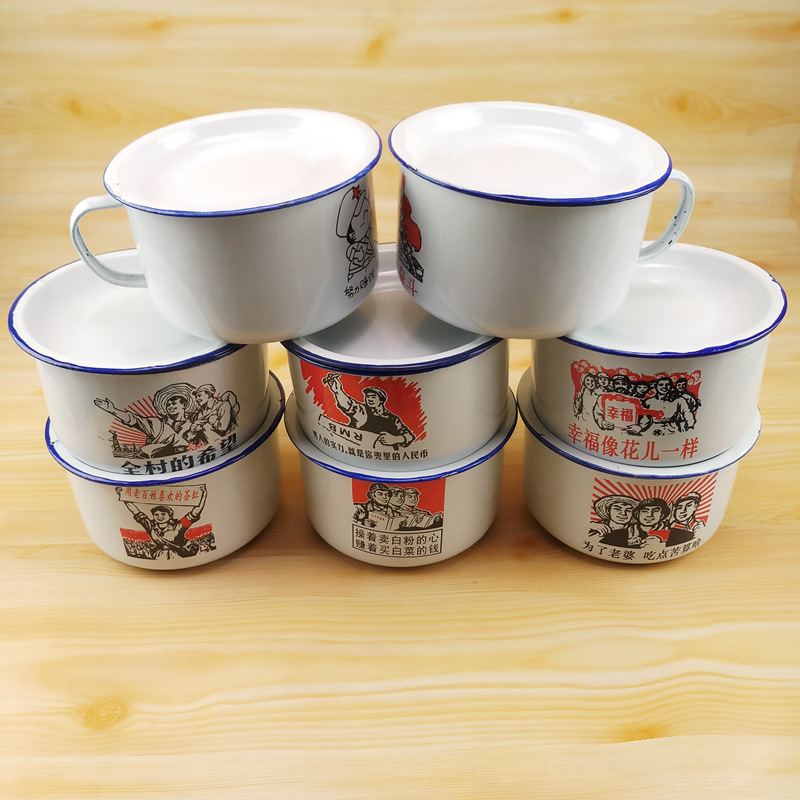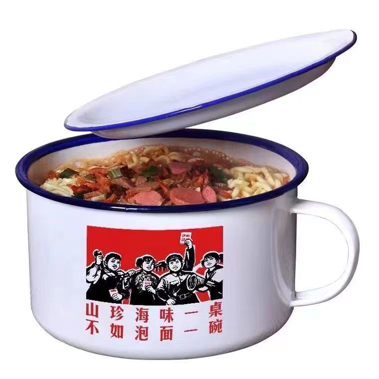 老式搪瓷缸子带盖子快餐杯怀旧茶缸泡面碗搪瓷杯大饭缸打工人饭盒