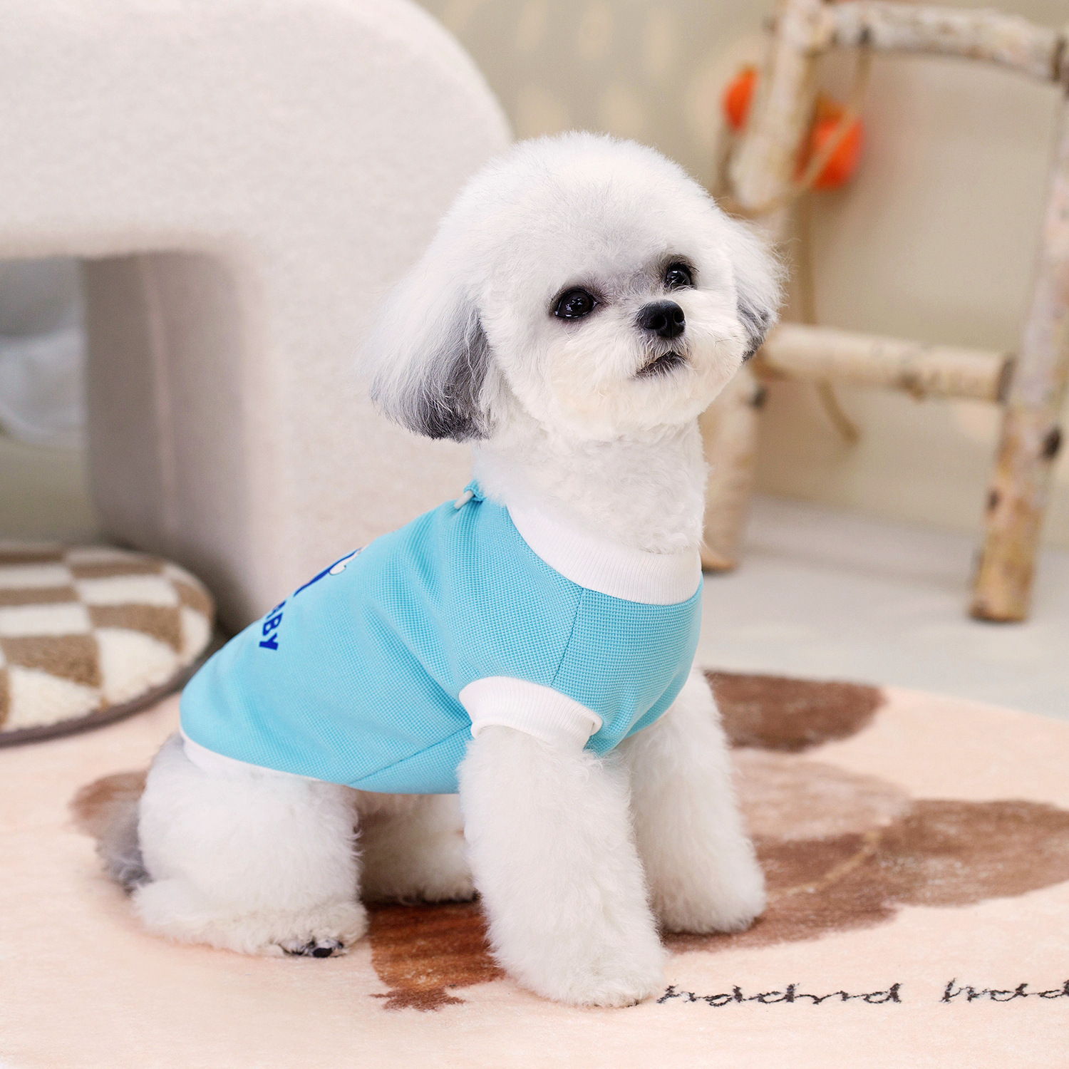 宠物狗狗衣服宠物服装春夏比熊泰迪宠物背心吊带24华夫格印花T恤