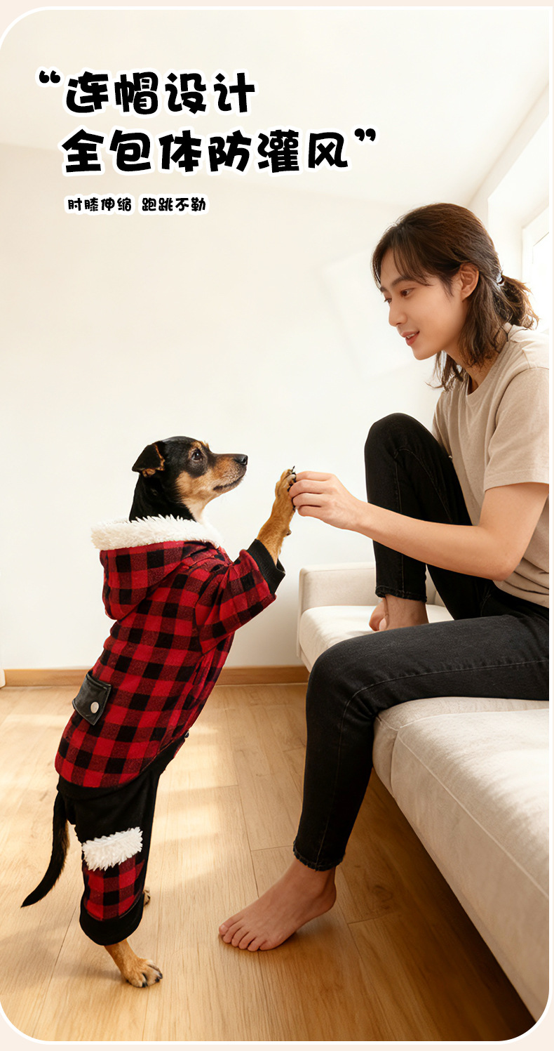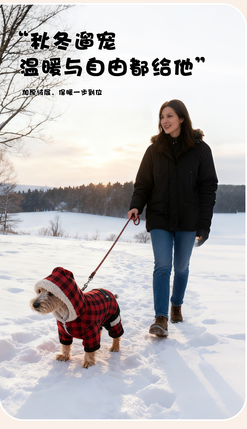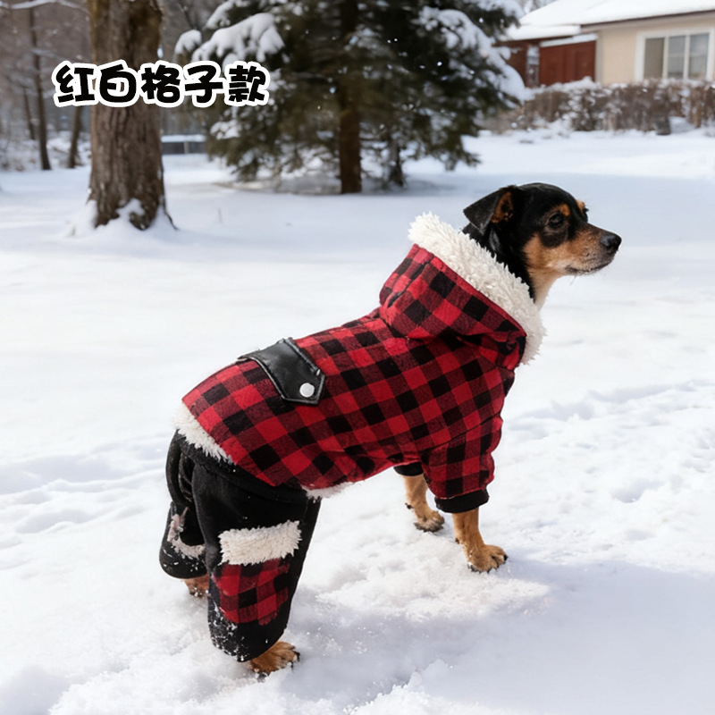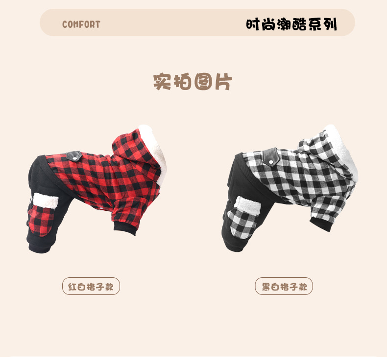 连帽新款宠物衣服 秋冬格子狗狗衣服 可定制加厚宠物狗服装亚马逊