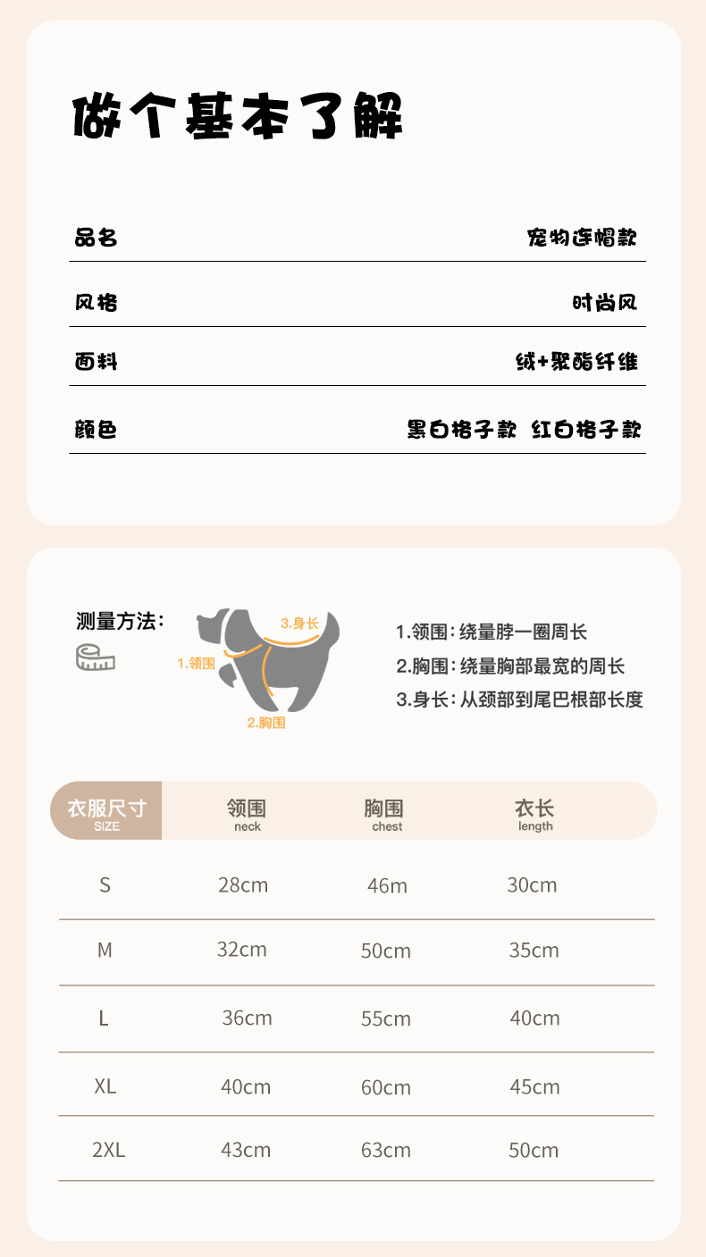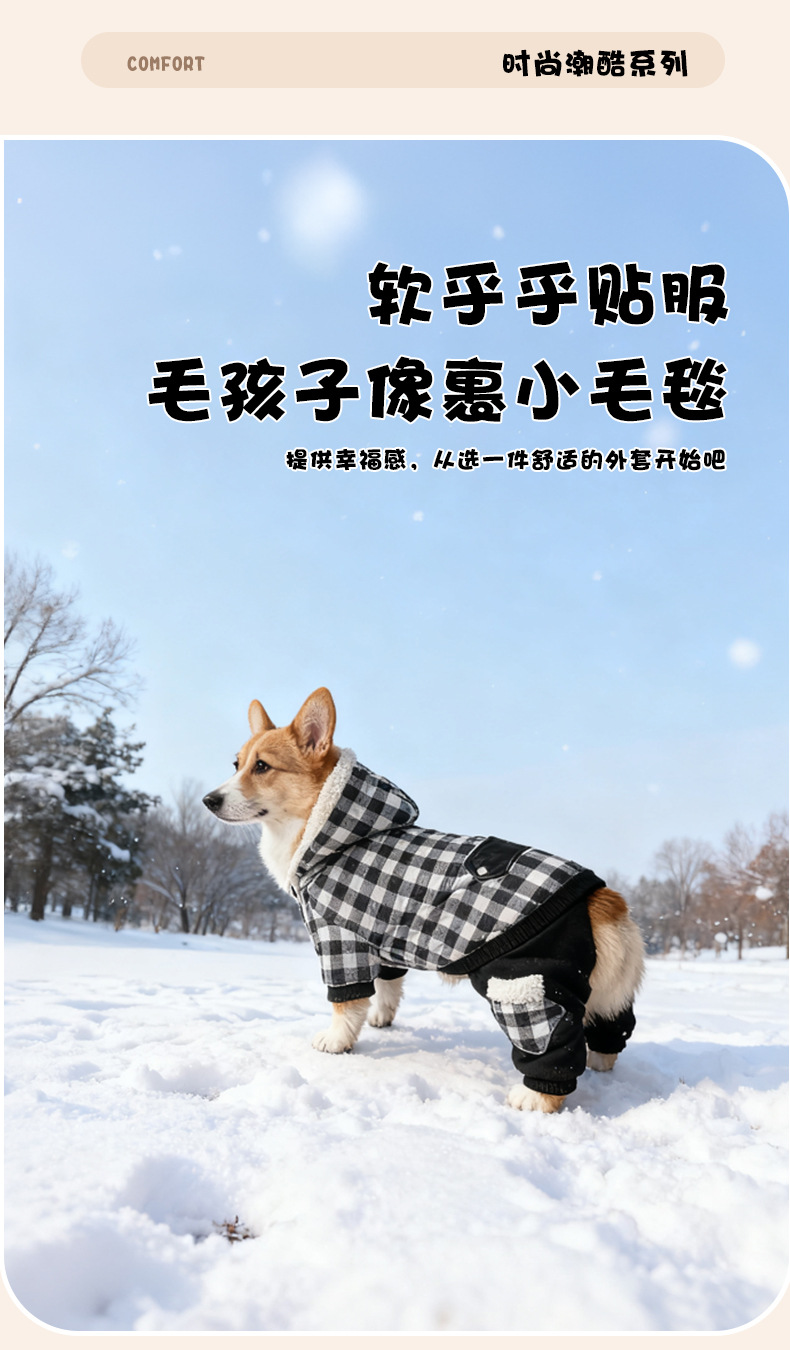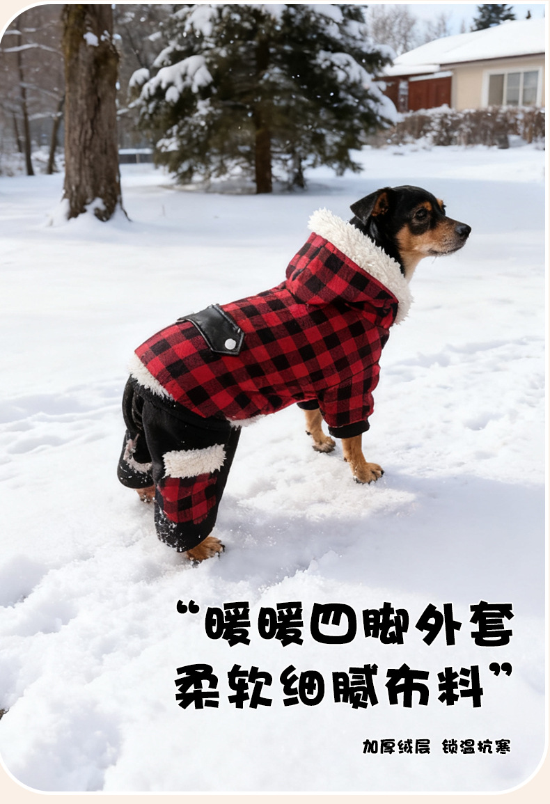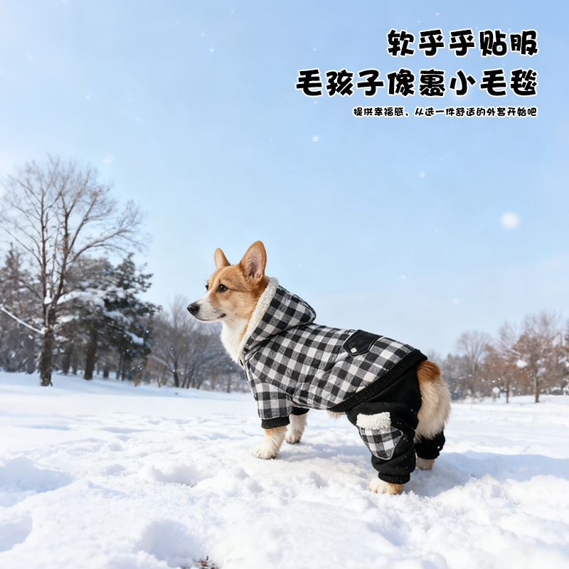 连帽新款宠物衣服 秋冬格子狗狗衣服 可定制加厚宠物狗服装亚马逊