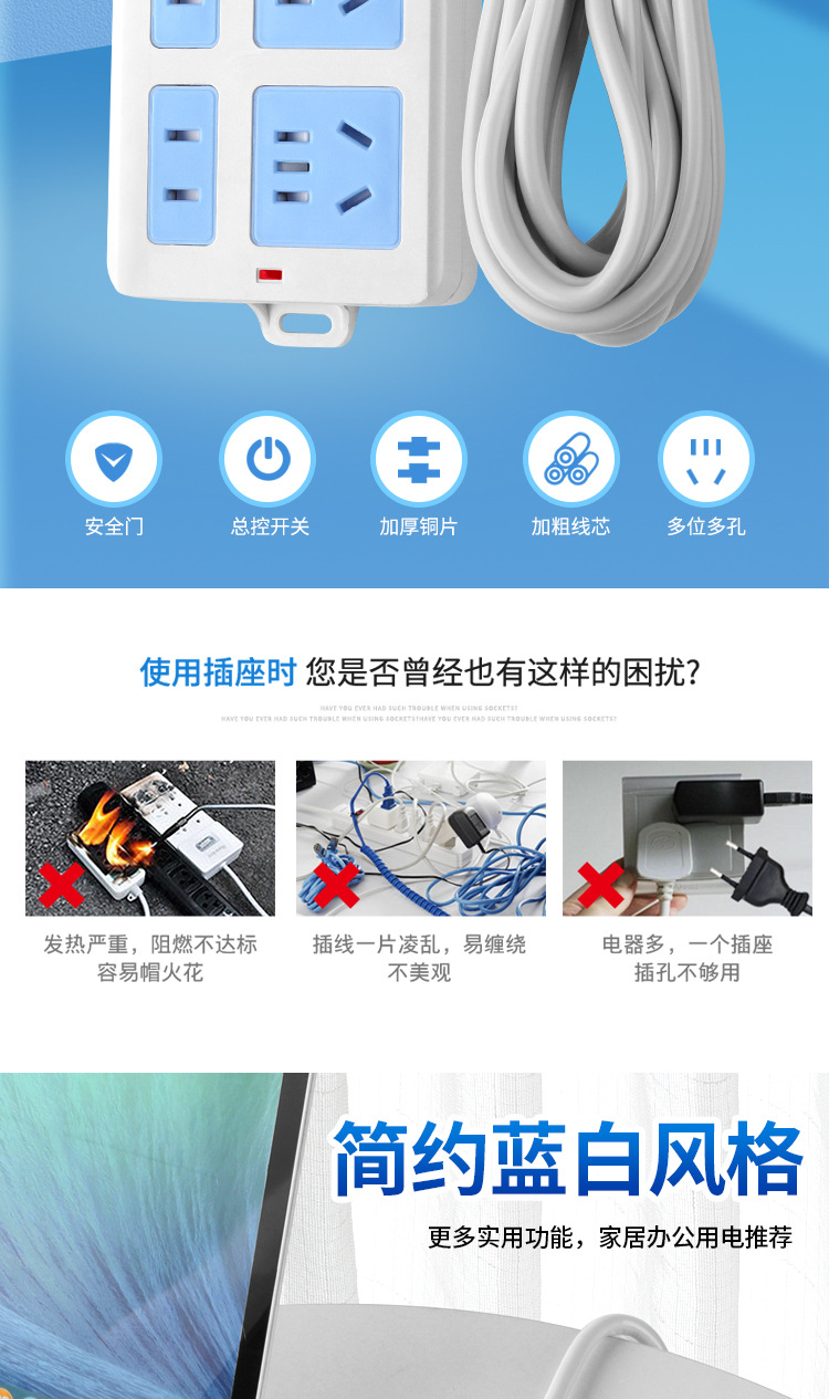 工厂批发大功率排插 办公室转换插座保护门插排 新标准插线板