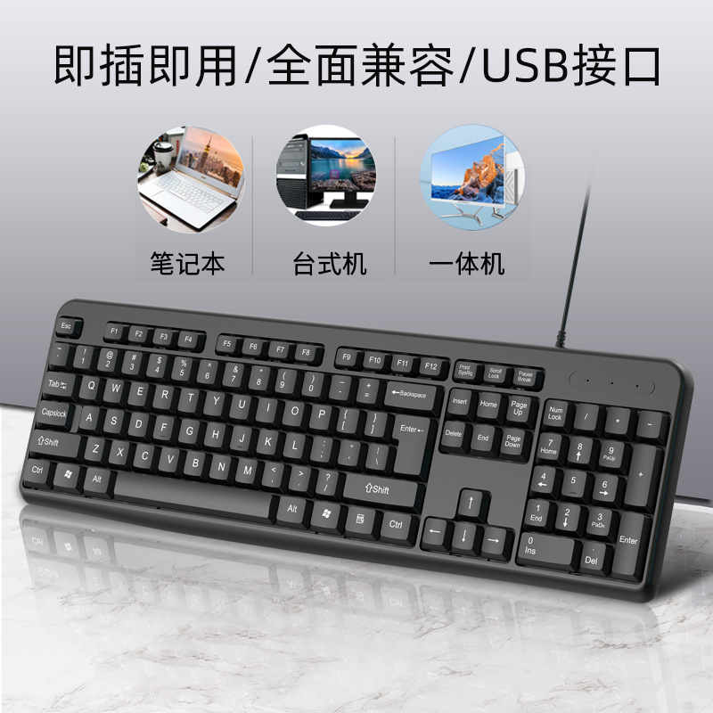 厂家直供有线键盘适用商务办公家用轻薄USB台式电脑配件键盘跨境