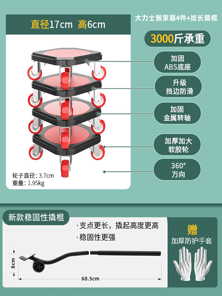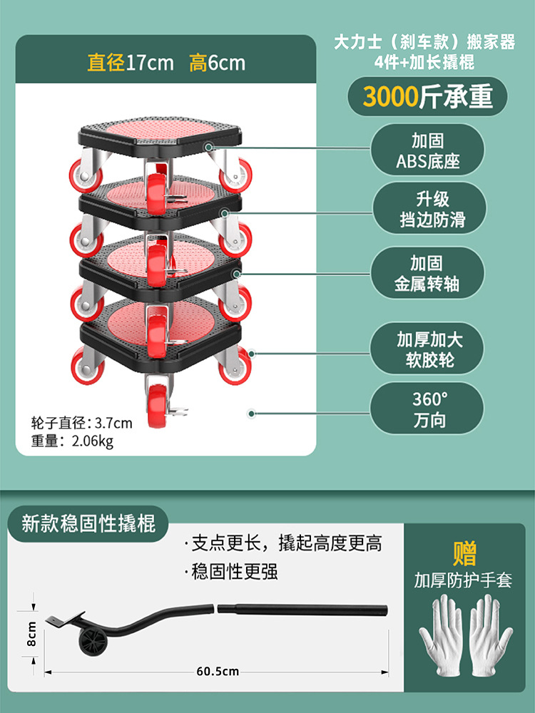 | 大力士搬家器+锁刹+金属转轴+防滑设计 | USD $12.93 | 9941 set available |