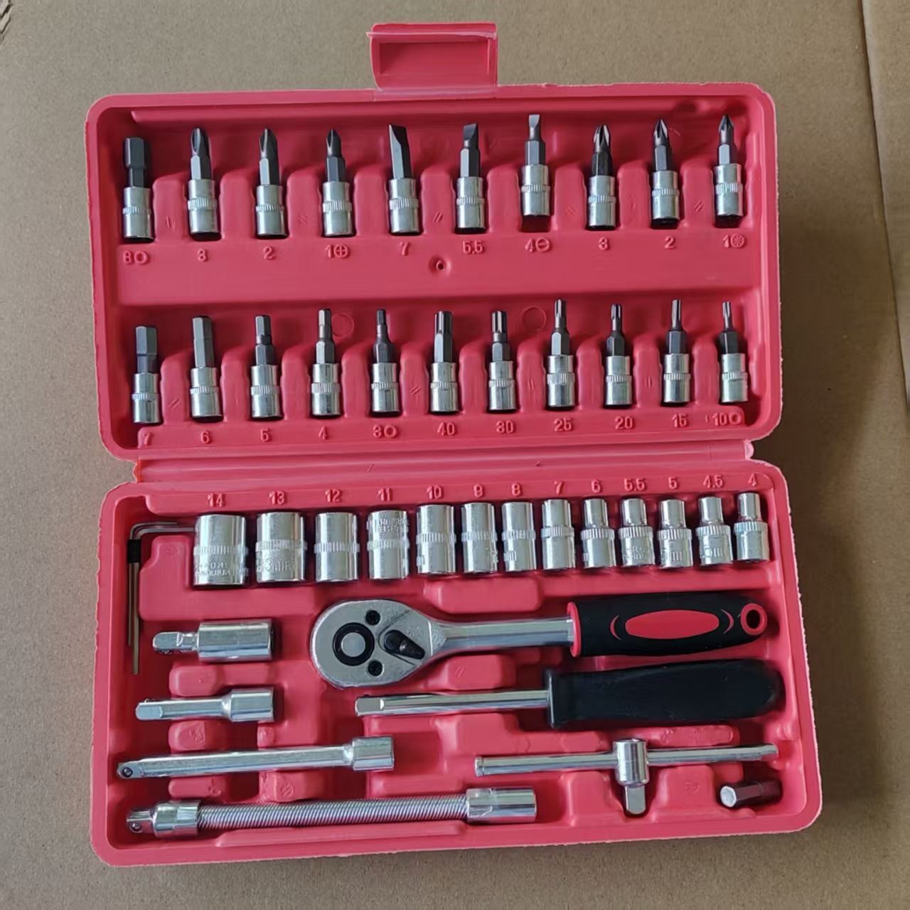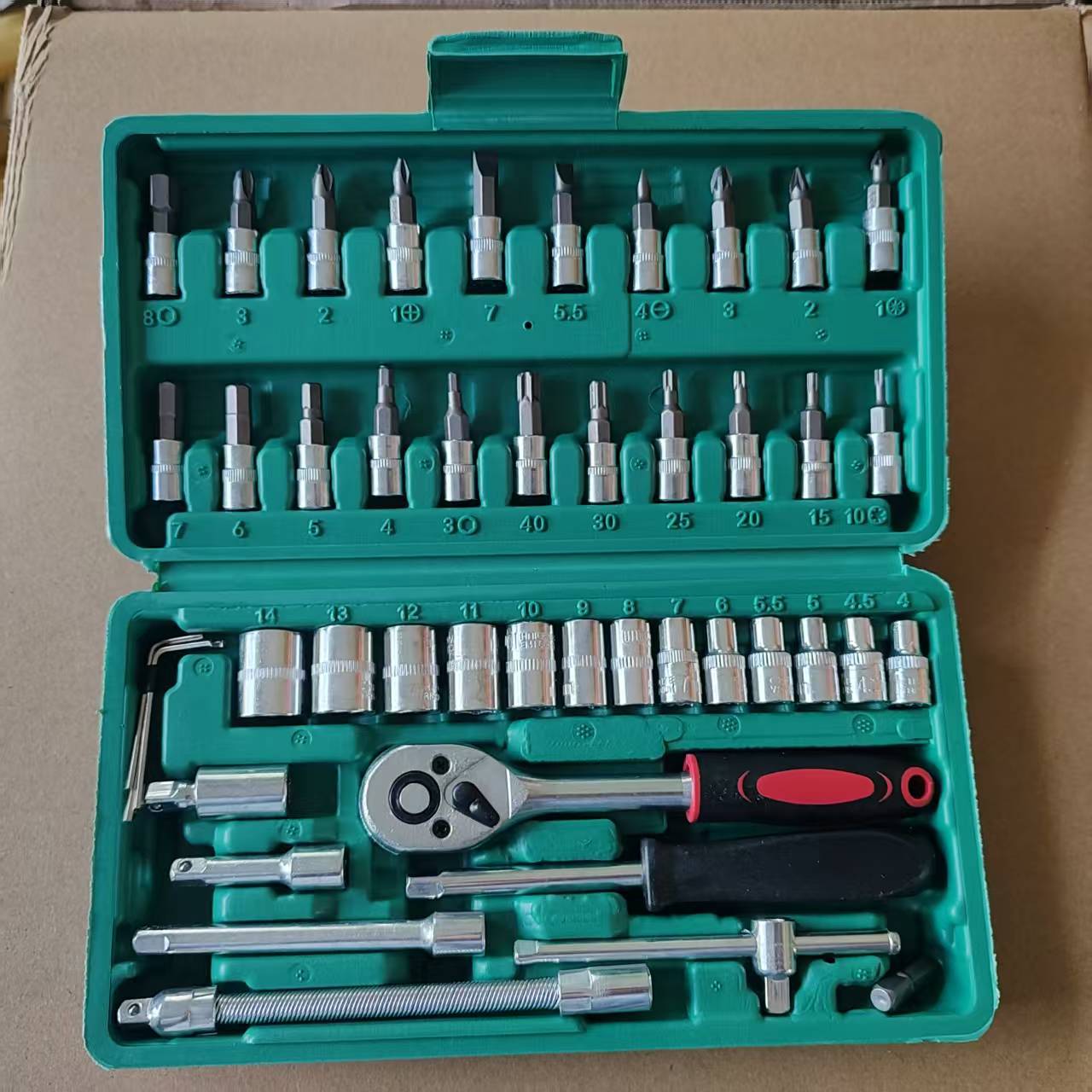 46件套汽修工具套装 套筒工具带棘轮扳手 批头组合工具套装汽配