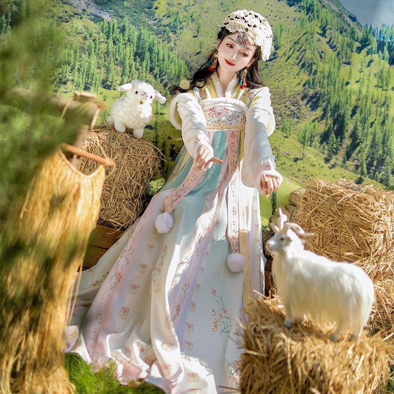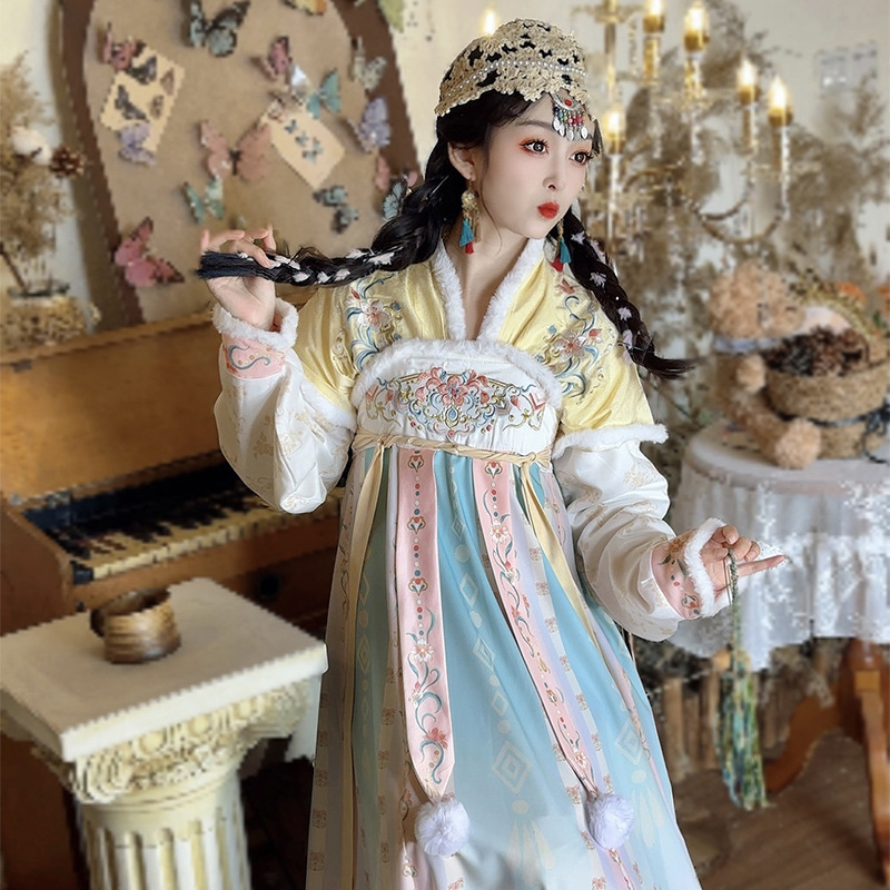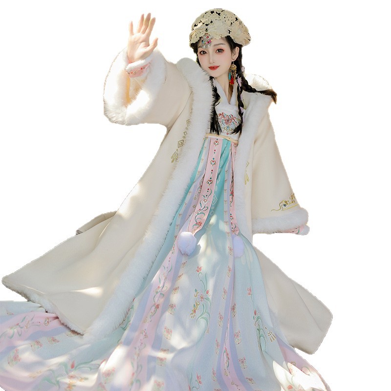 冬季原创齐胸汉服女2025新款唐制加绒加厚斗篷日常通勤中国风古装