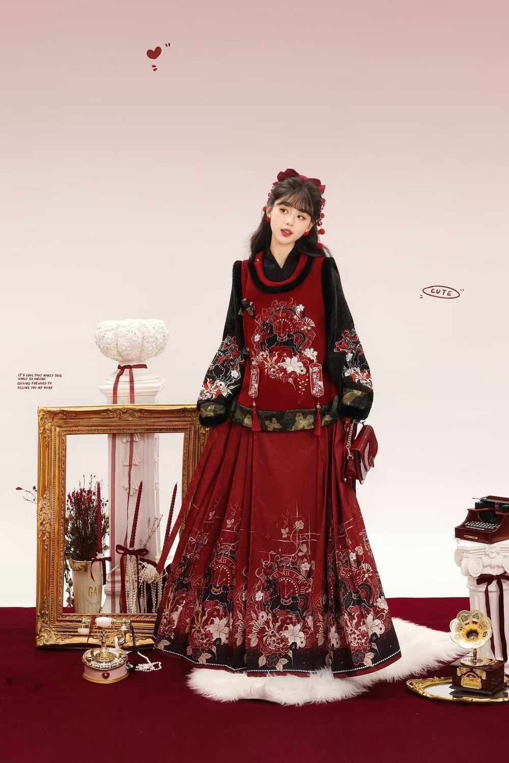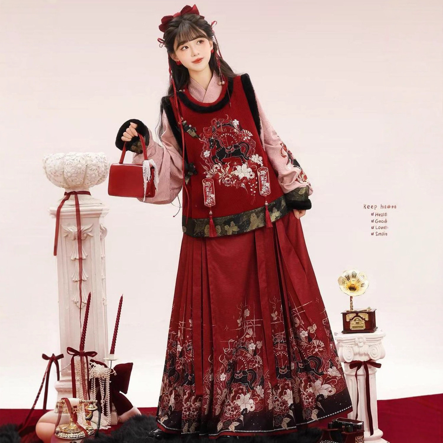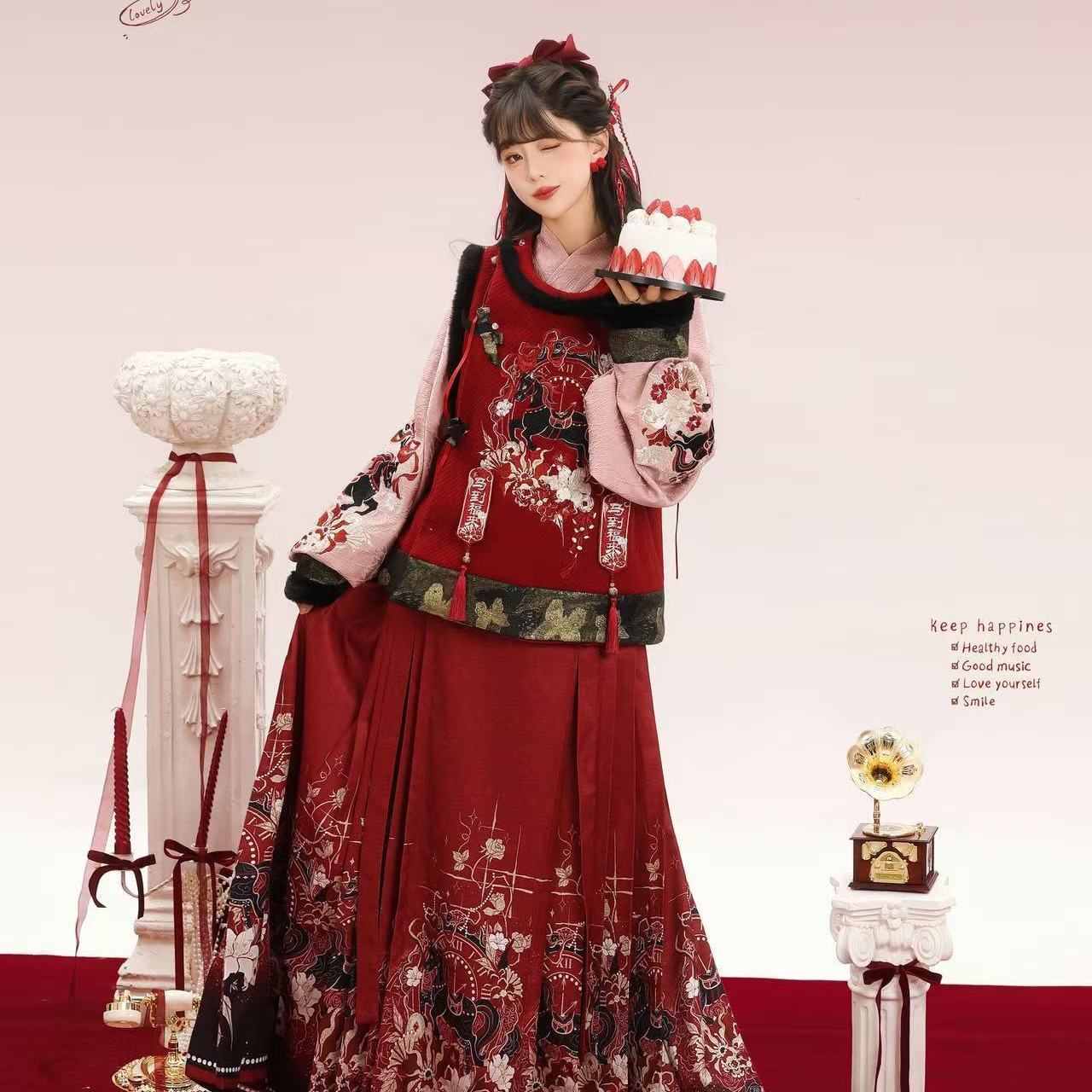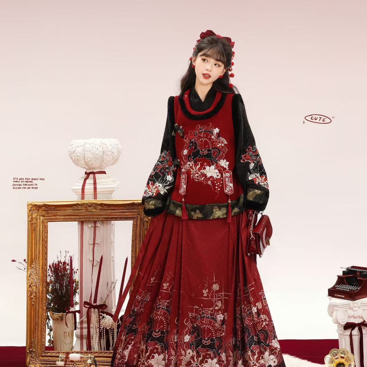 原创汉服女2026新款明制国风拜年服马面裙冬季日常通勤汉元素套装