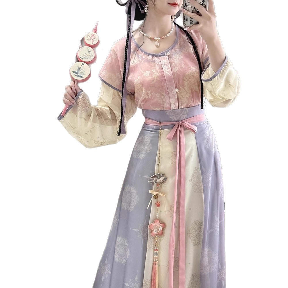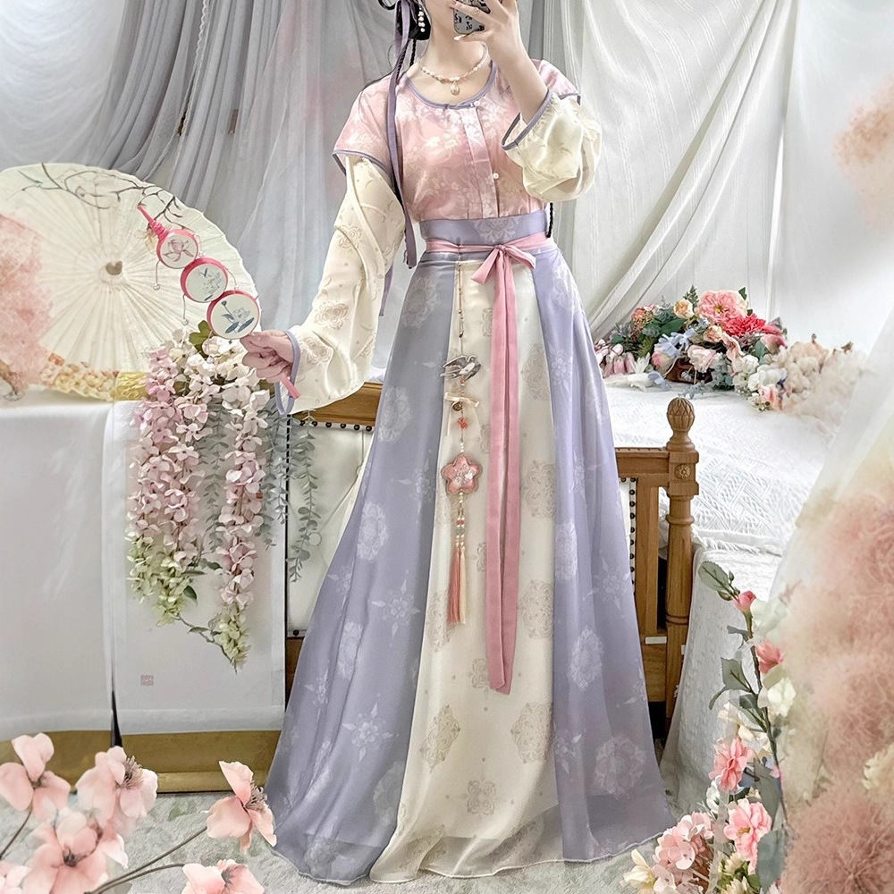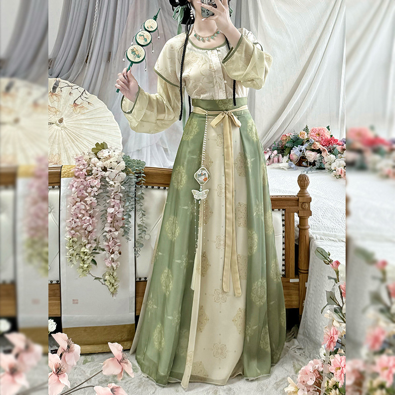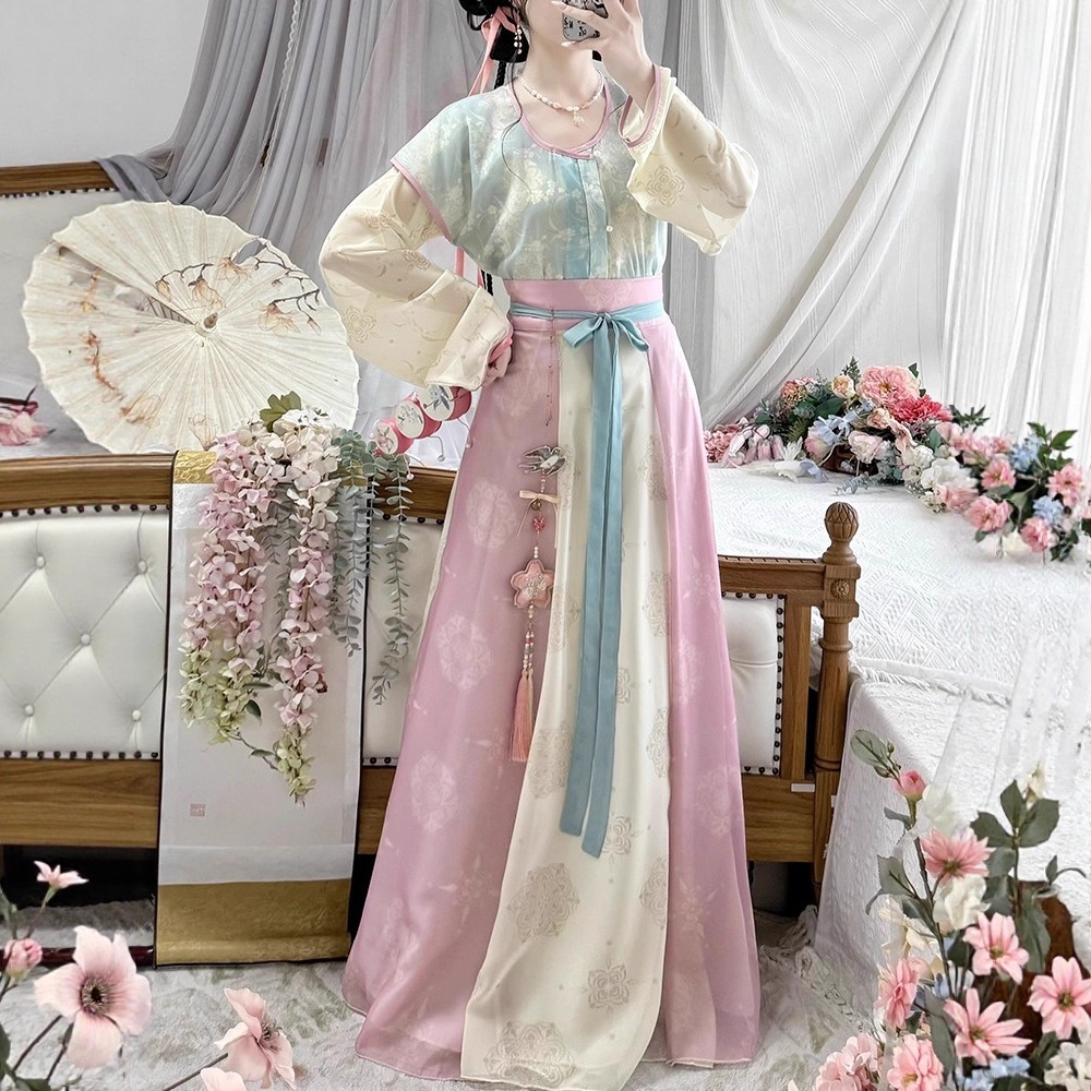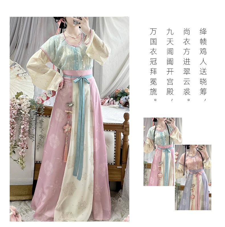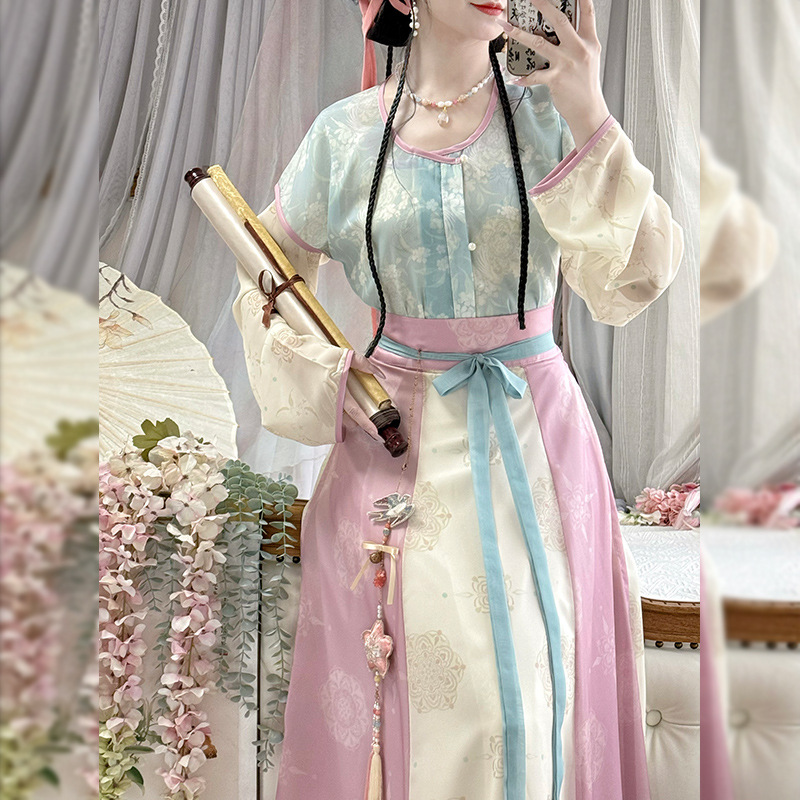 原创唐褙子汉服女2026新款春秋超仙唐制日常圆领衫齐腰八破裙古装