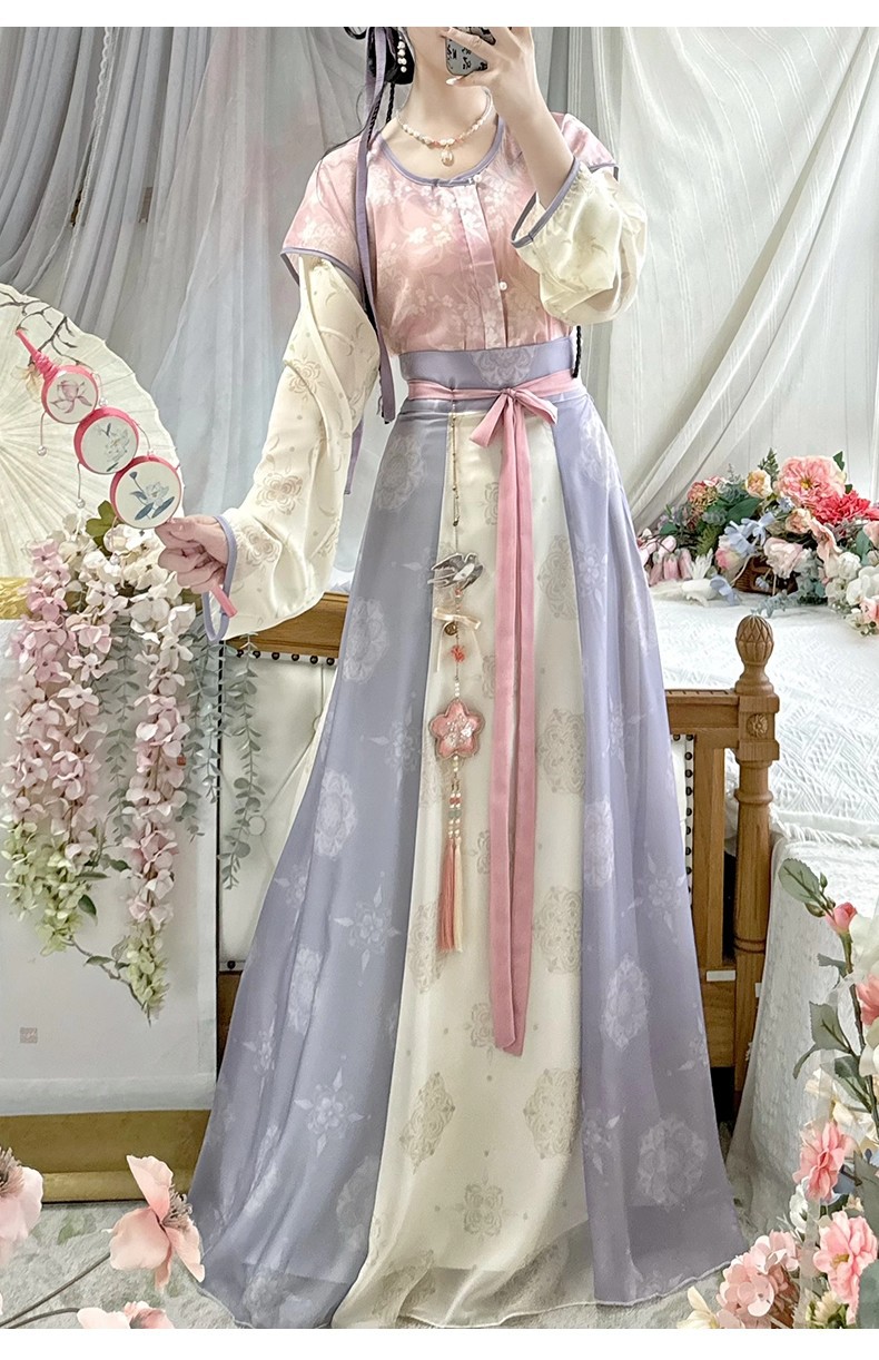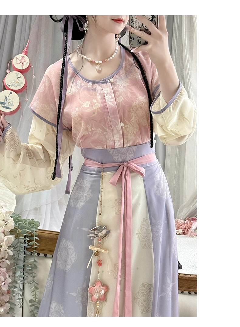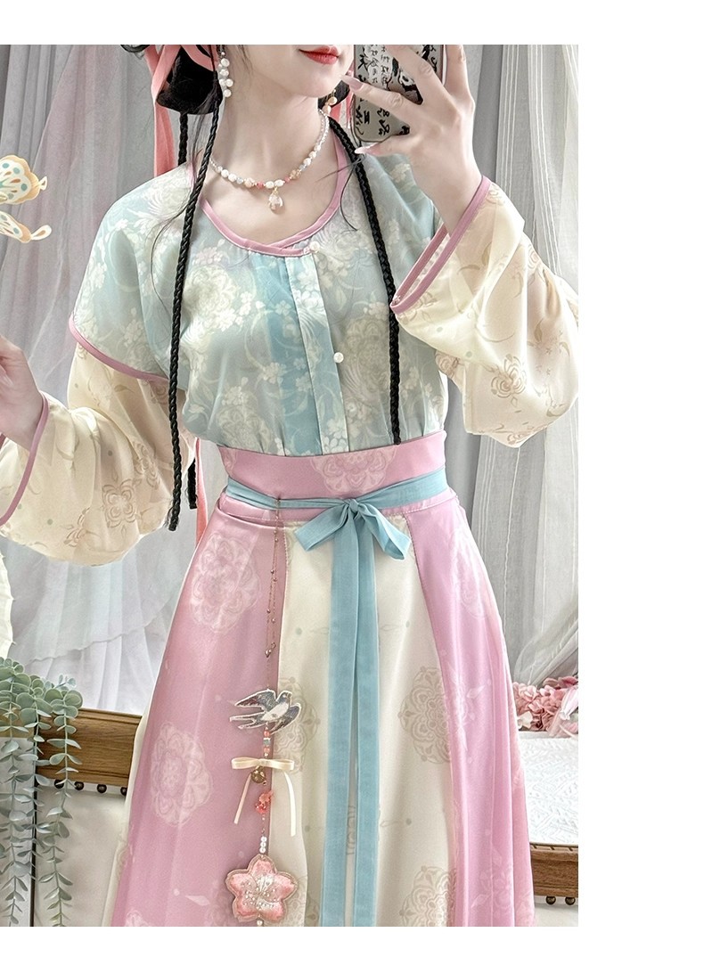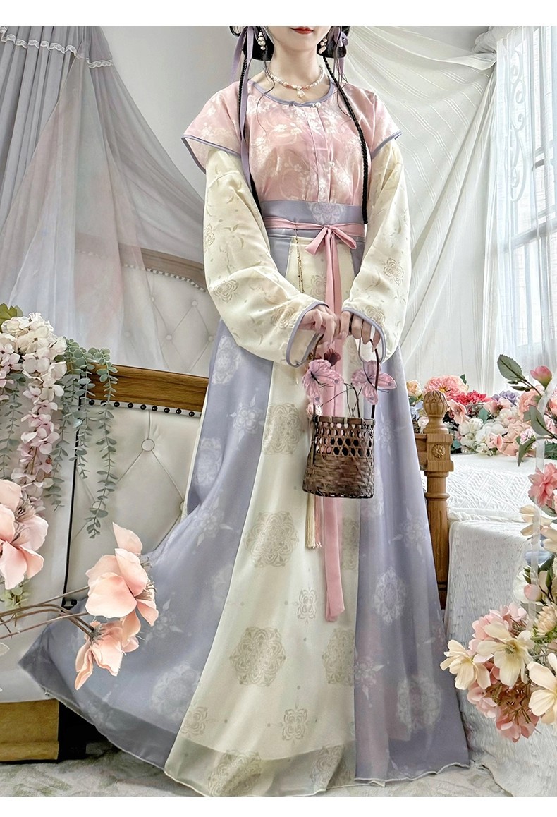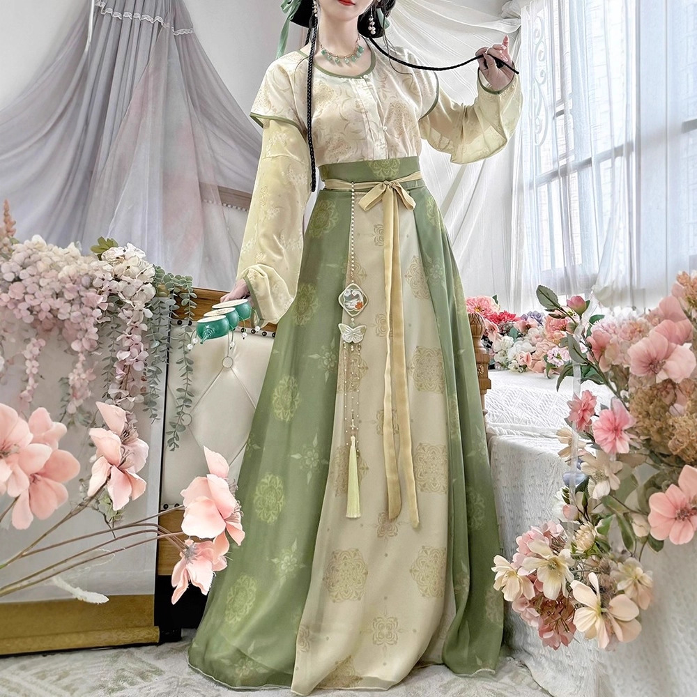 原创唐褙子汉服女2026新款春秋超仙唐制日常圆领衫齐腰八破裙古装