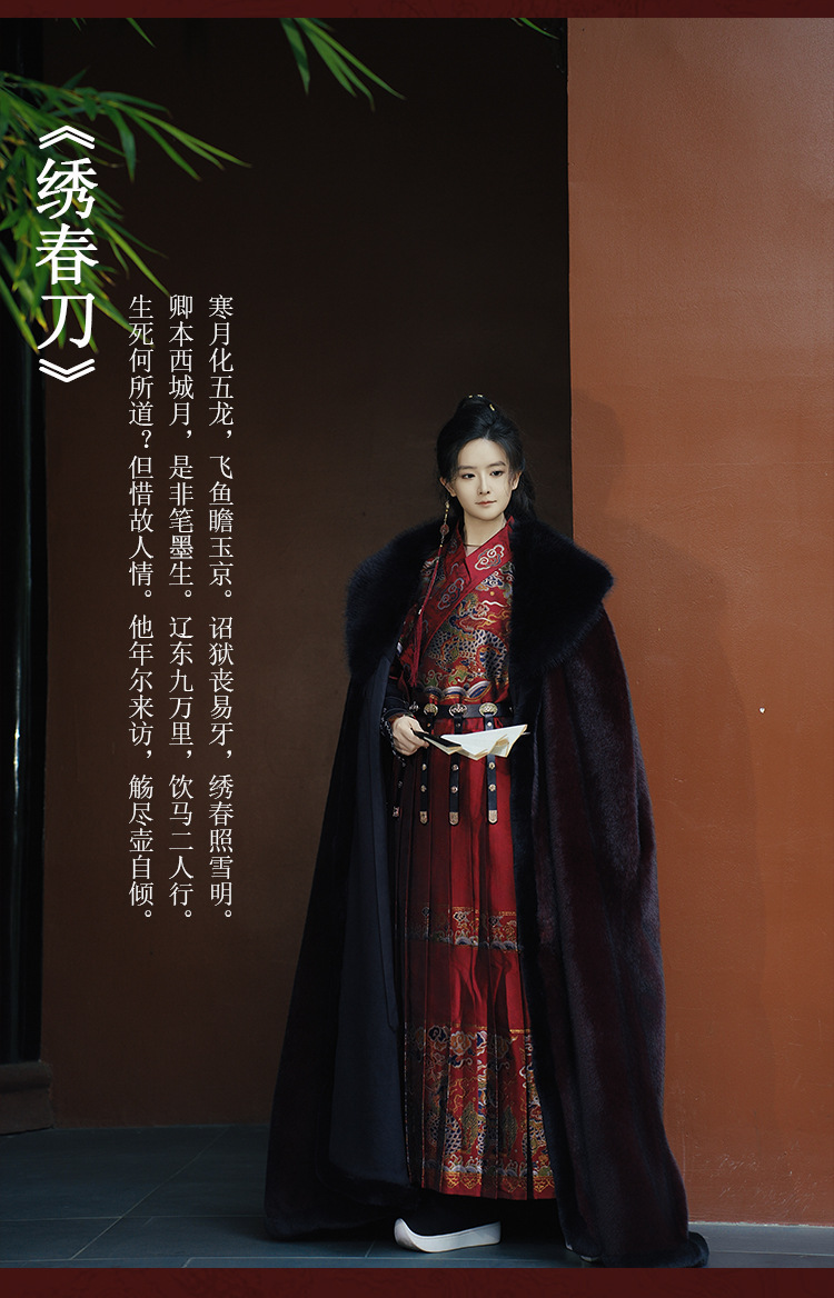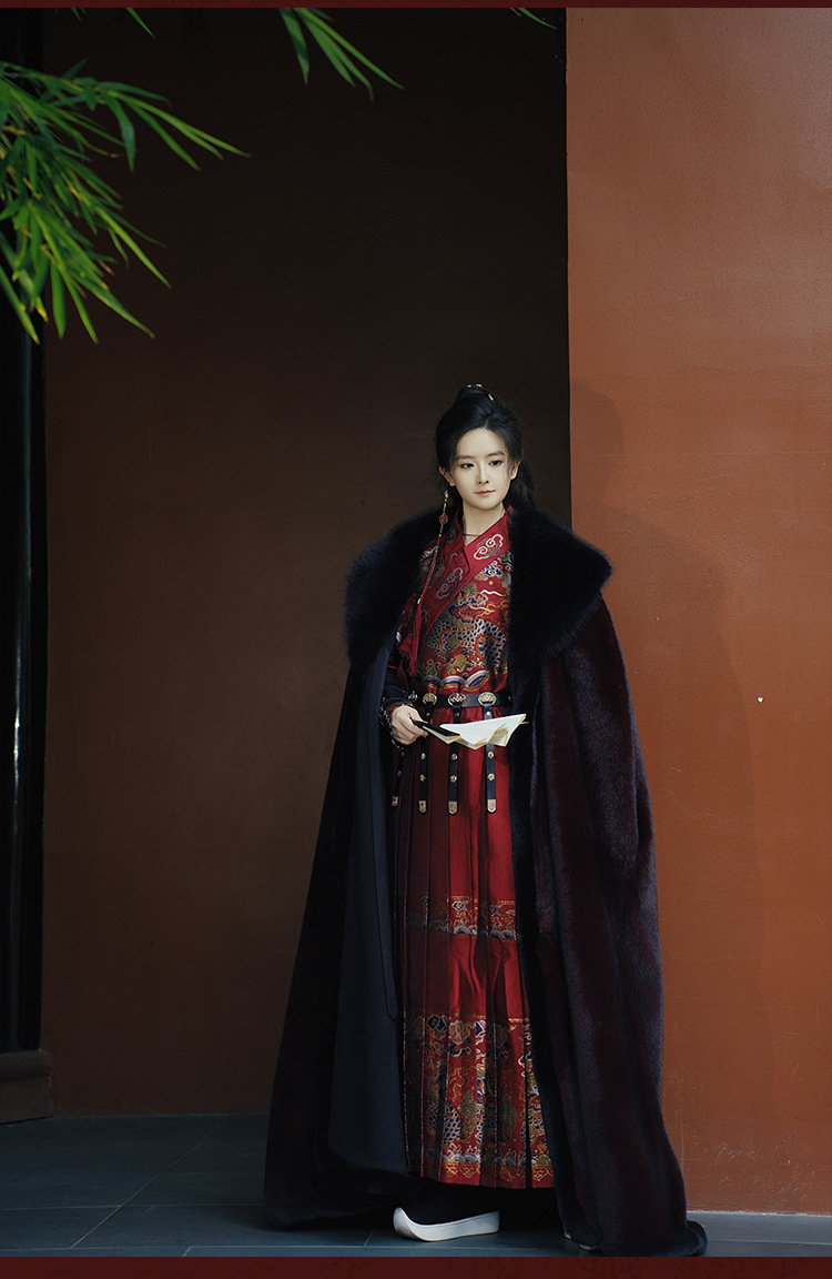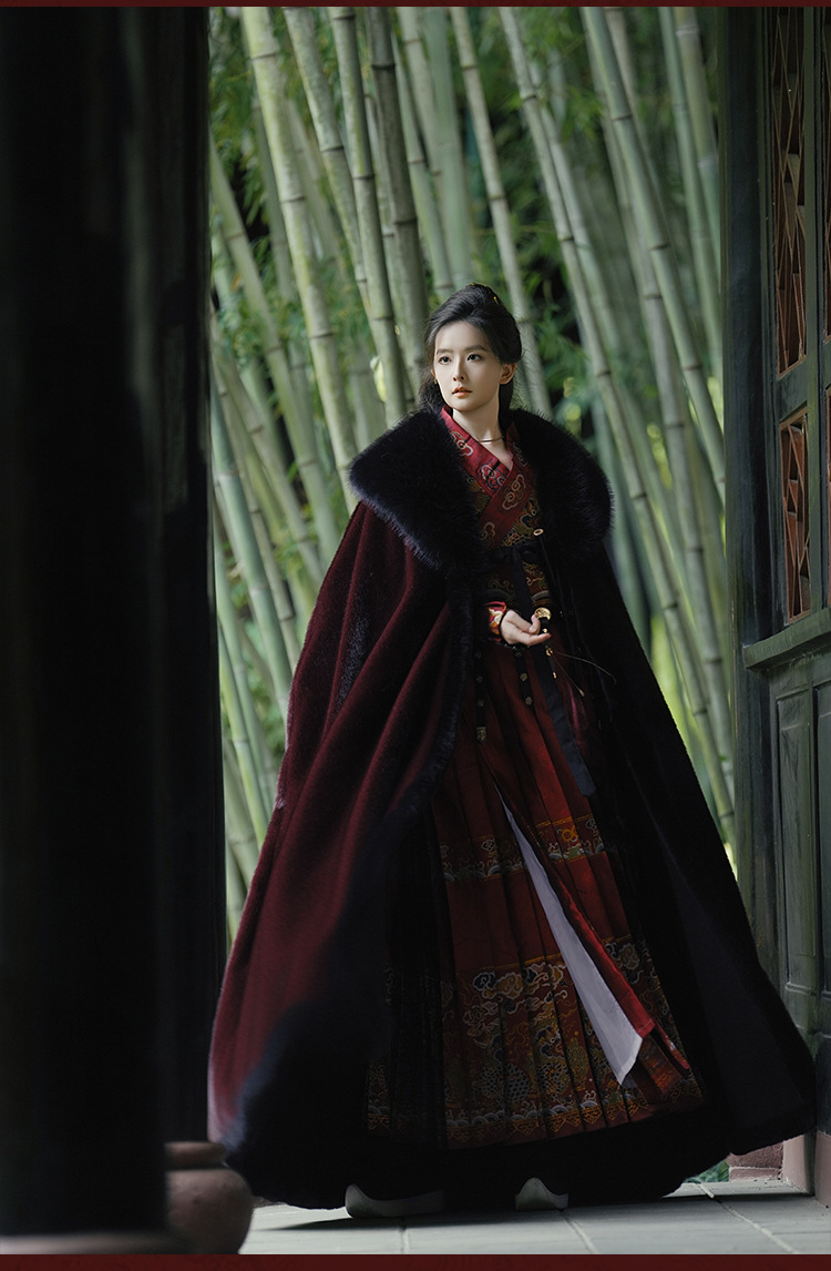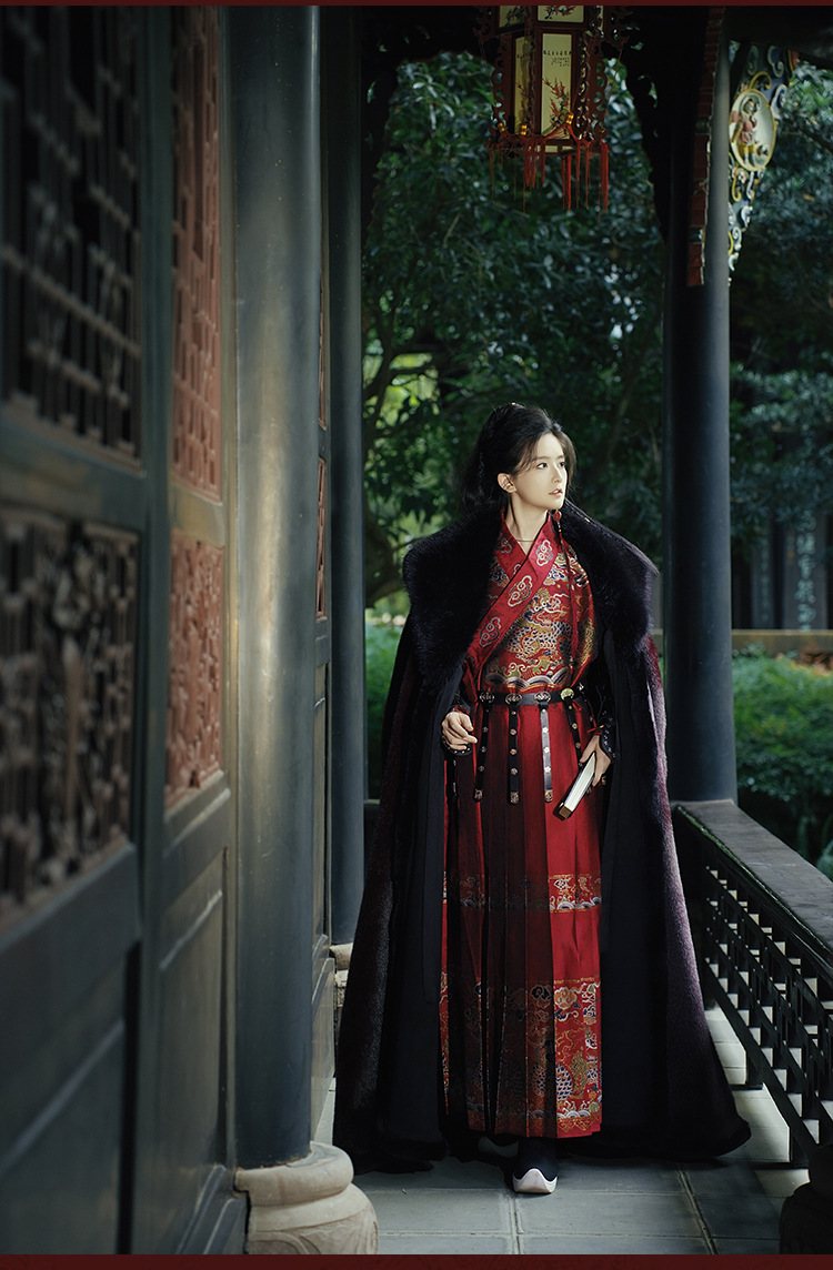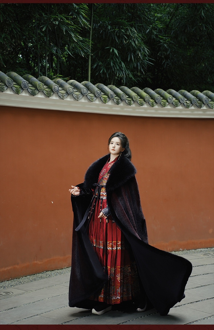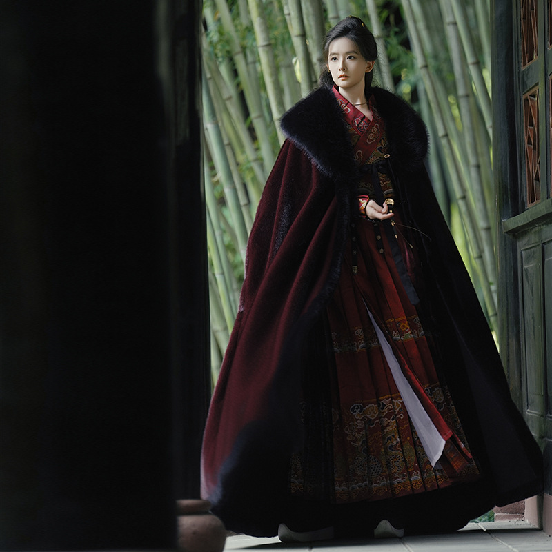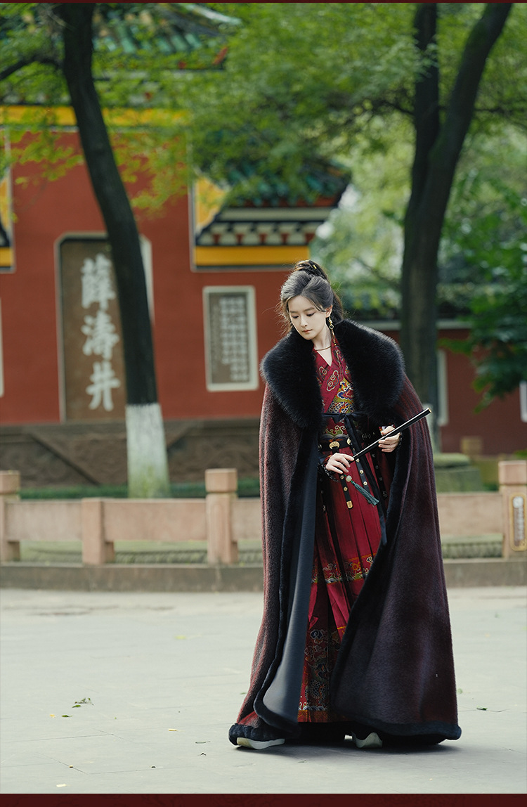 original hanfu brocade flying fish suit 2026 red new style cloak velvet-lined thicken big fur collar thermal long shawl