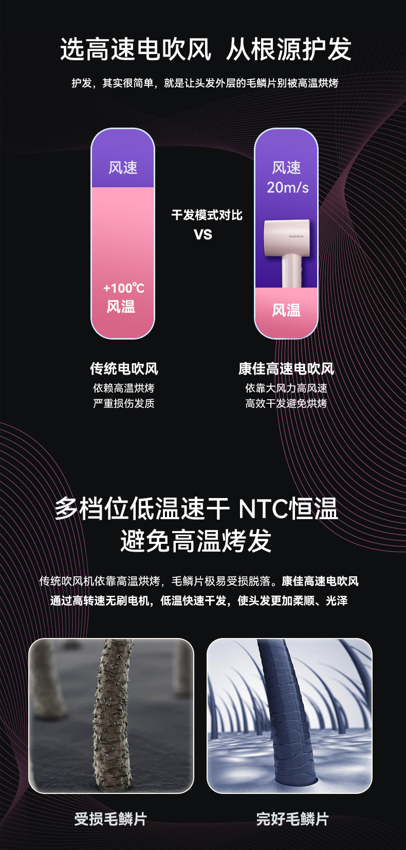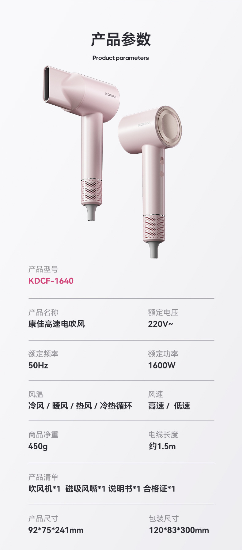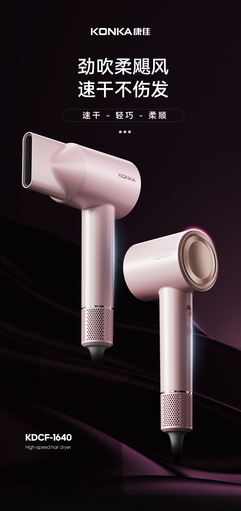 康佳吹风机大风力静音高速负离子电吹风家用吹头发大功率吹风筒