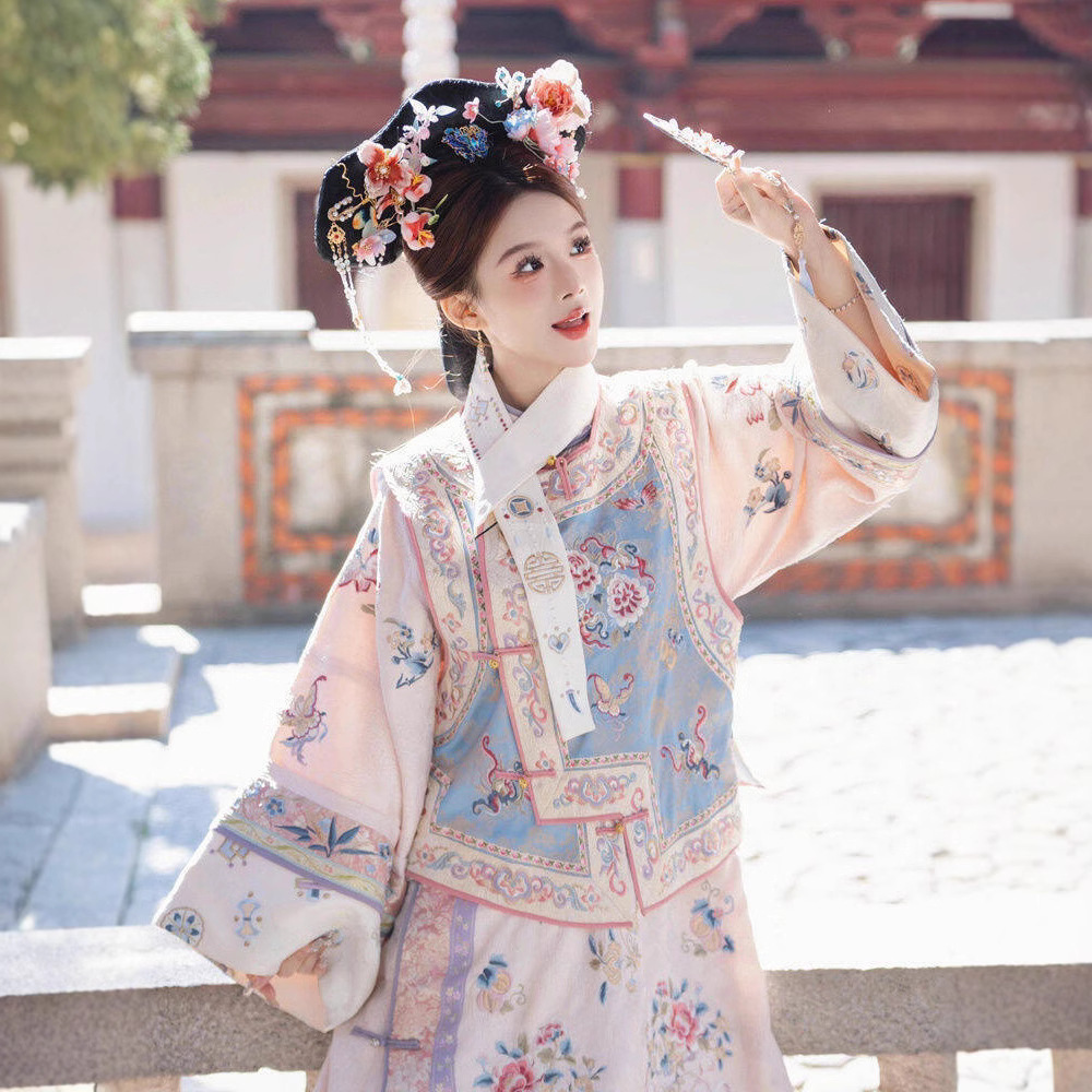 摄影格格服装汉服清朝古装公主马甲清朝旗袍全套格格衣服写真服饰