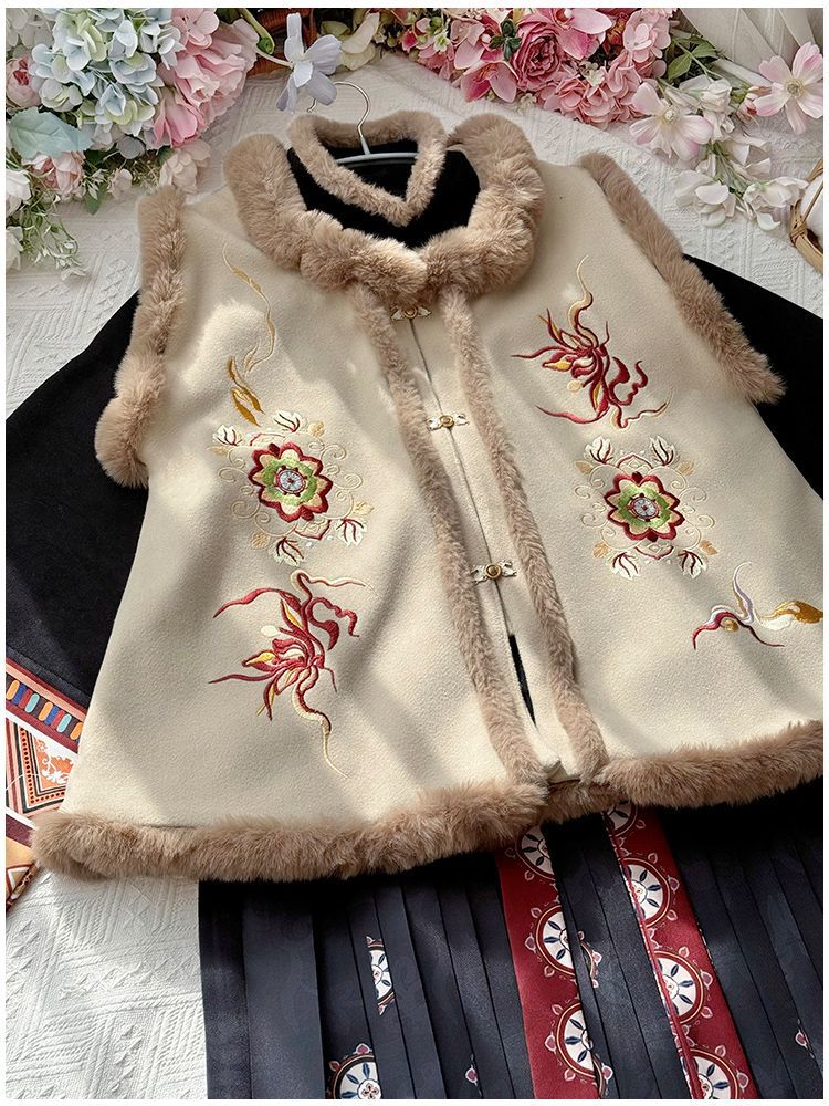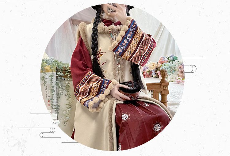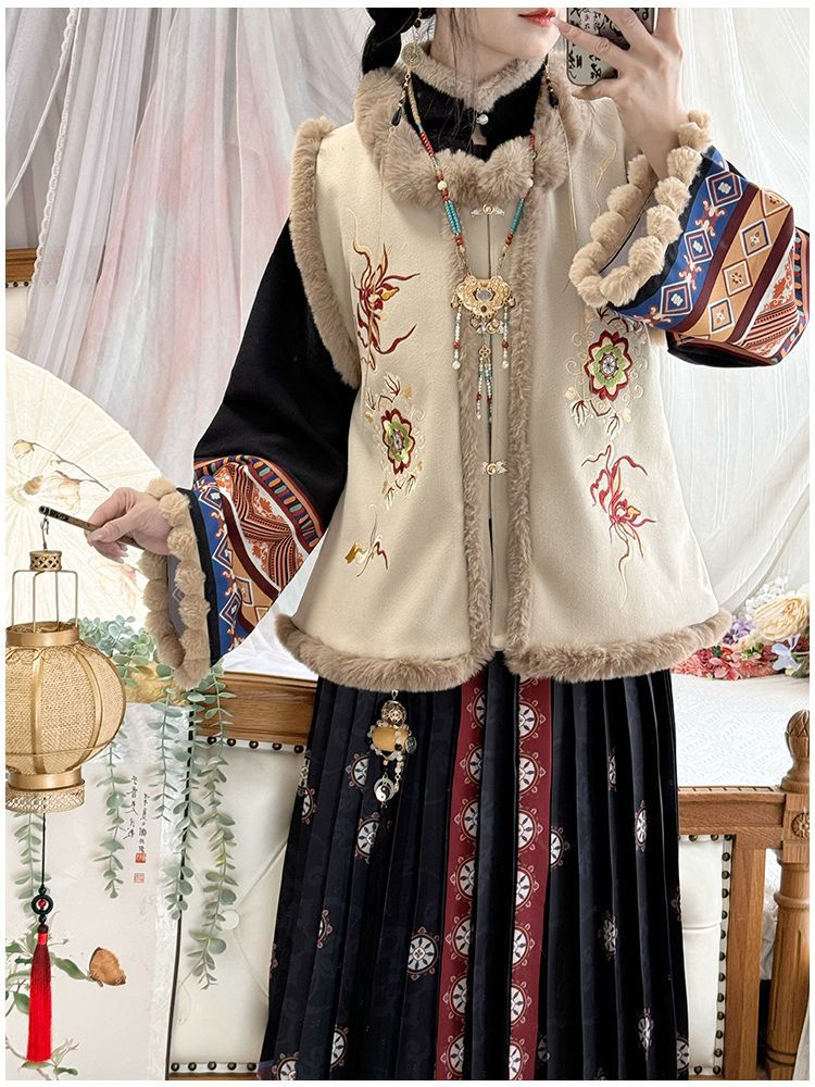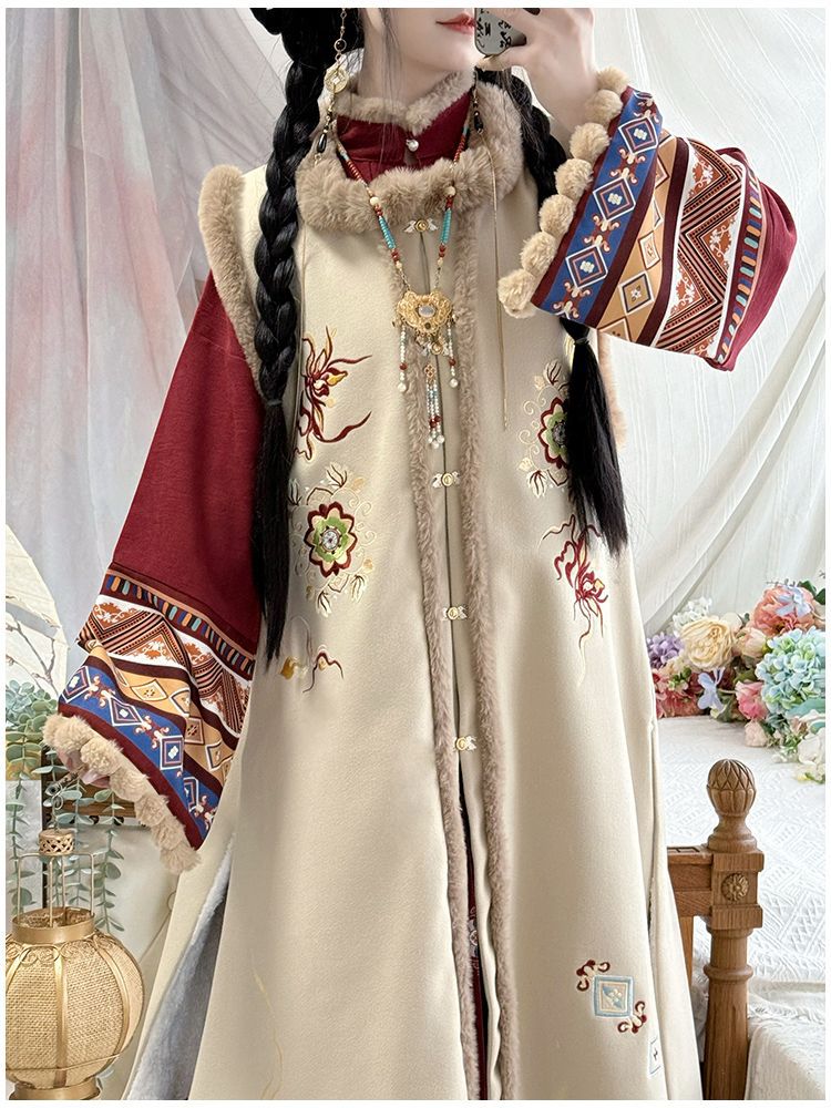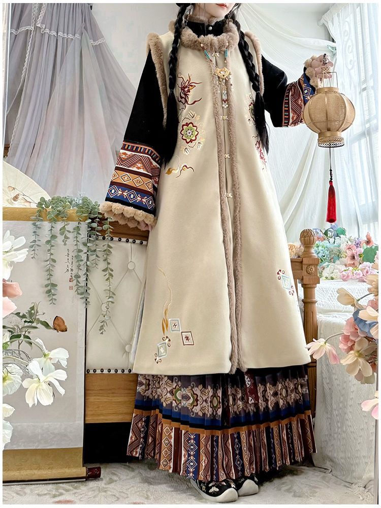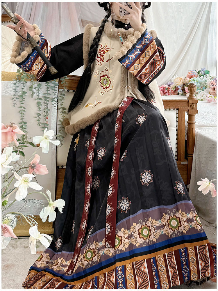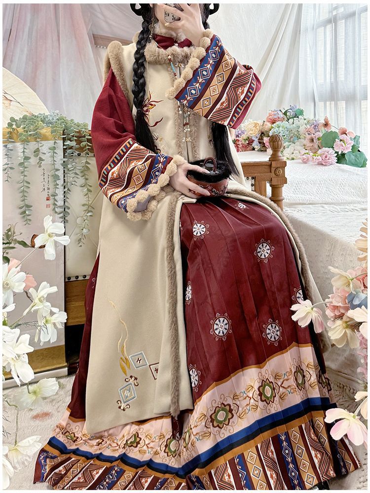 原创汉服女2025新款秋冬季中国风加绒保暖比甲百褶裙新年战袍套装