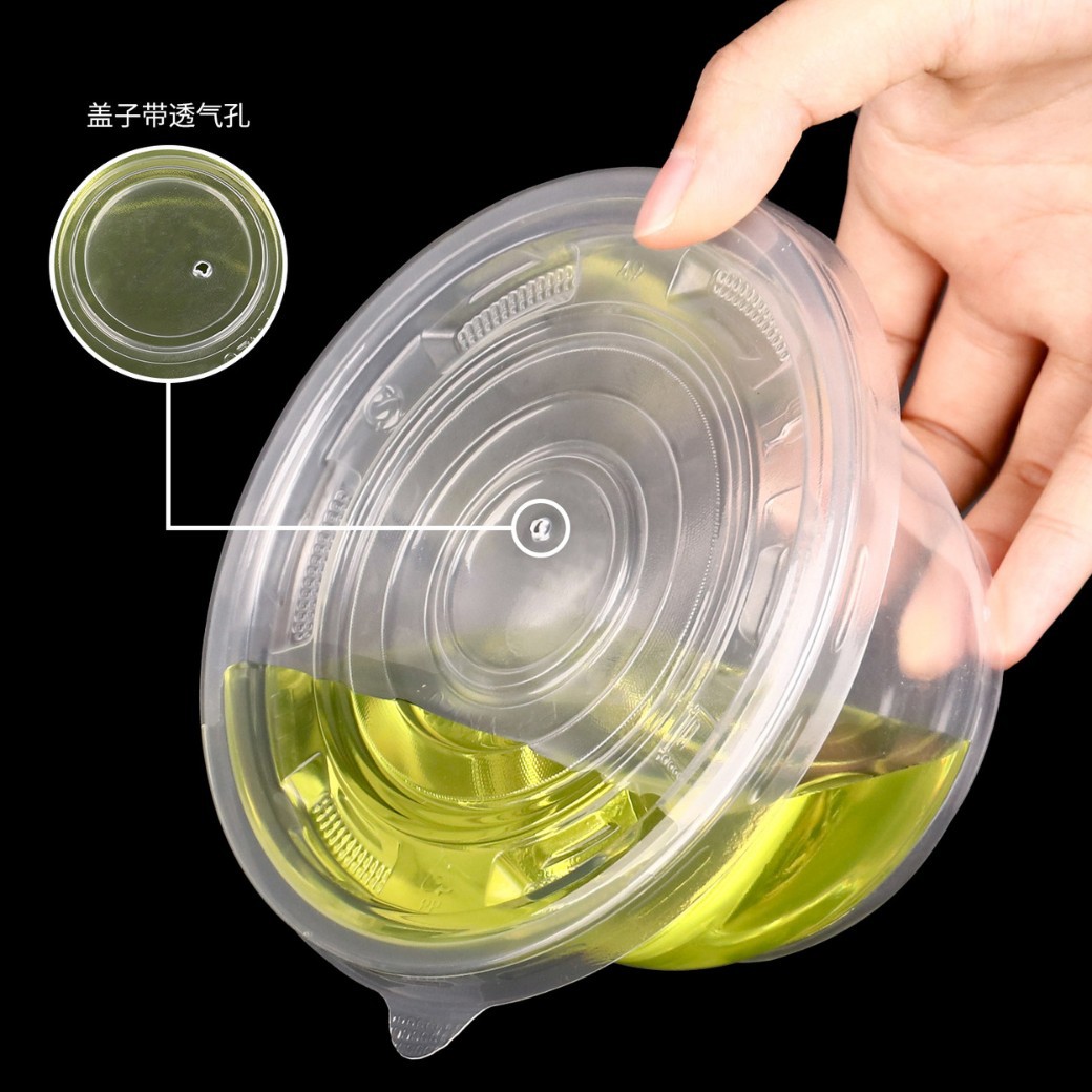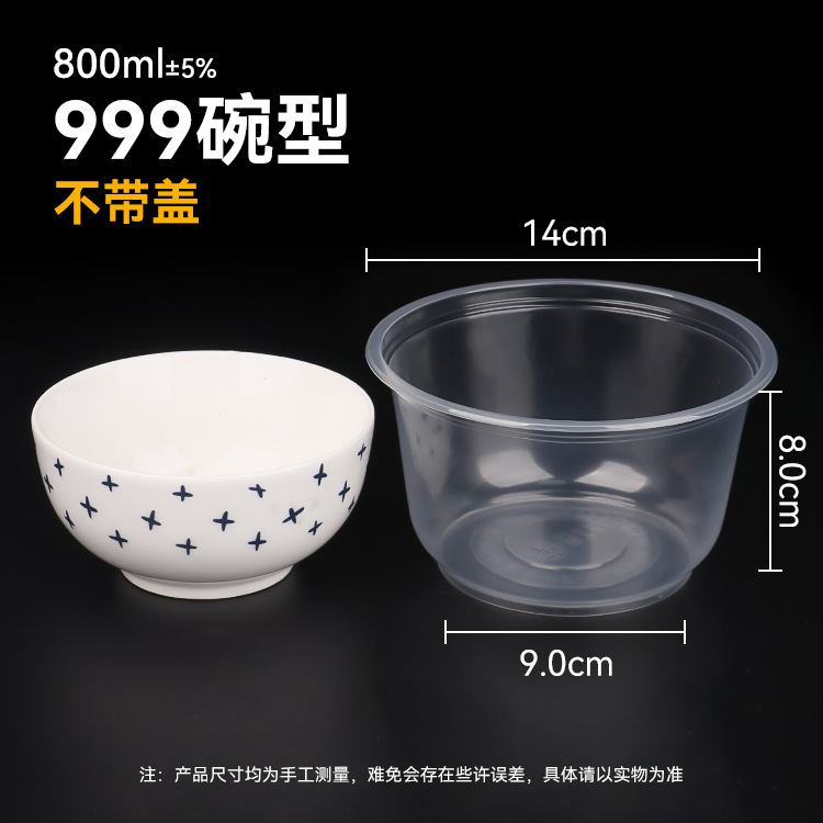 一次性碗圆形餐盒透明加厚塑料碗摆摊外卖打包盒冰粉汤面带盖整箱