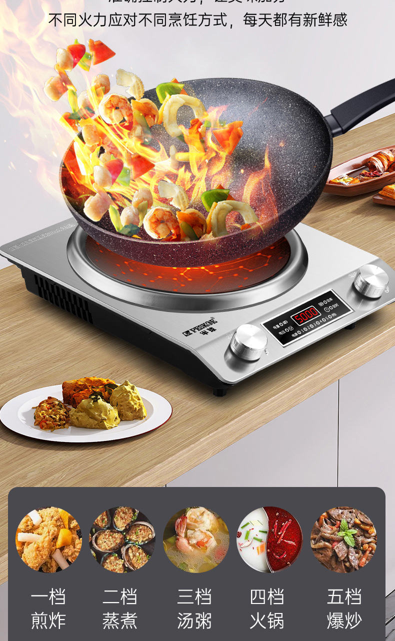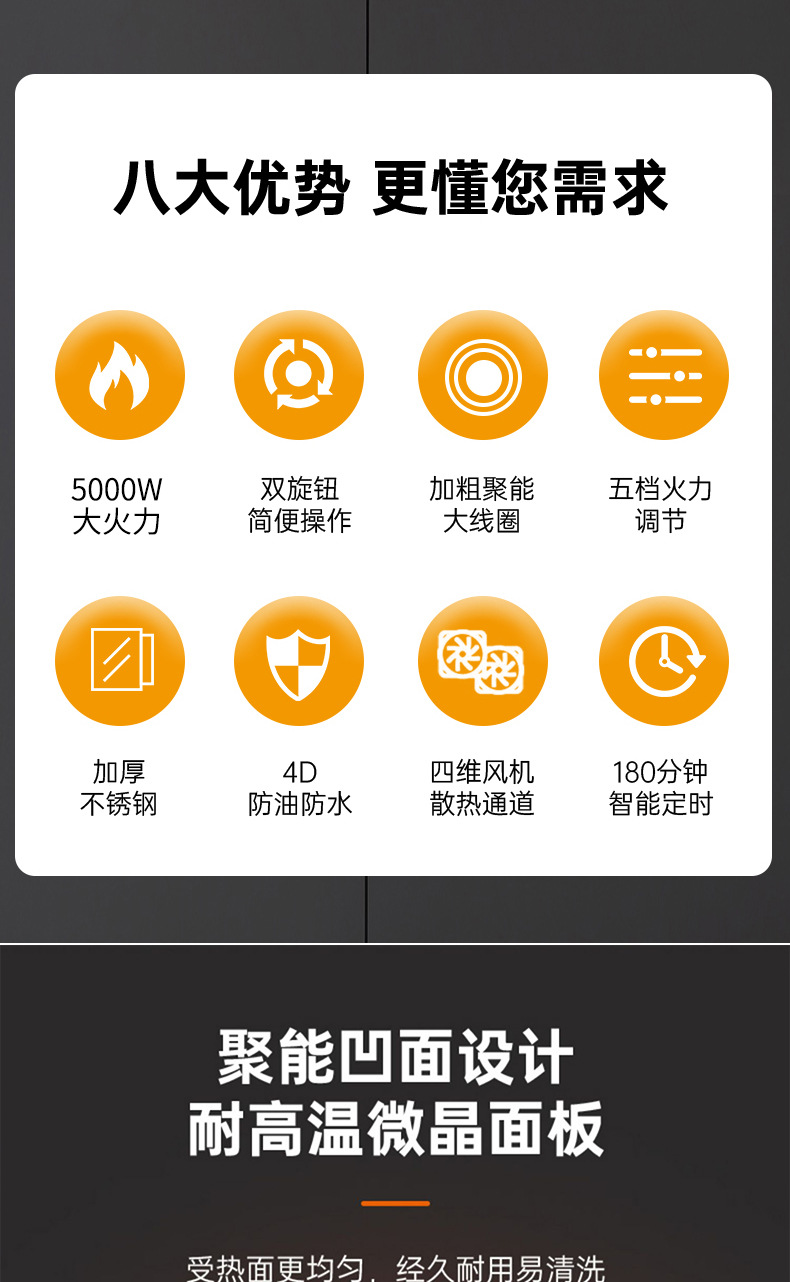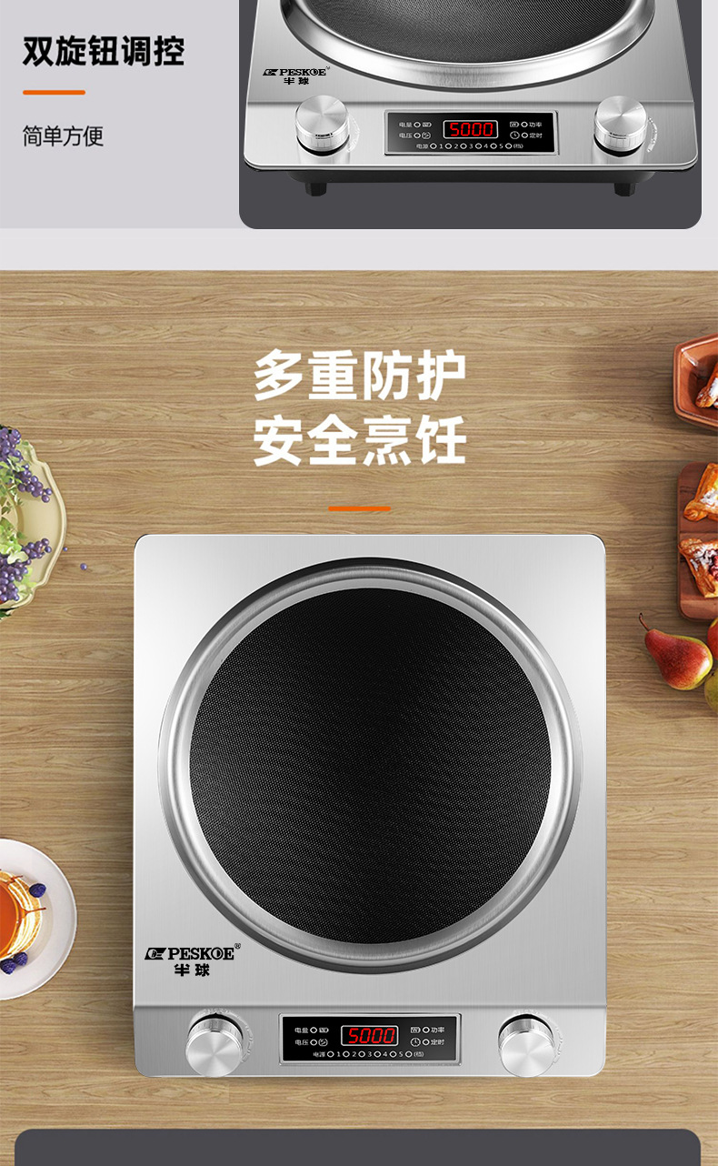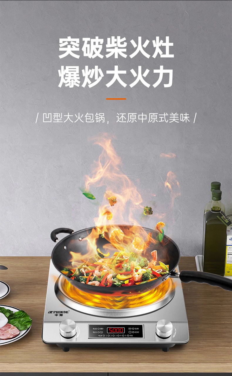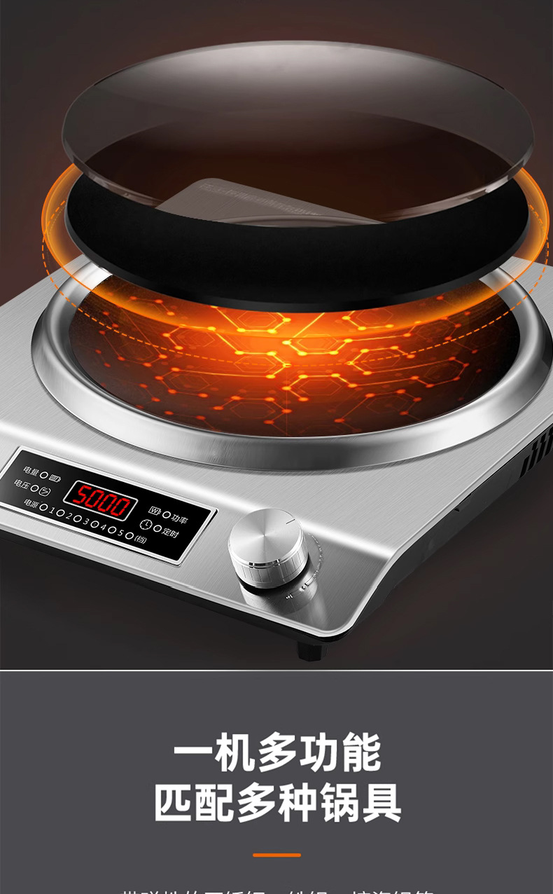 半 球电磁炉5000W大功率家用款新款凹面电磁灶凹灶电池炉3500W
