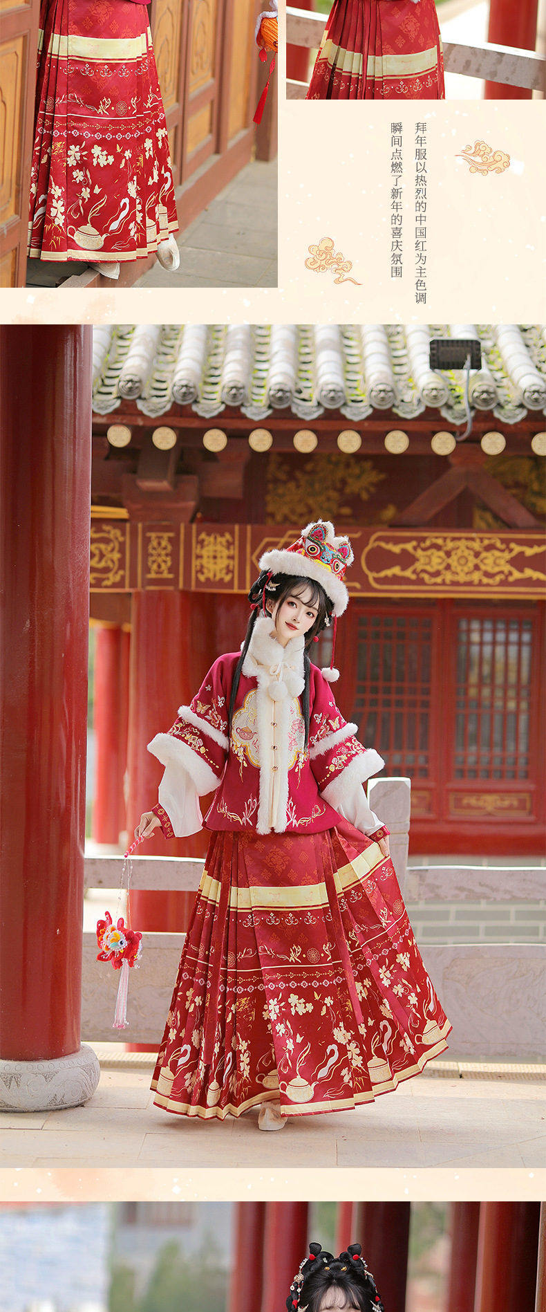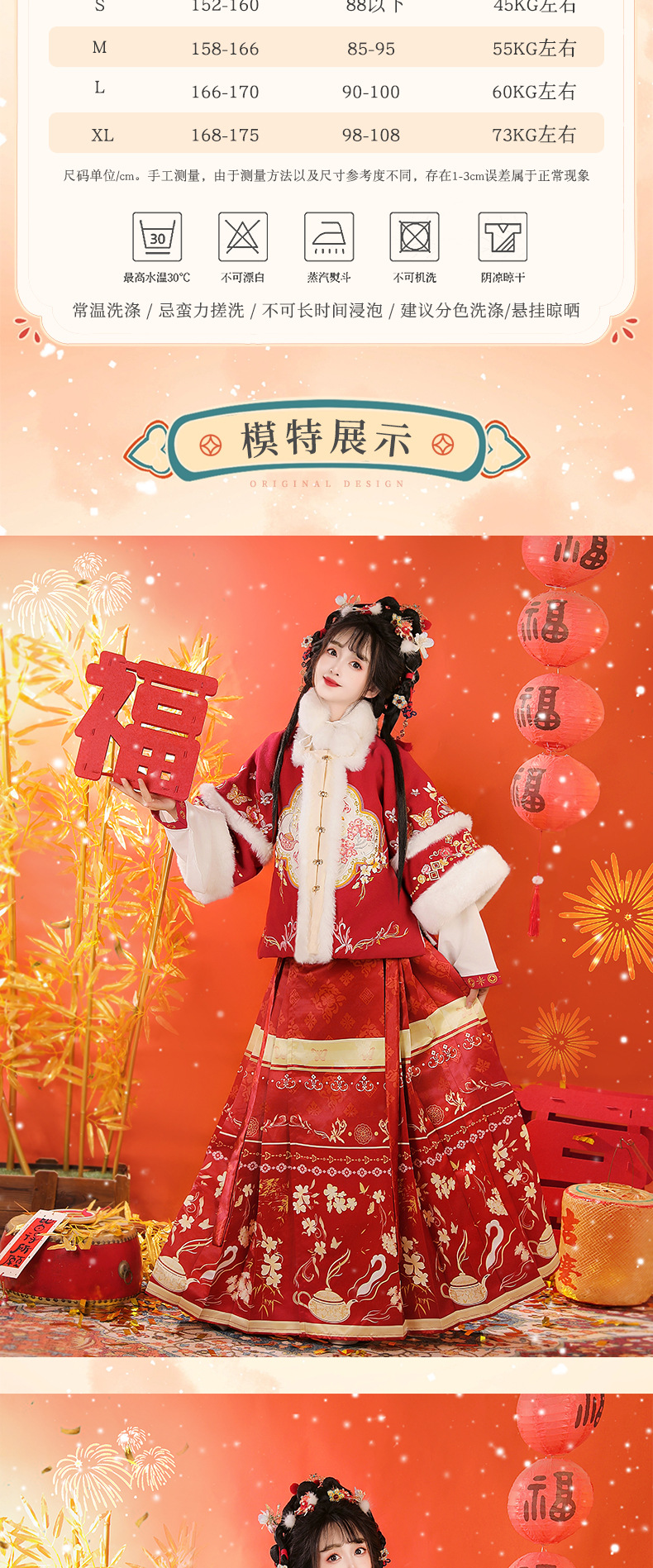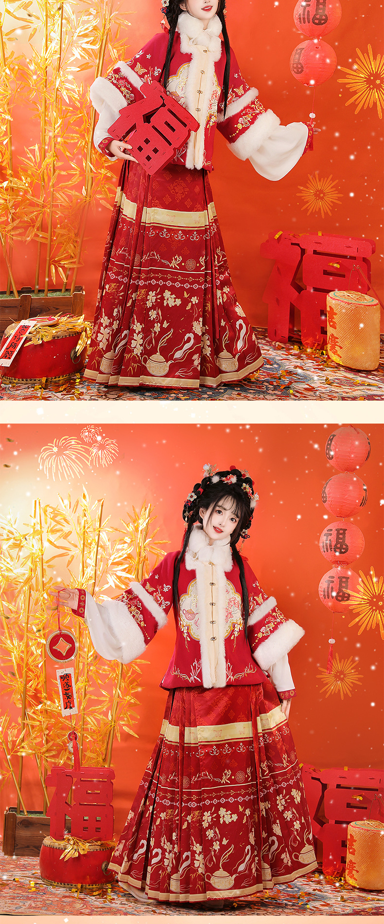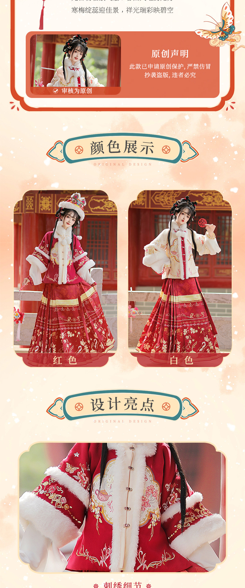原创明制汉服女2025年新款冬季古装加绒加厚马面裙新春拜年服套装