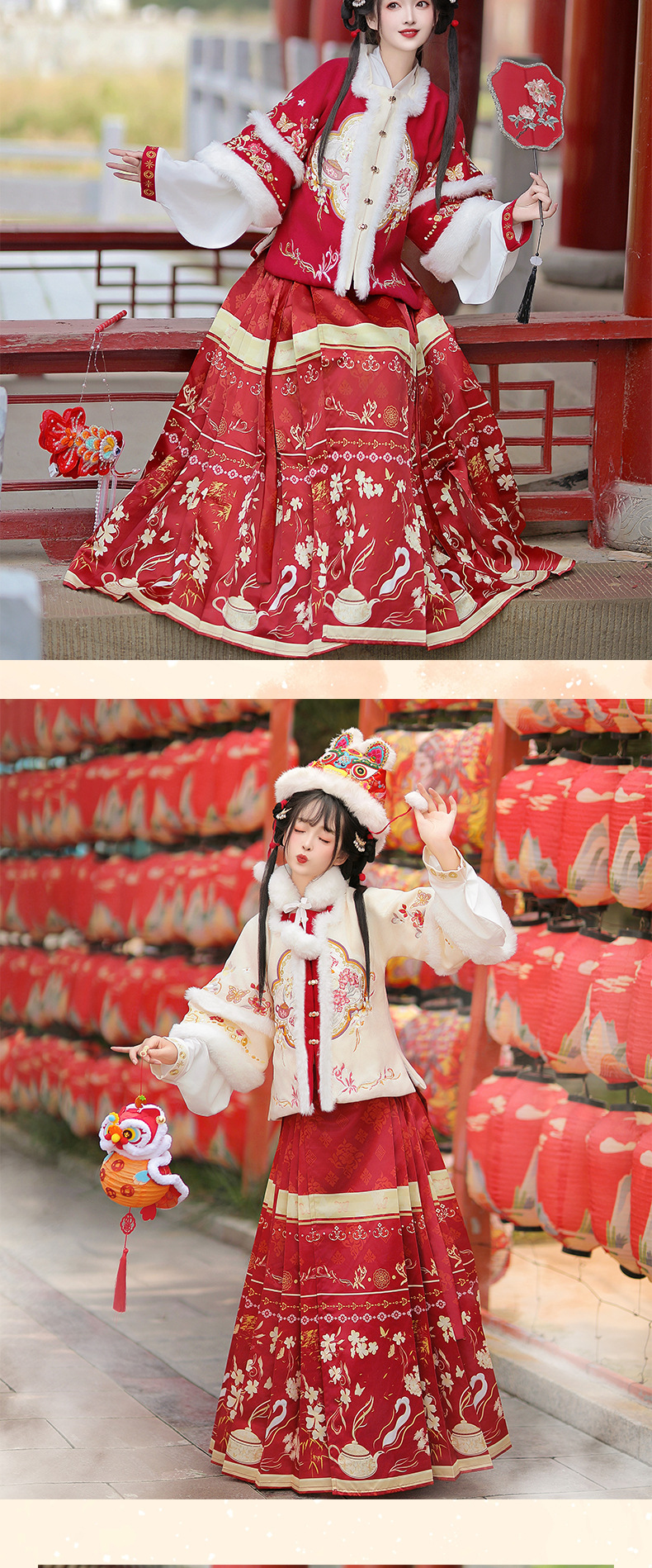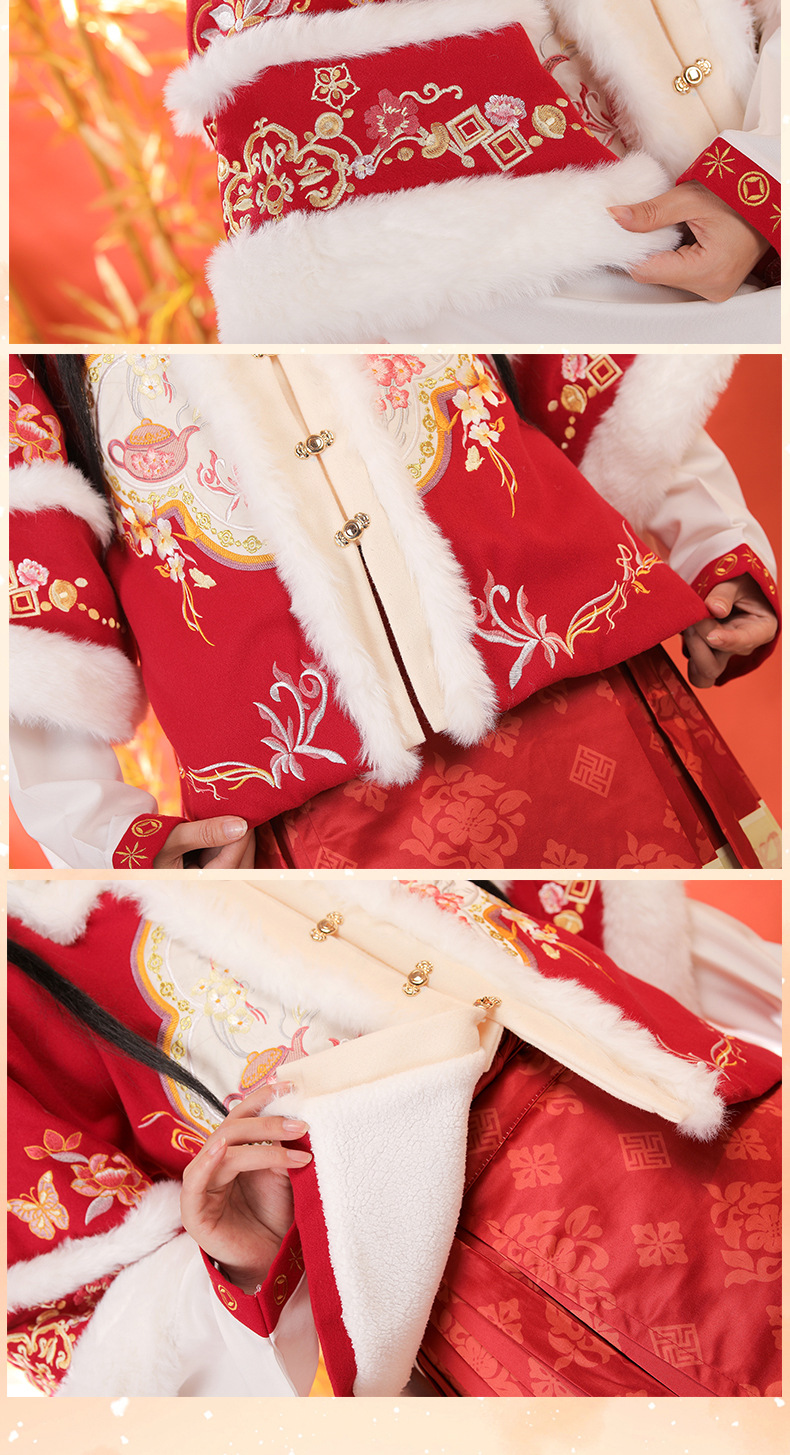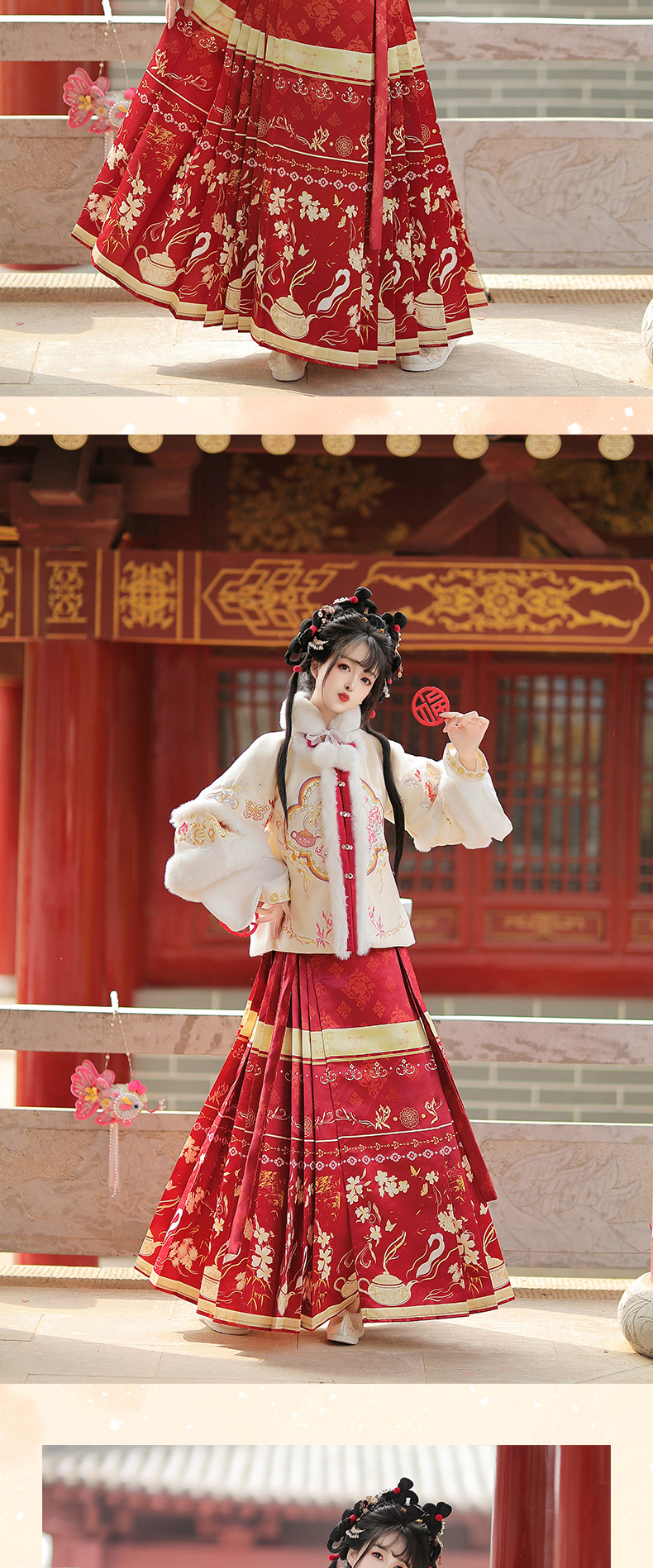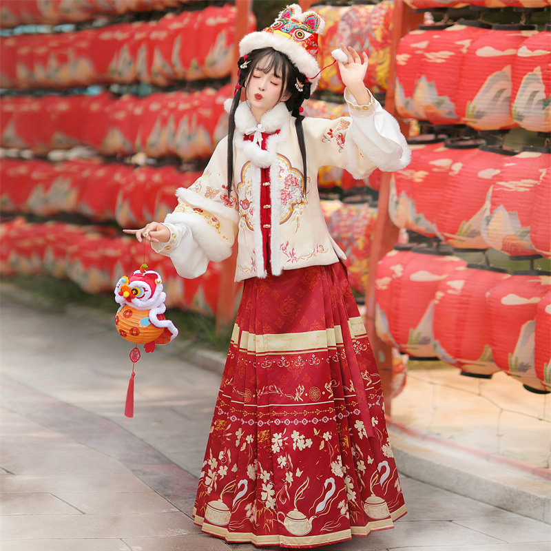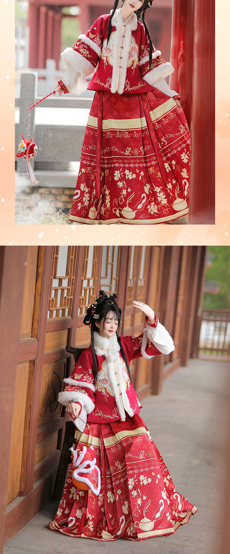 原创明制汉服女2025年新款冬季古装加绒加厚马面裙新春拜年服套装