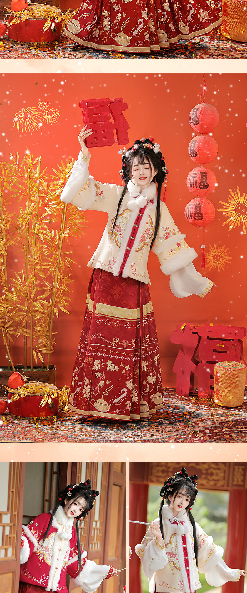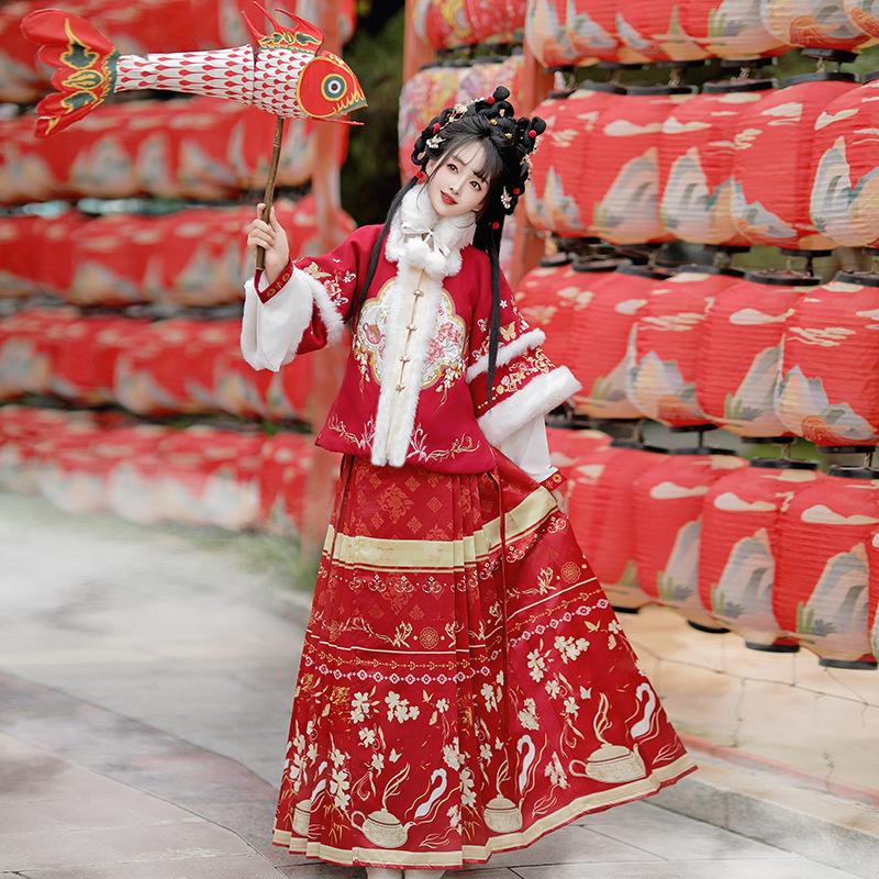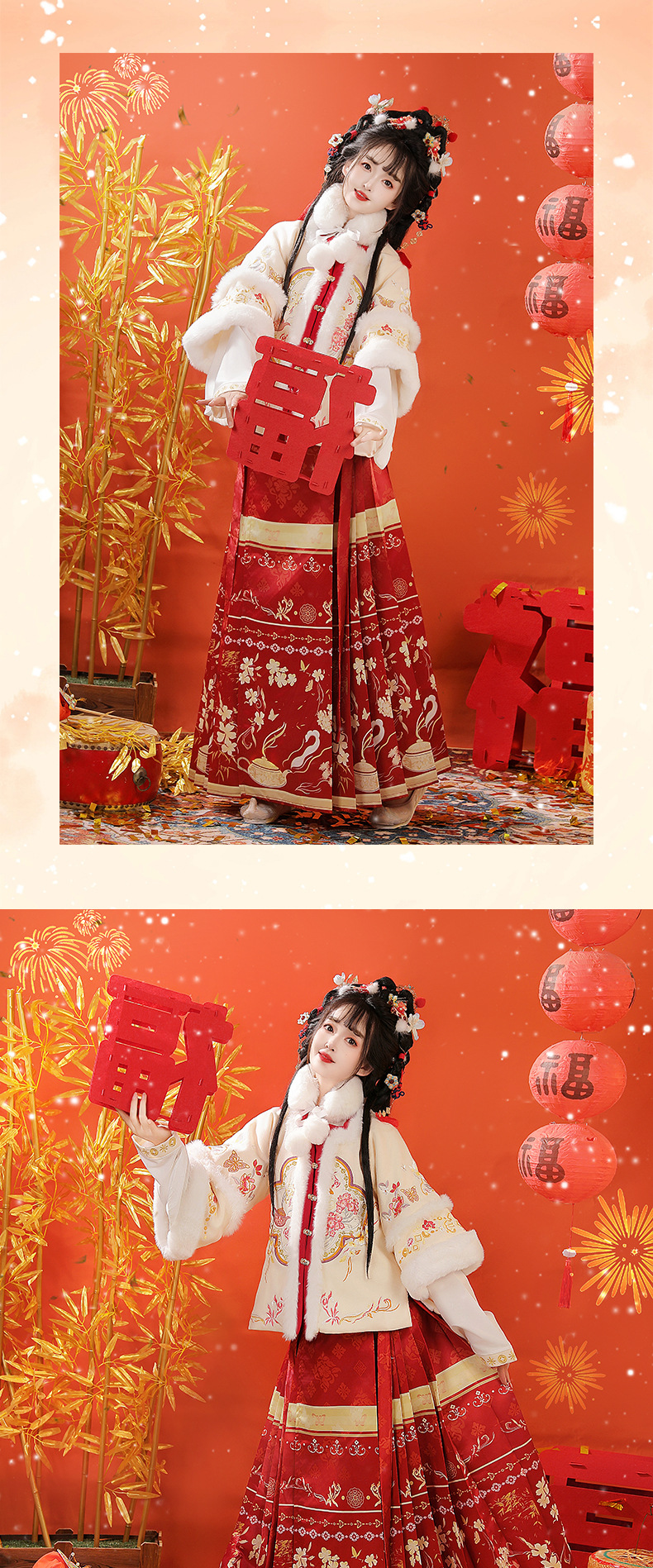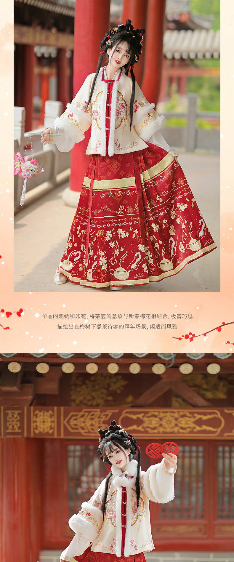 原创明制汉服女2025年新款冬季古装加绒加厚马面裙新春拜年服套装