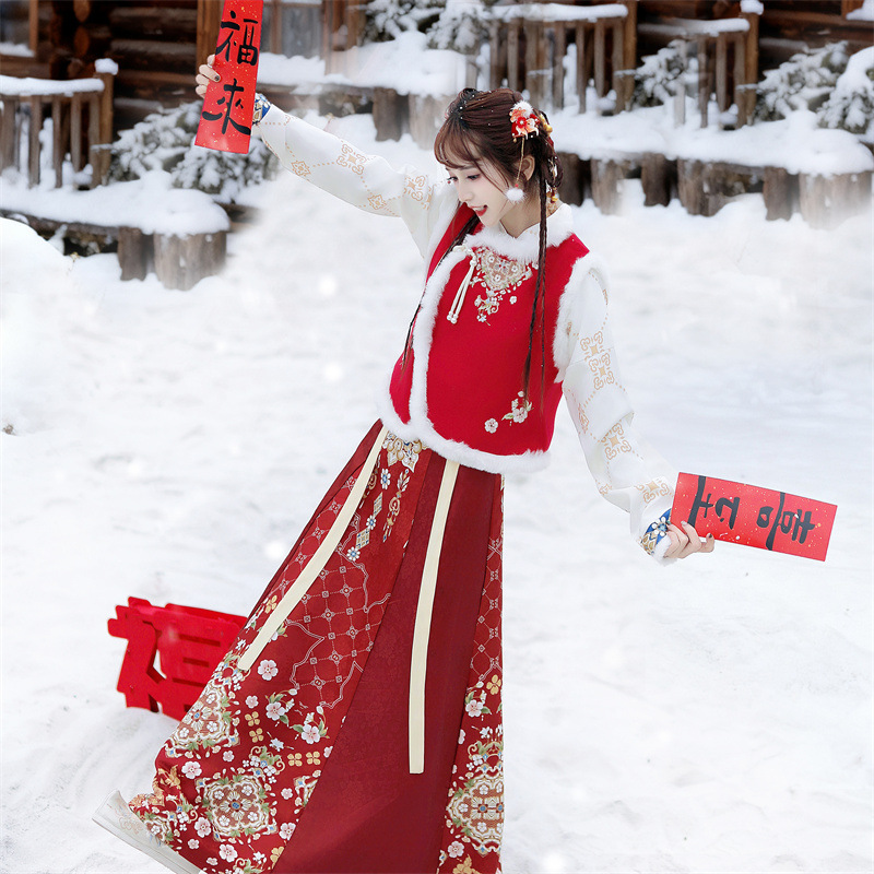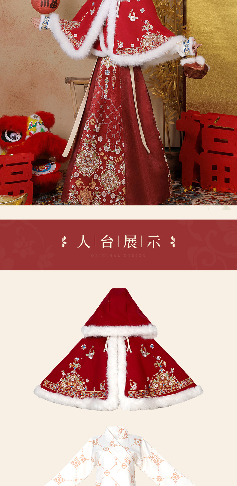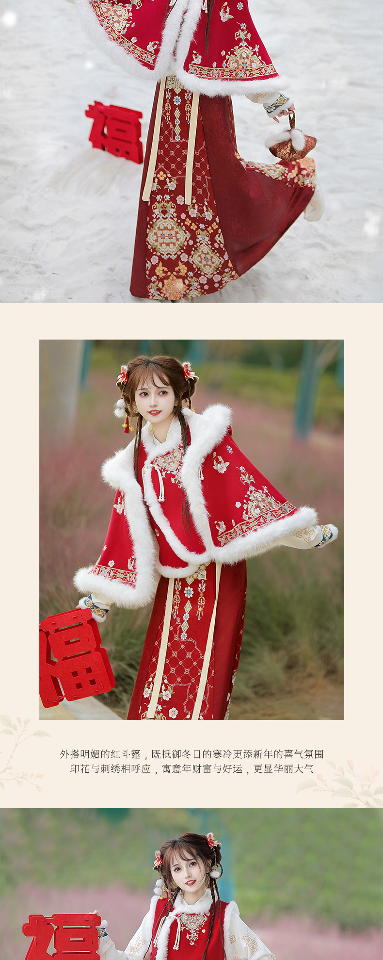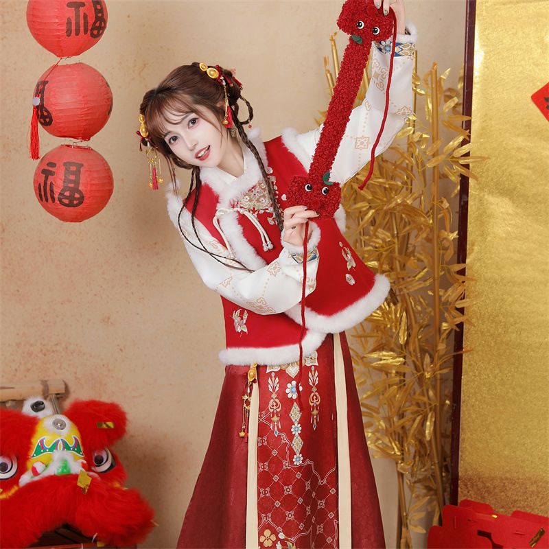 原创新中式汉服女2025新款冬季改良比甲加厚短斗篷拜年服古风套装