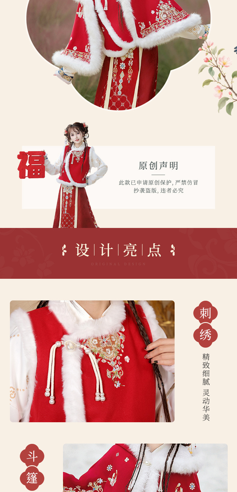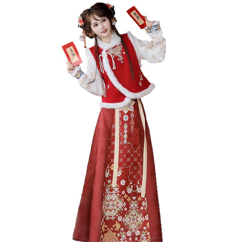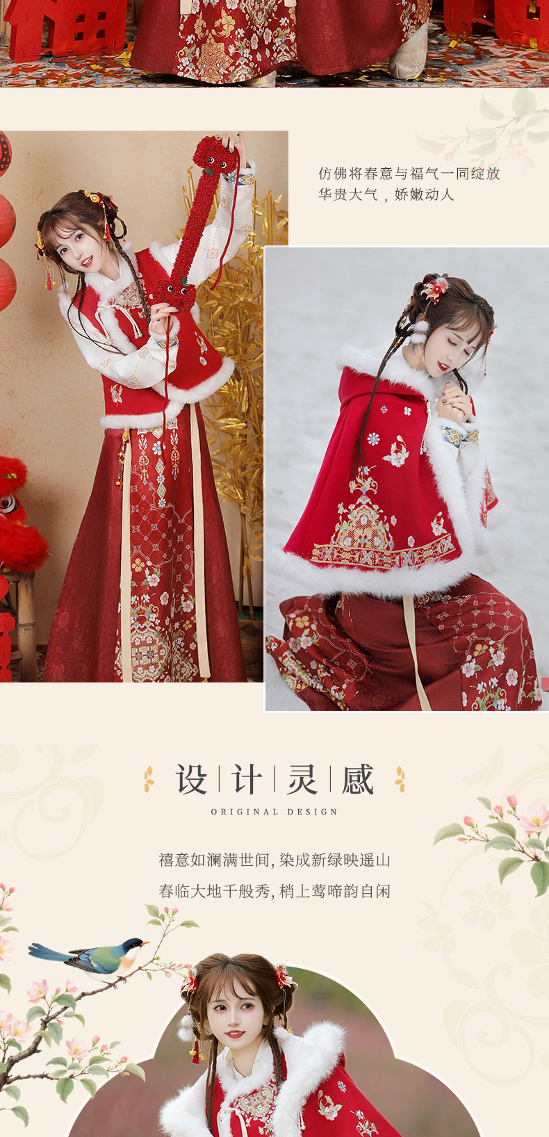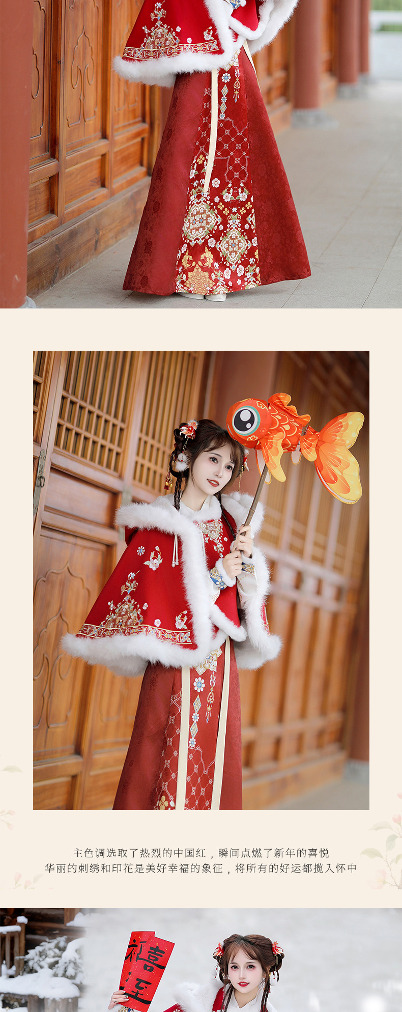 原创新中式汉服女2025新款冬季改良比甲加厚短斗篷拜年服古风套装