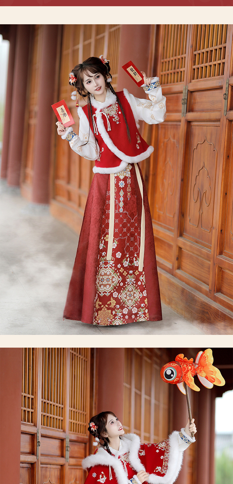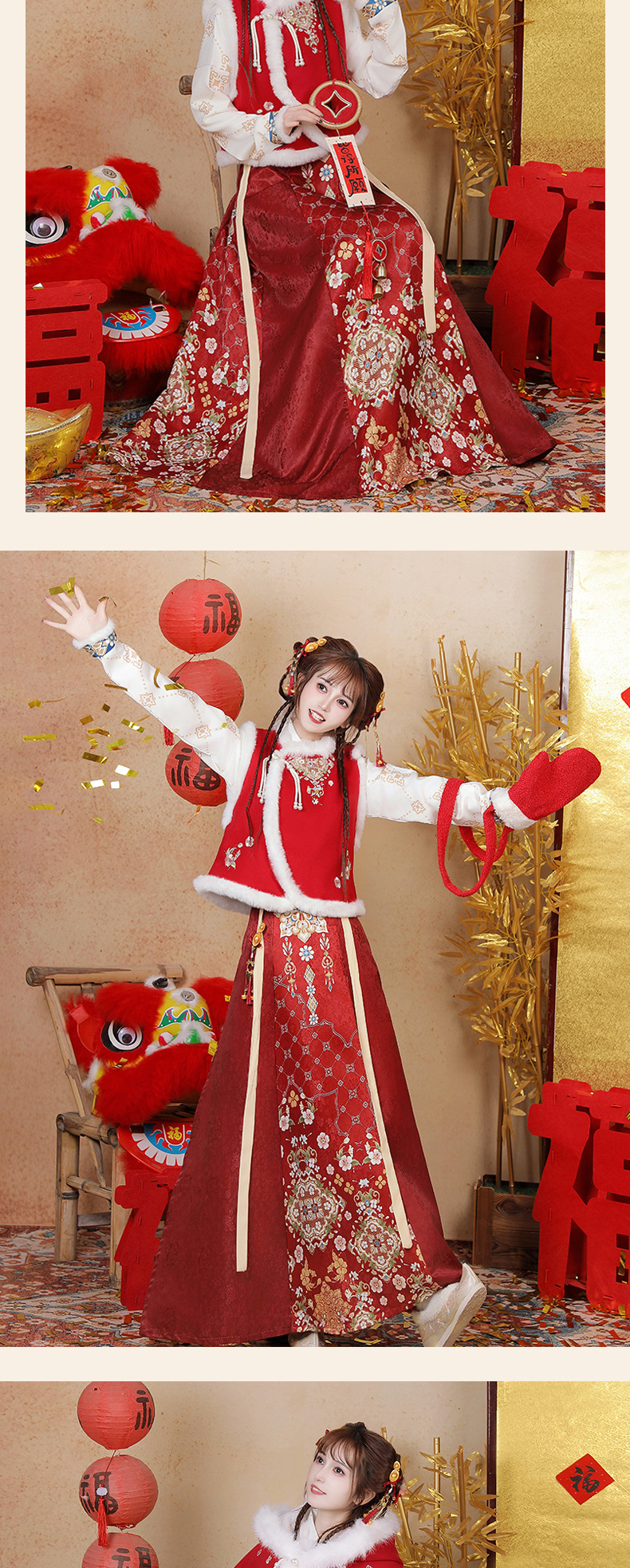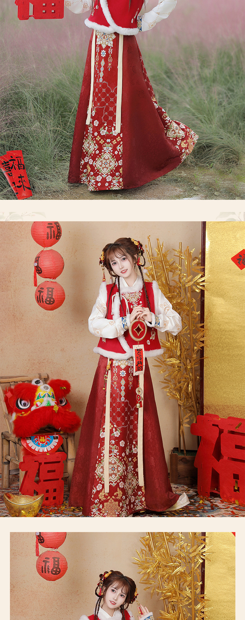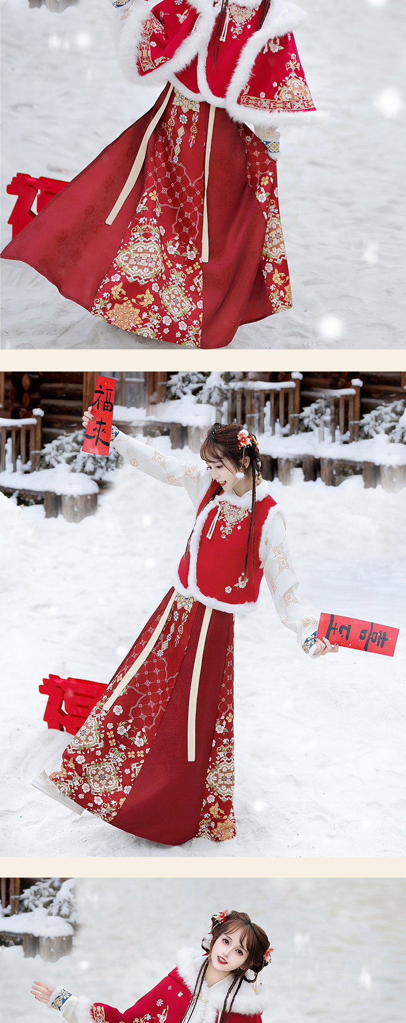 原创新中式汉服女2025新款冬季改良比甲加厚短斗篷拜年服古风套装