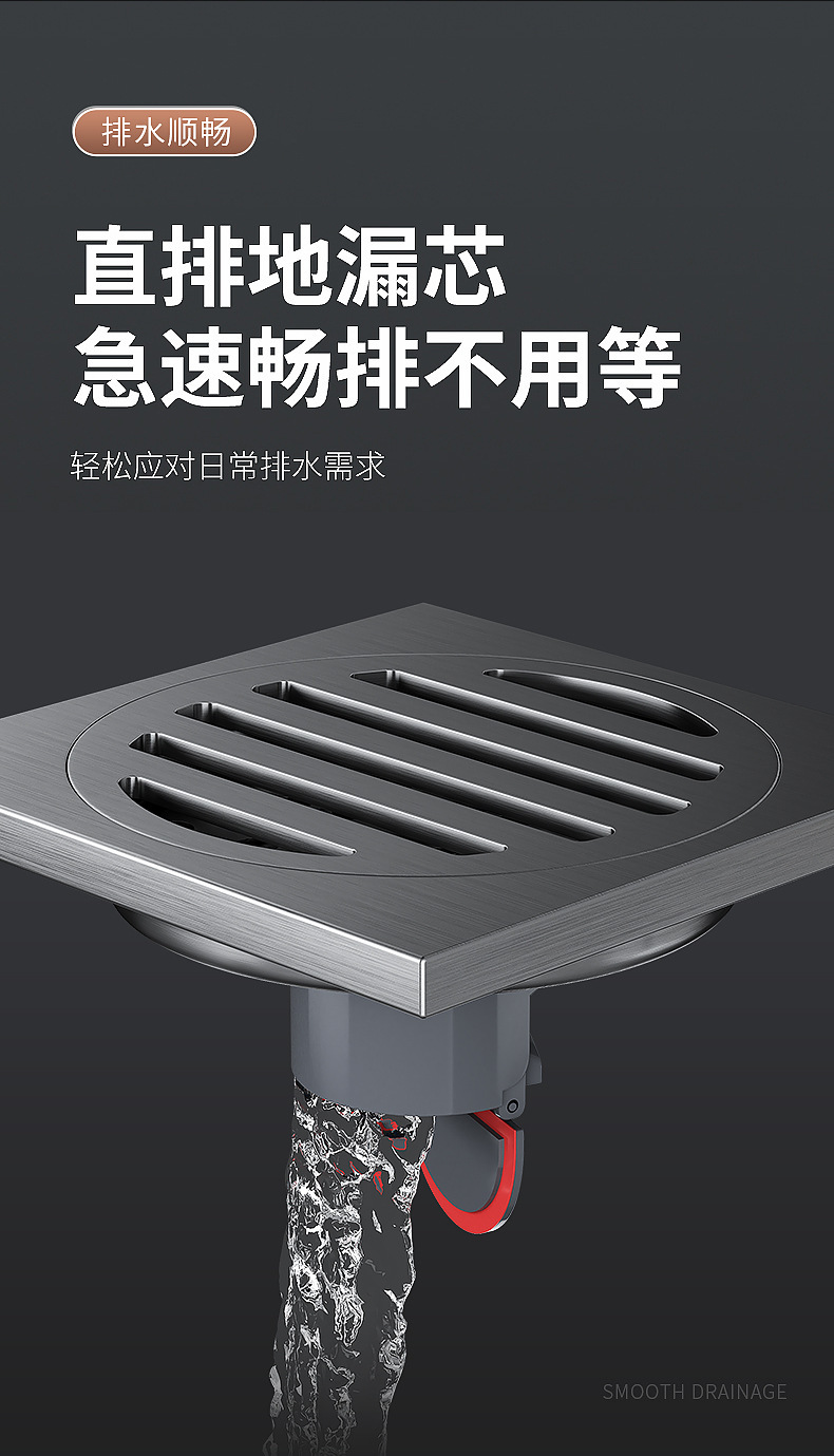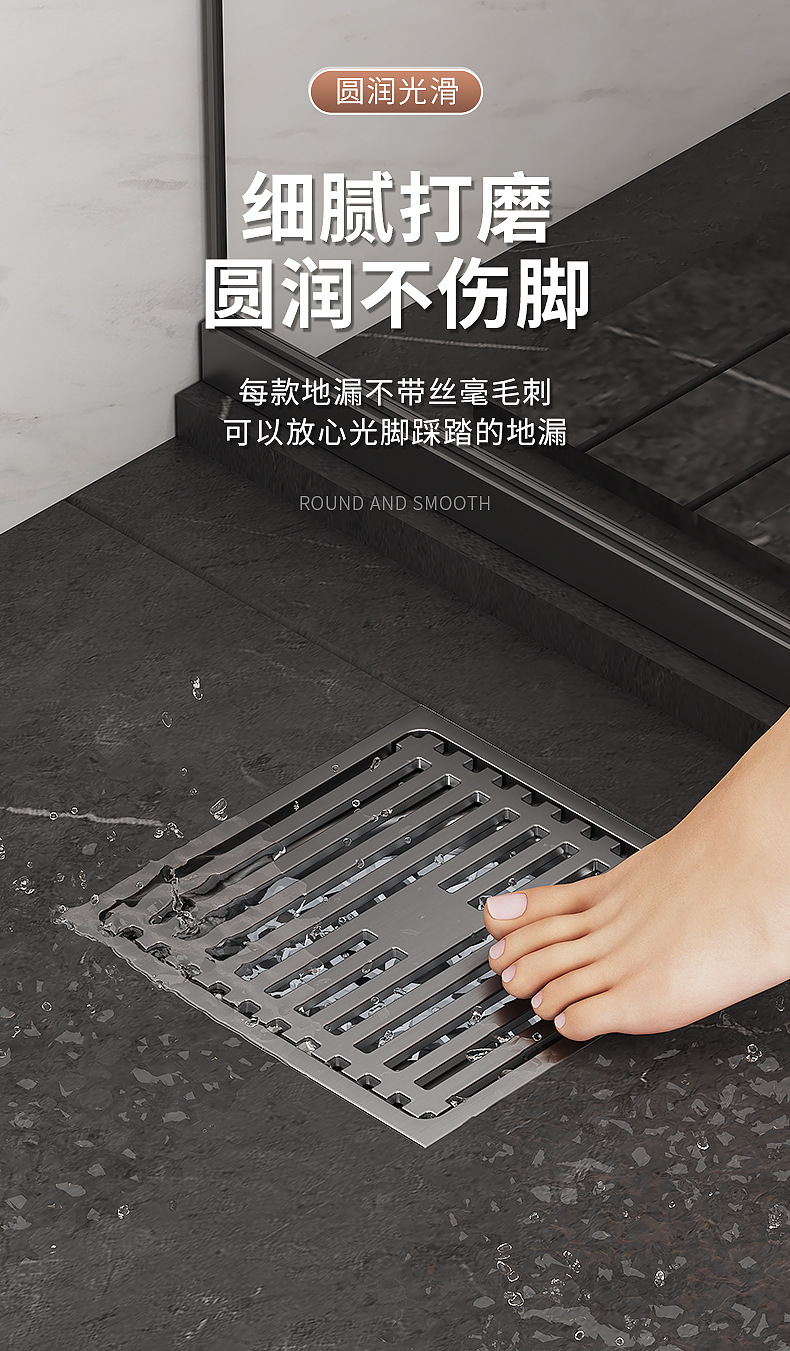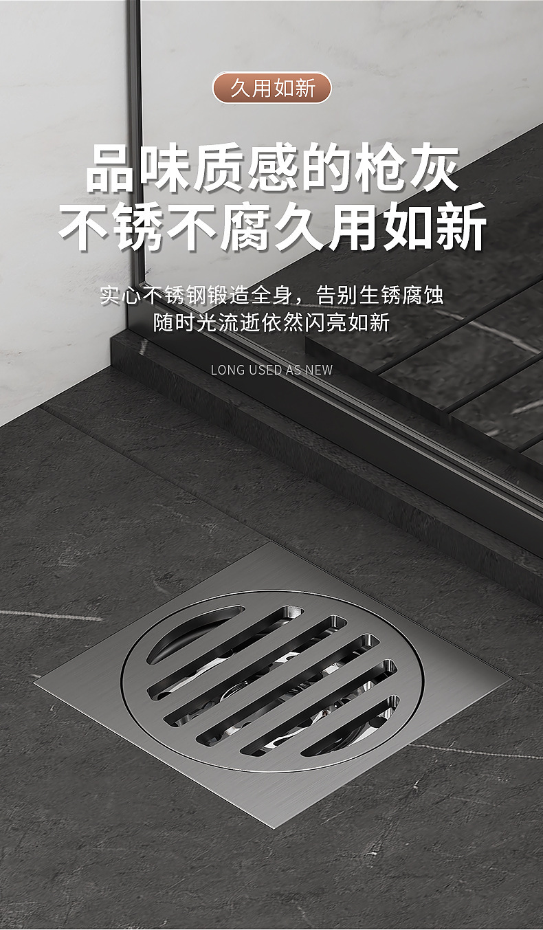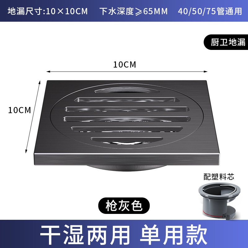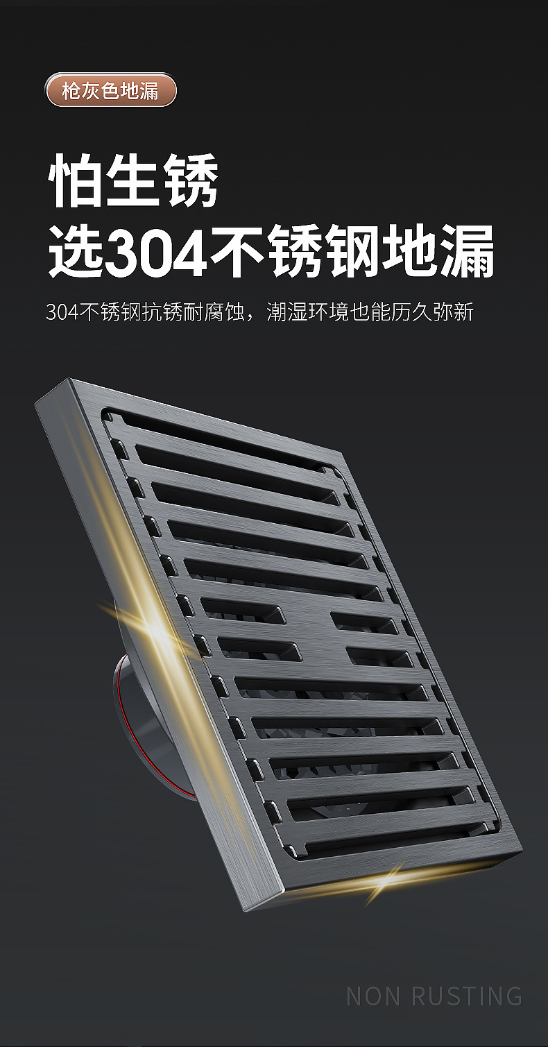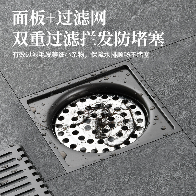 不锈钢地漏枪灰色大排量下水道浴室淋浴房防虫卫生间厕所防臭地漏