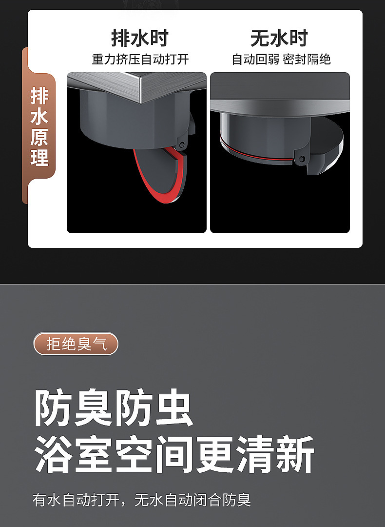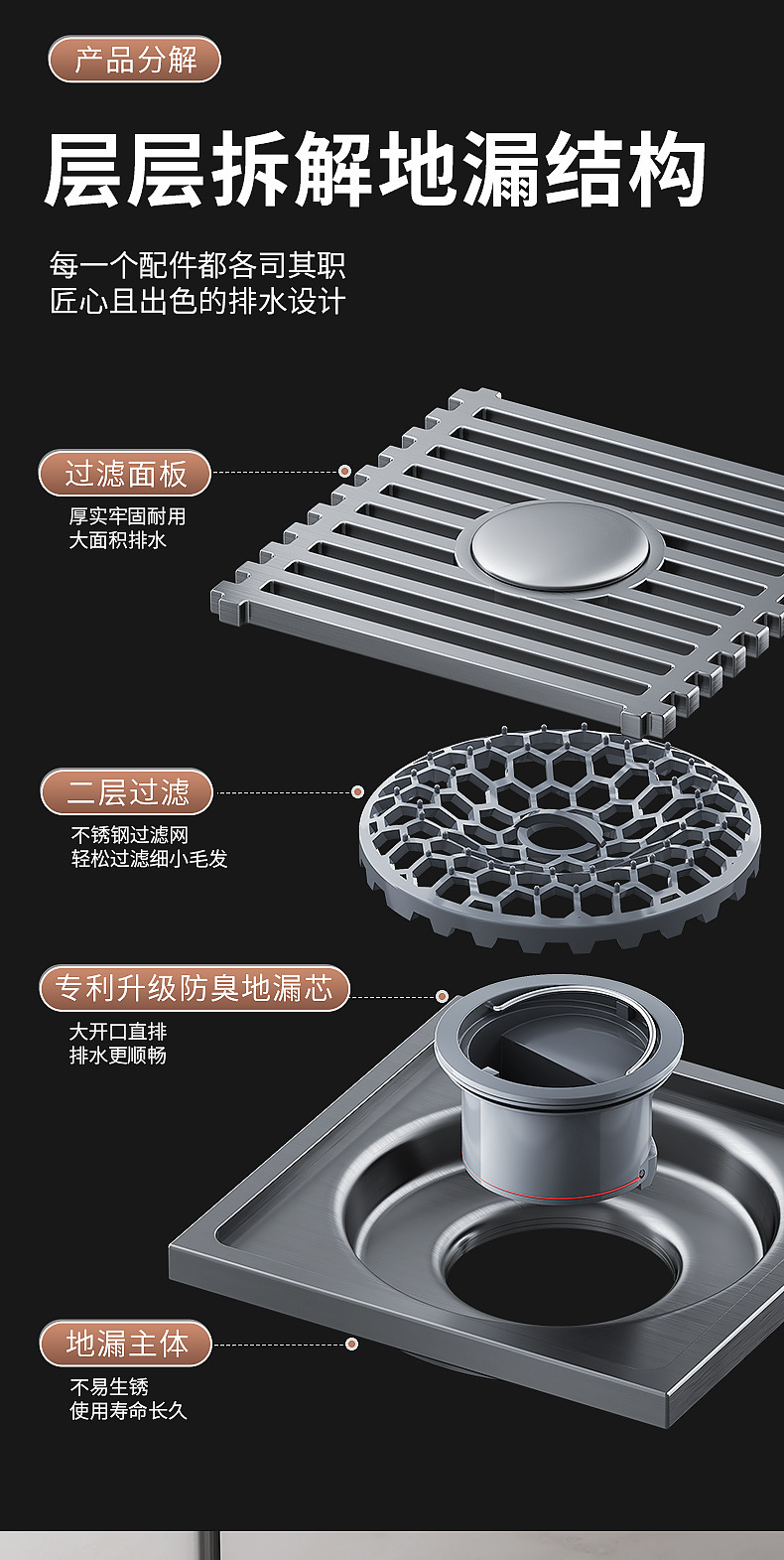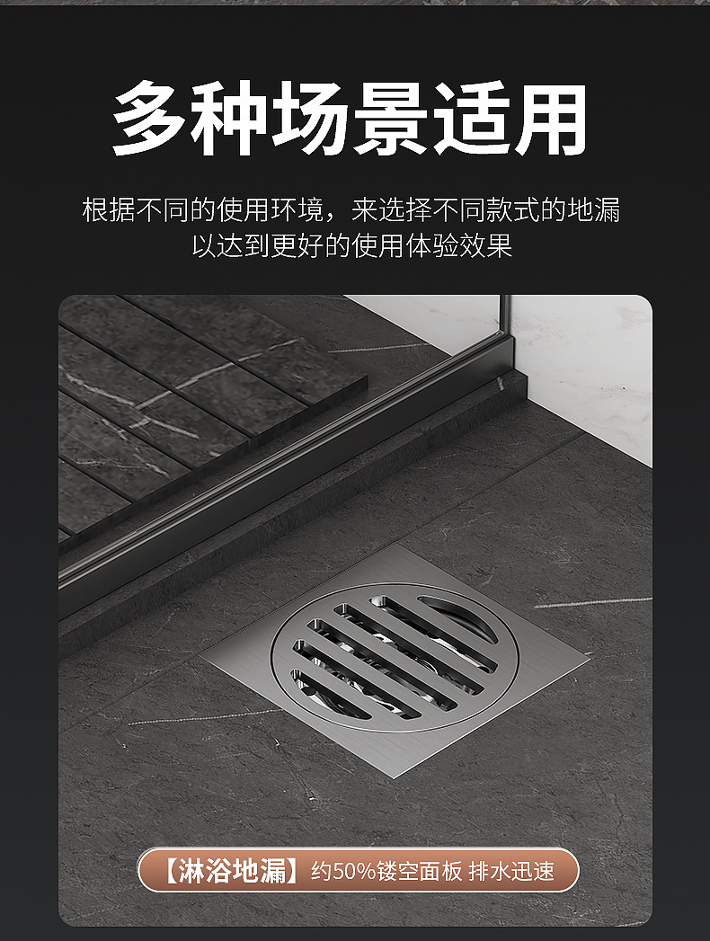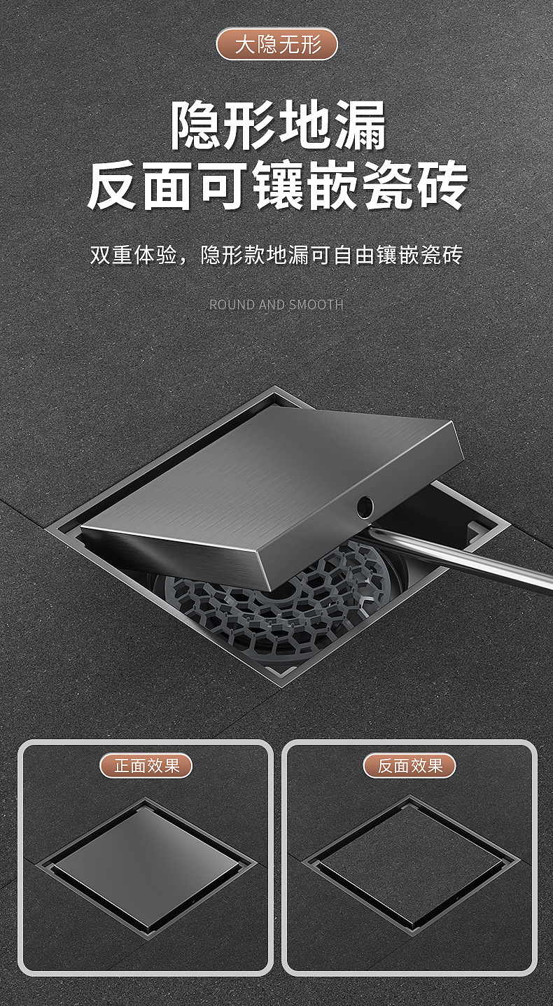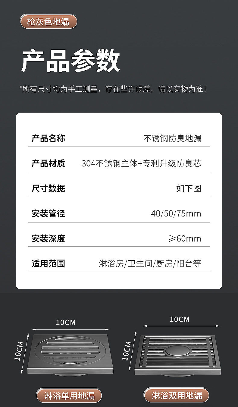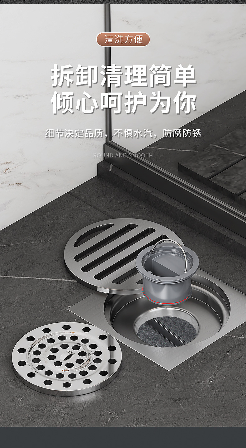 不锈钢地漏枪灰色大排量下水道浴室淋浴房防虫卫生间厕所防臭地漏