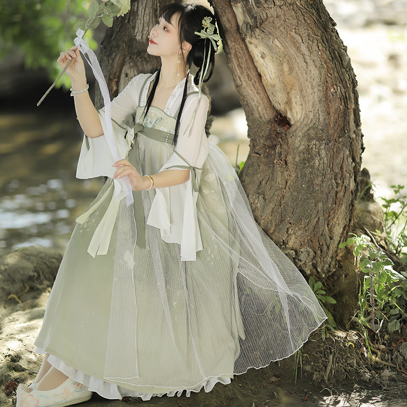 原创设计小栀夏中国风改良汉元素汉服女上衣吊带裙套装春夏8575