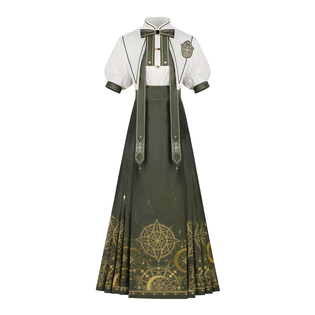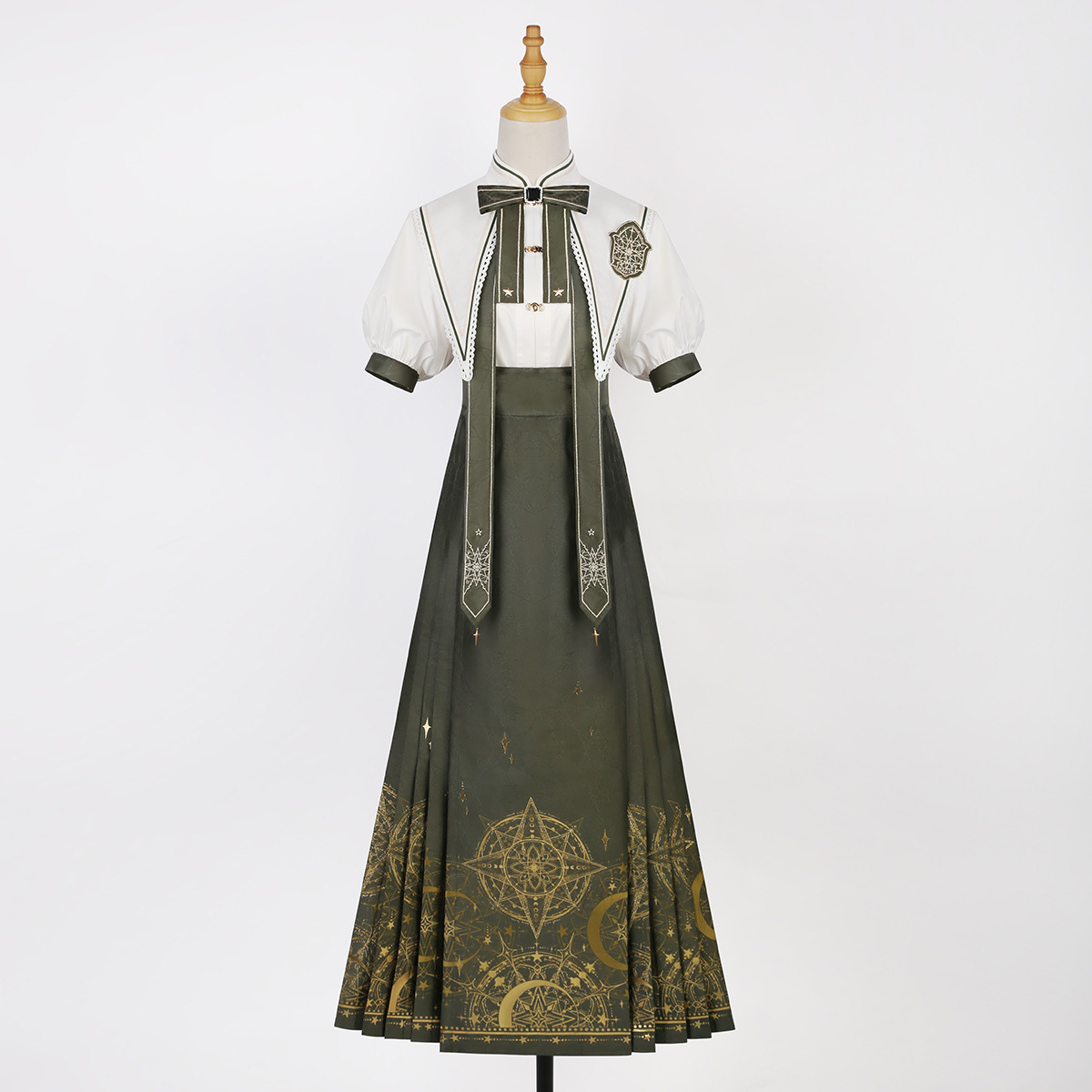 原创神秘魔法汉服女中国风改良汉元素短袖上衣马面裙套装9065