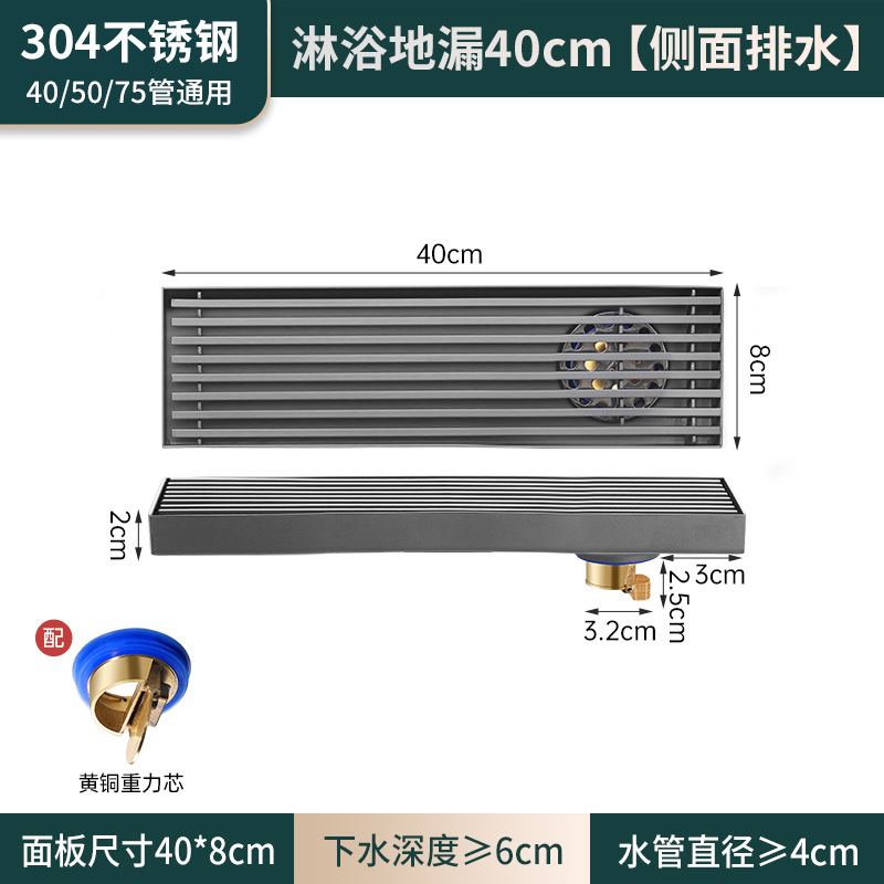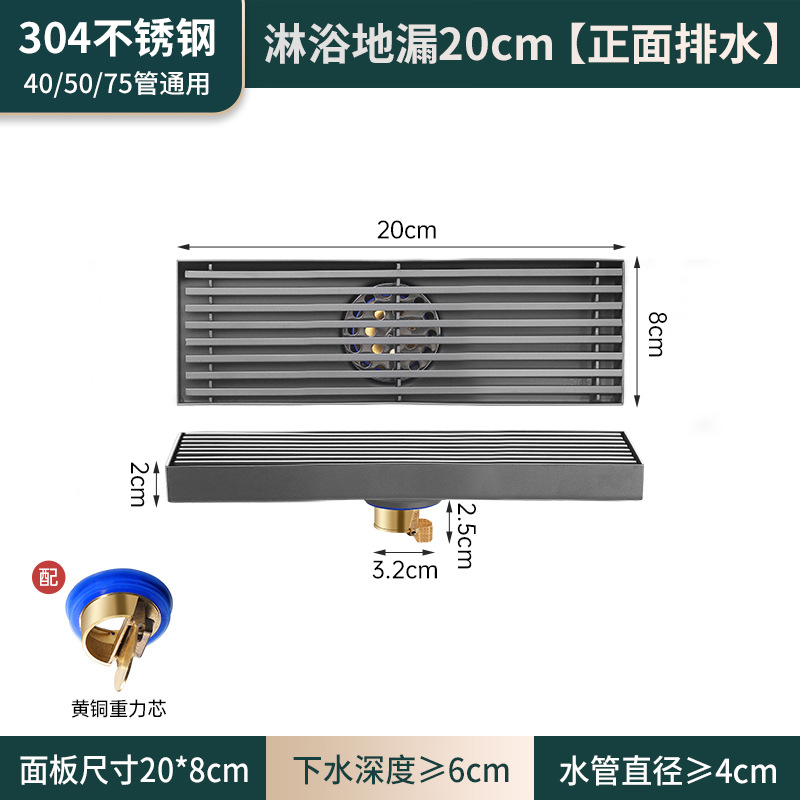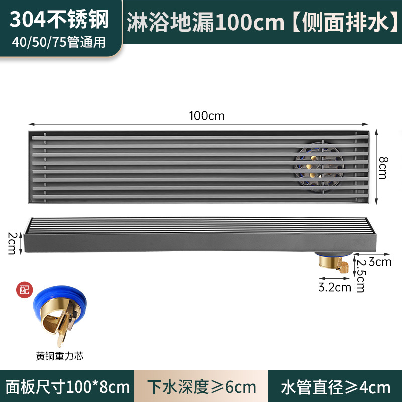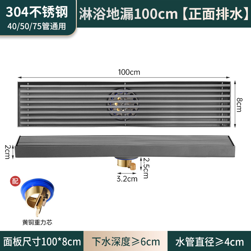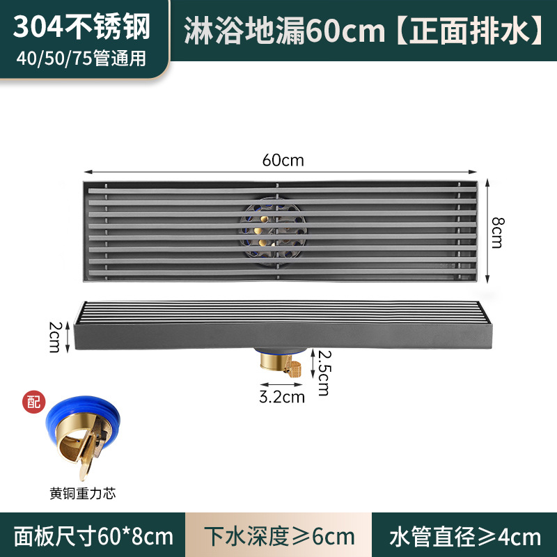 枪灰长条形地漏长形304不锈钢防臭全铜芯卫生间浴室长方形大排量