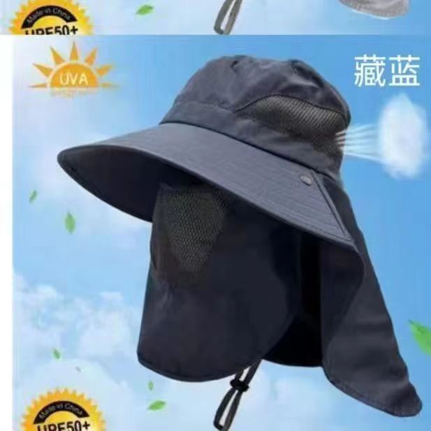 户外登山帽子男士钓鱼遮脸连体大帽檐防晒遮阳帽防紫外采茶渔夫帽
