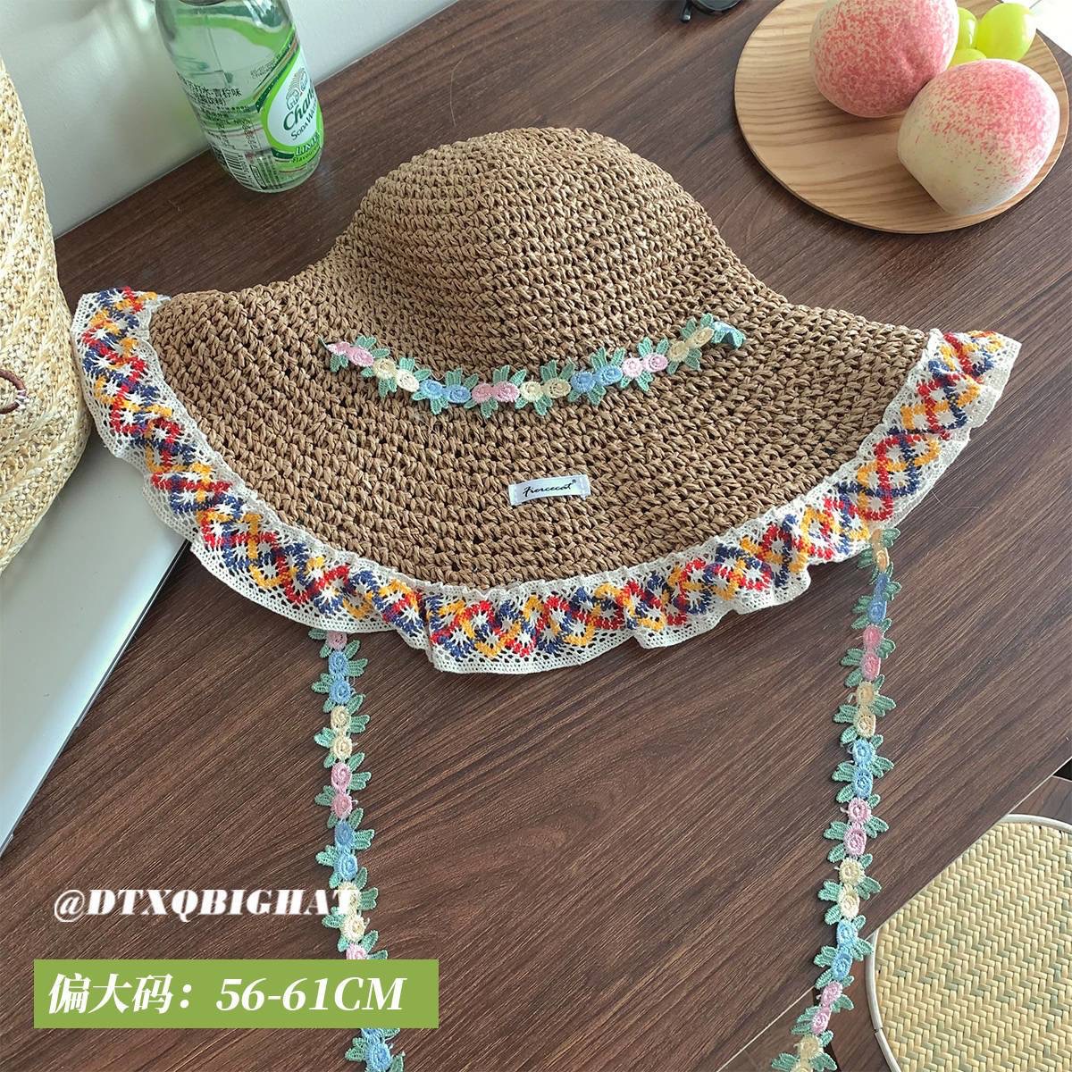 新款法式大帽檐百搭草帽女士海边度假防紫外线沙滩帽子民族风草帽