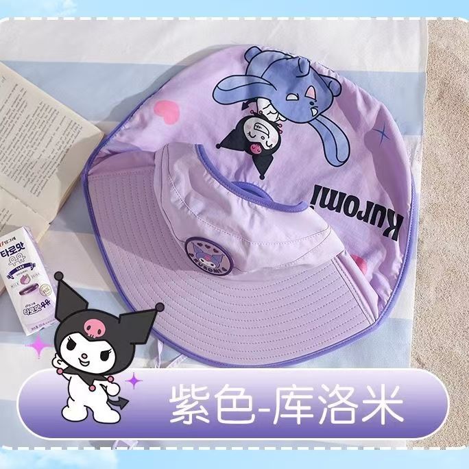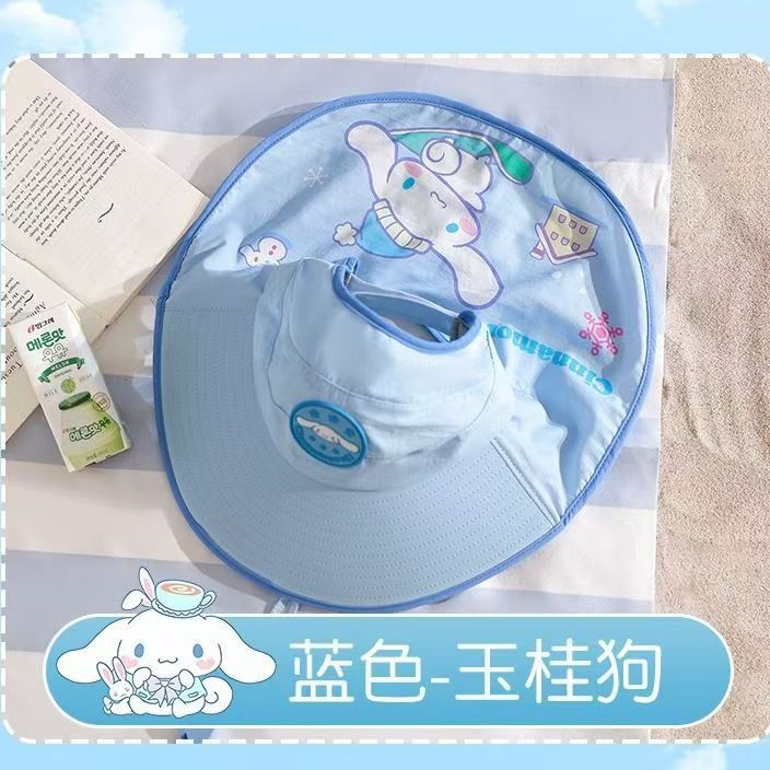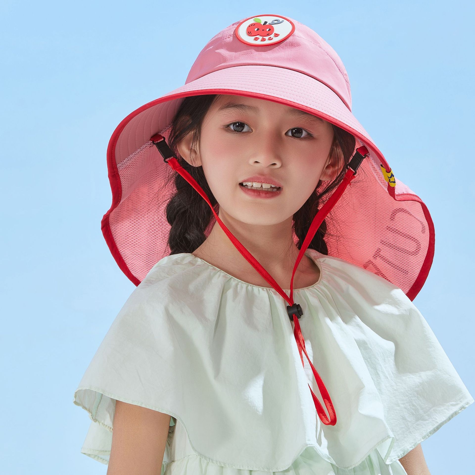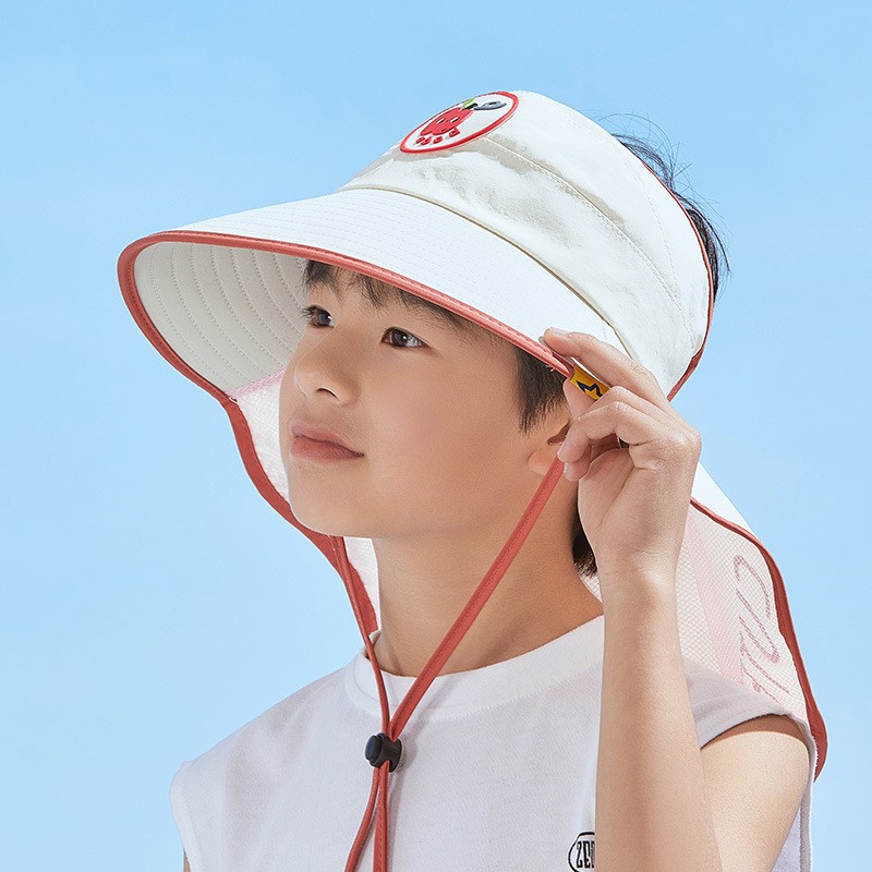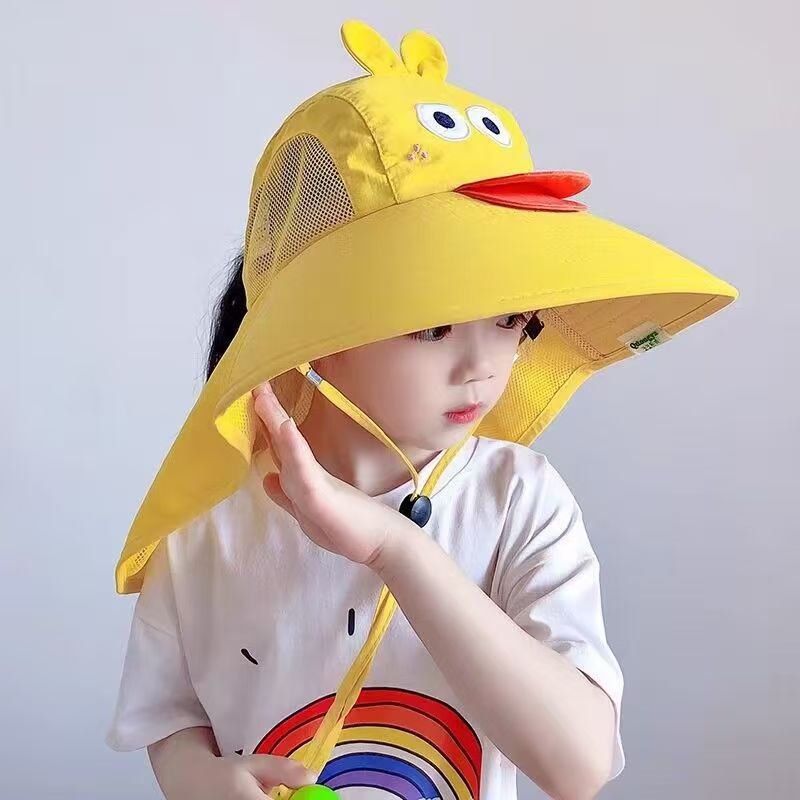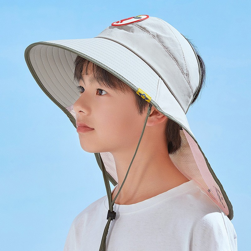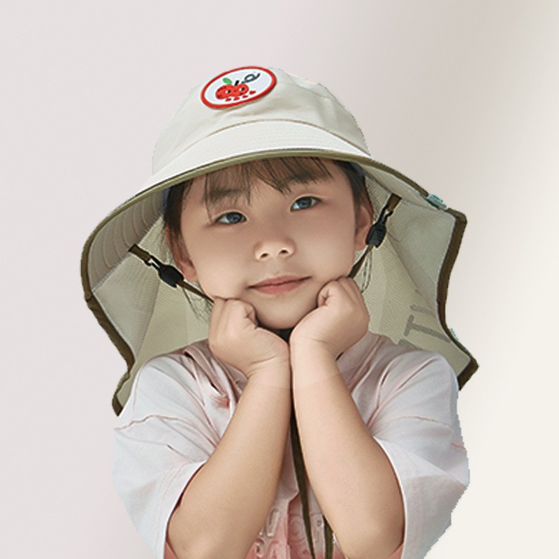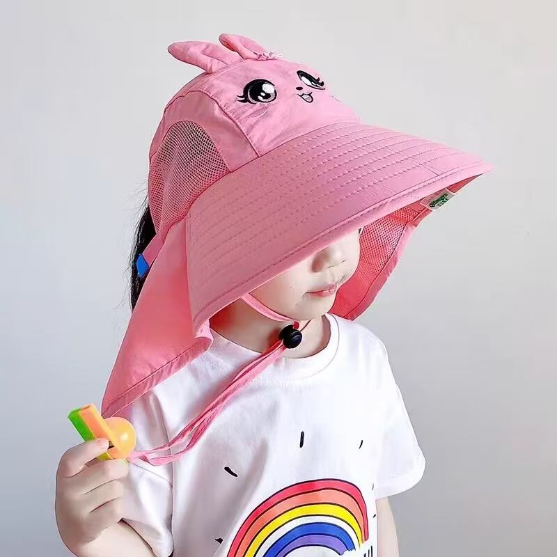 儿童新款渔夫帽透气遮阳帽男女童防紫外线大帽檐披肩口哨防风帽子