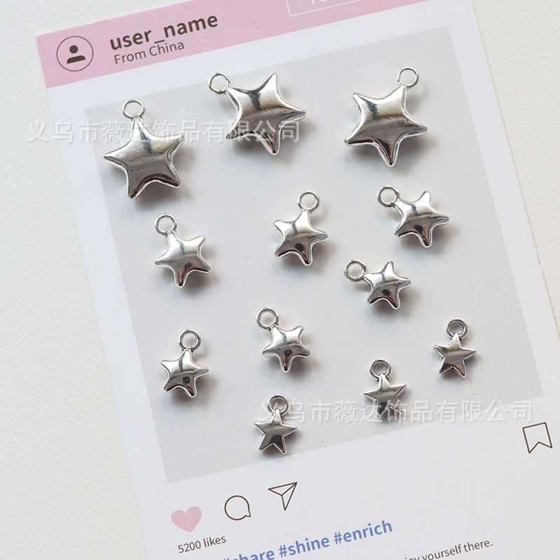 热销合金diy配饰ins风韩系立体五角星吊坠手机链项链饰品配件批发