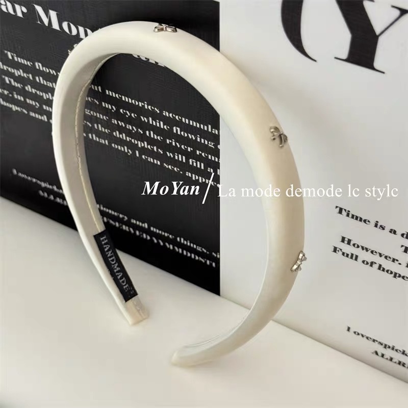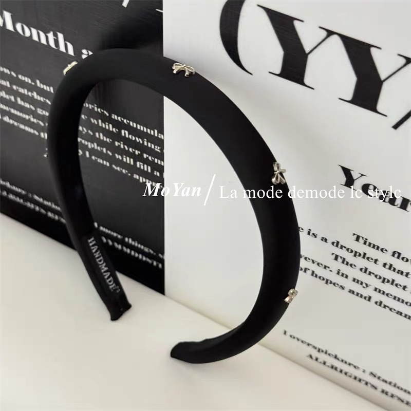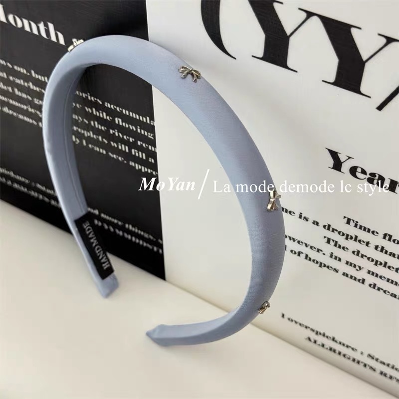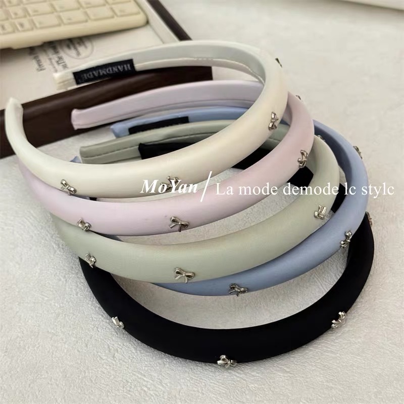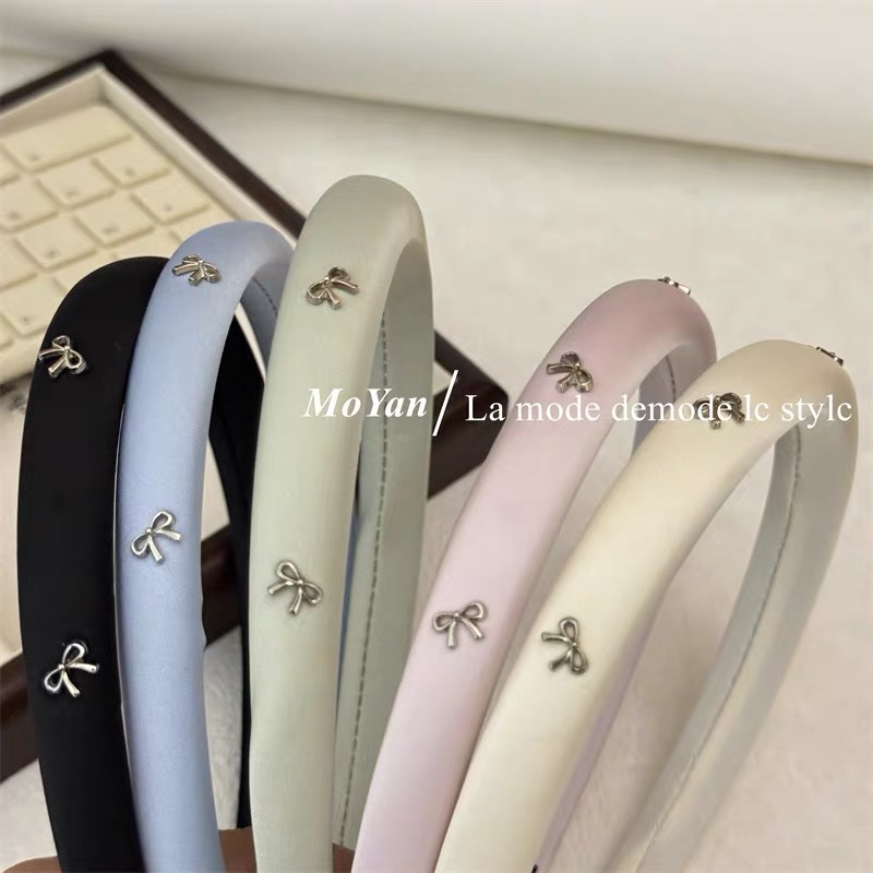 韩版时尚窄版新款银色蝴蝶结纯色布艺海绵高颅顶头箍头饰发箍女