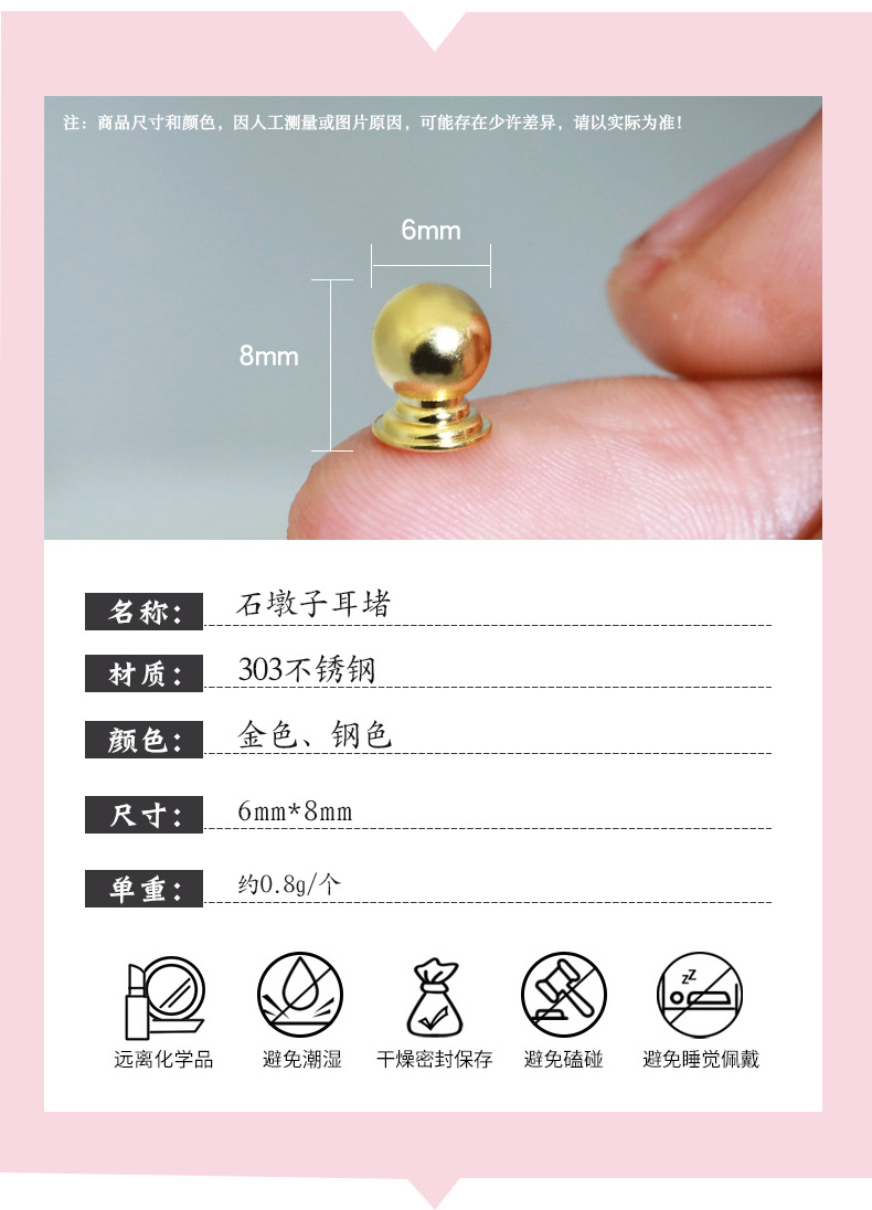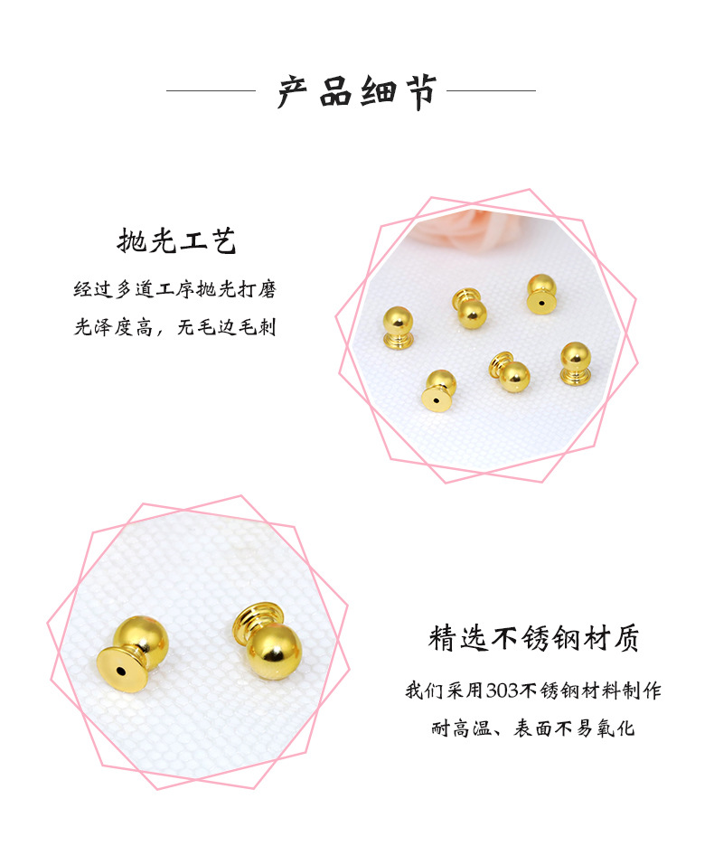 拉不掉的耳堵不锈钢耳钉后塞防掉固定扣耳帽镀18K真金diy饰品配件