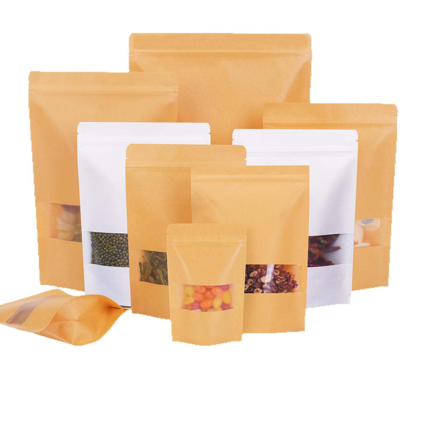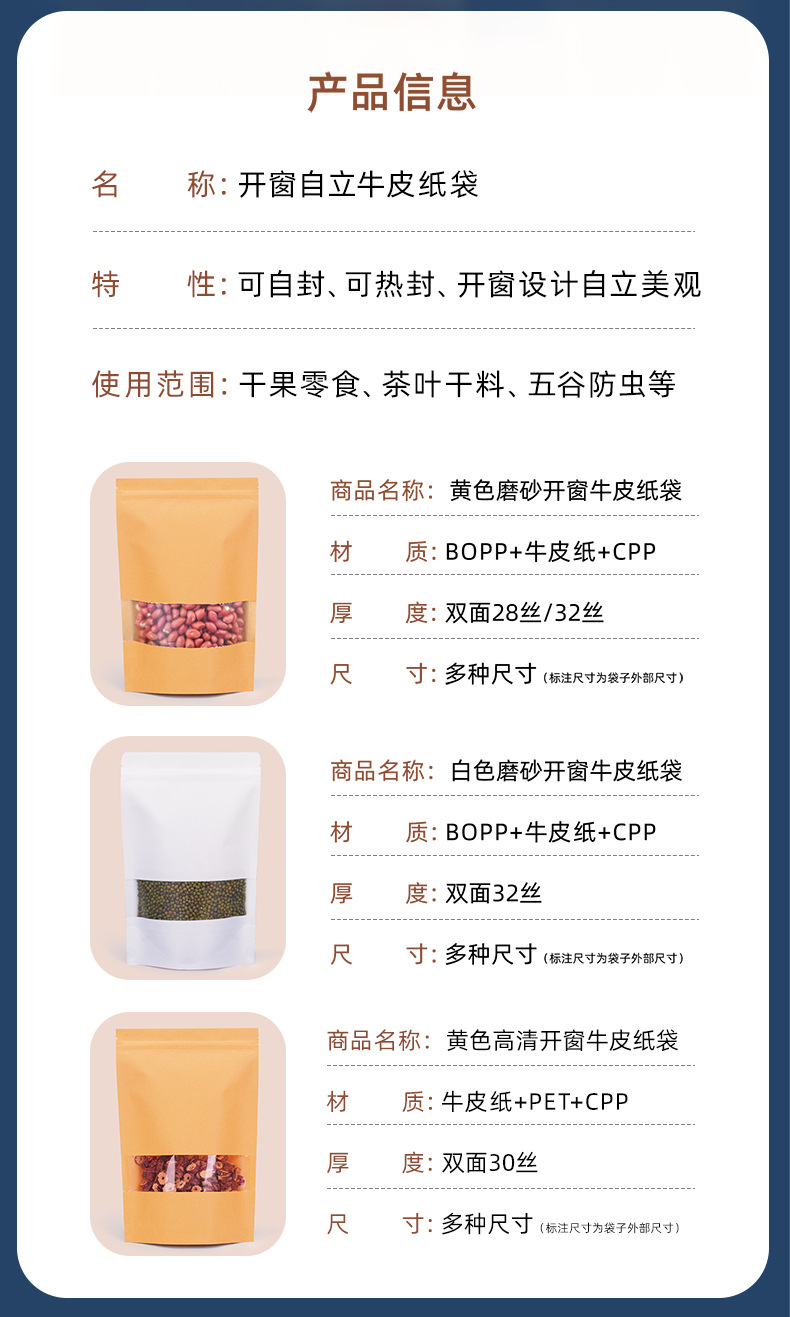 加厚开窗牛皮纸袋坚果干果自立自封袋食品级密封袋茶叶包装袋定制