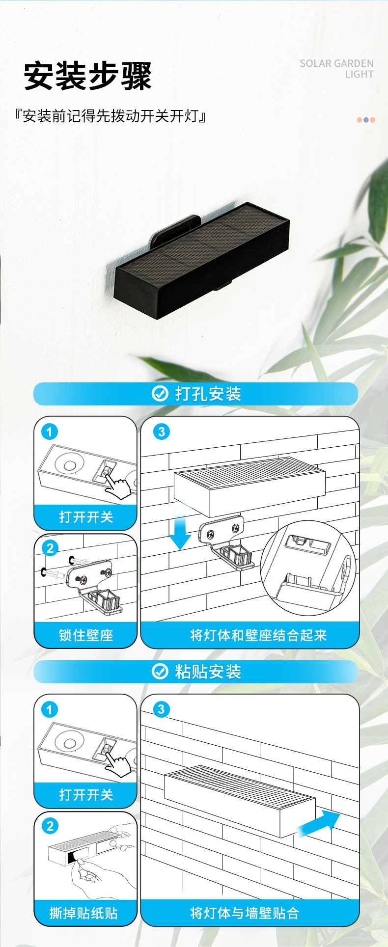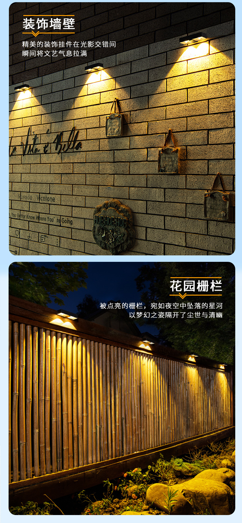 25年新款太阳能灯户外庭院花园院子led感应式洗墙装饰太阳能壁灯