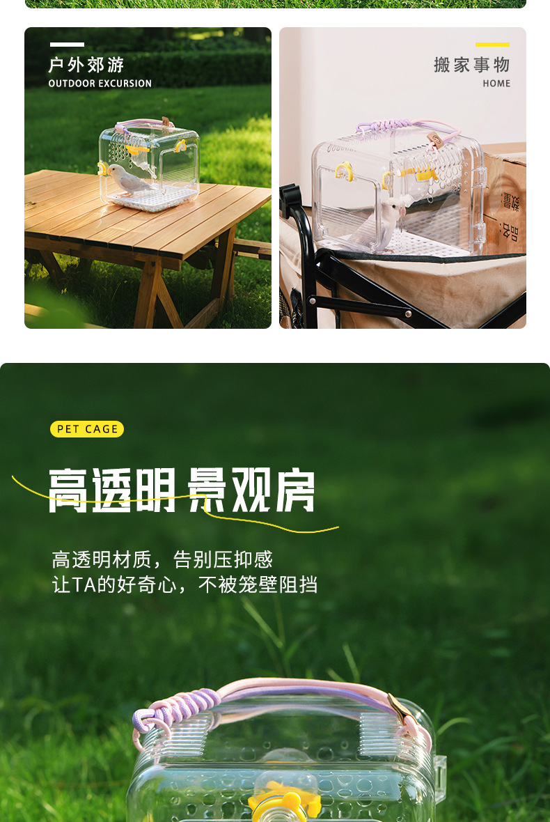 鹦鹉外带笼透气透明户外便携外出笼虎皮玄风牡丹通用鸟笼防逃设计