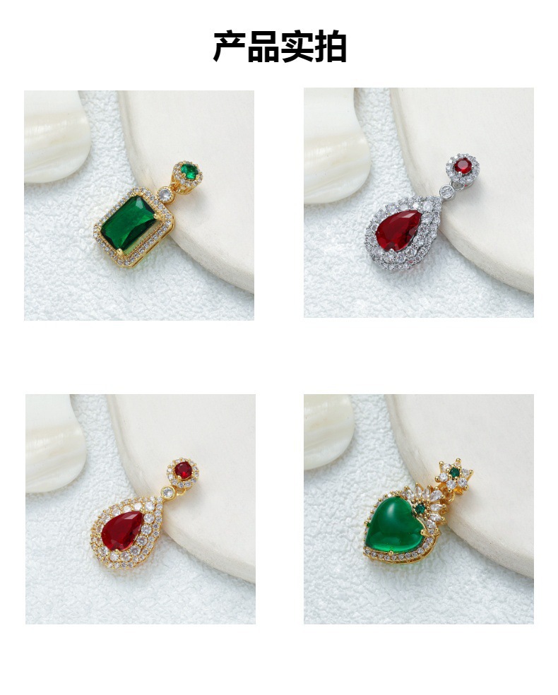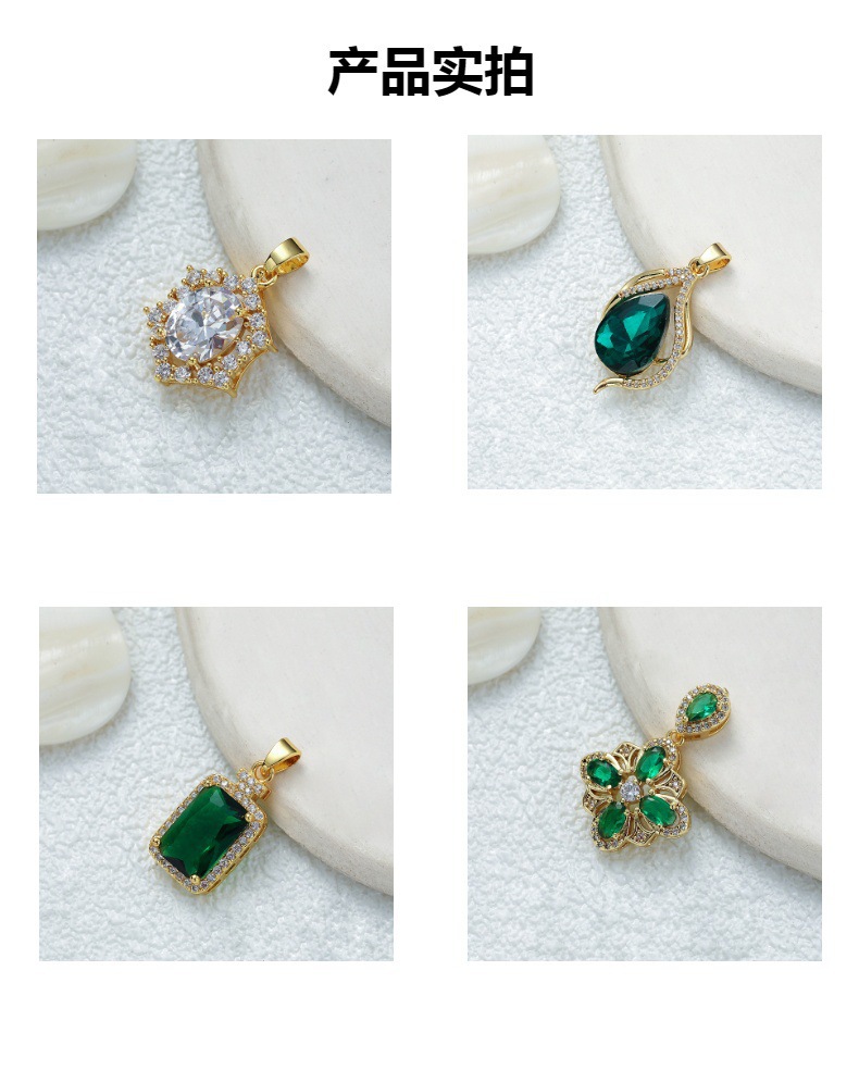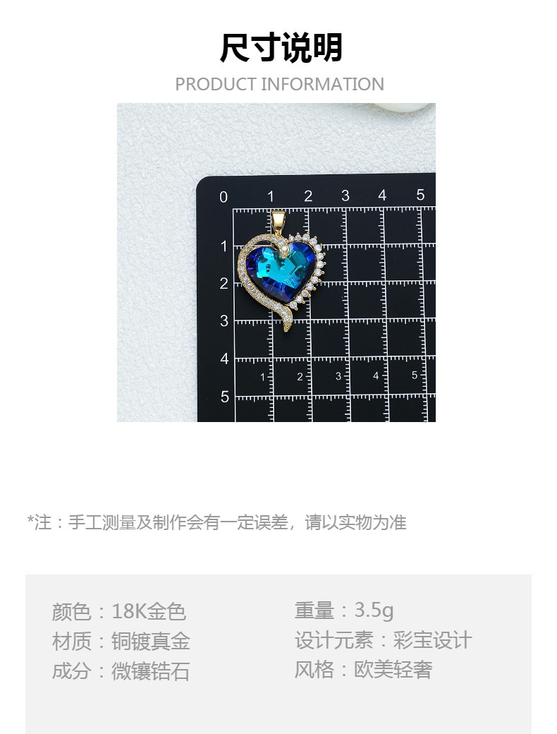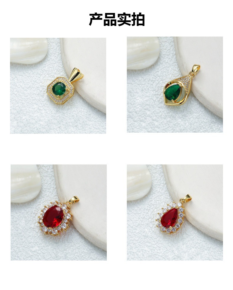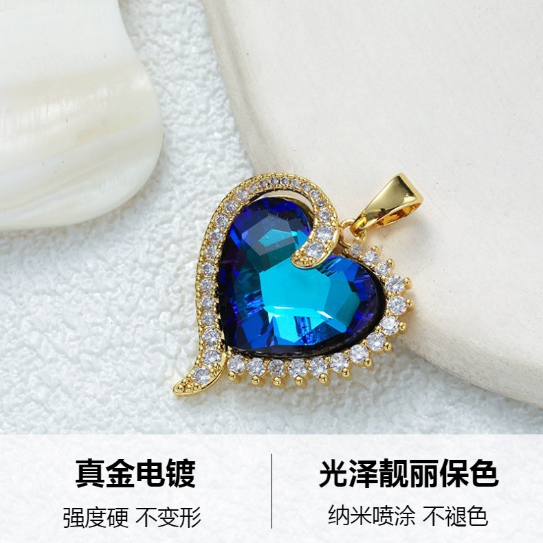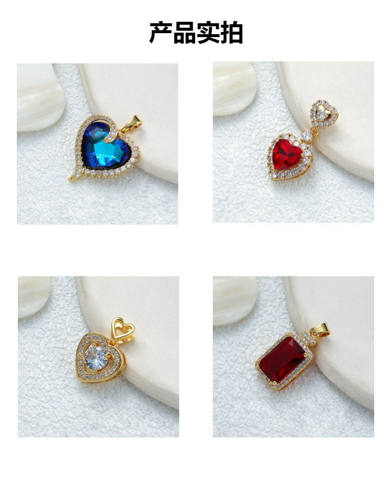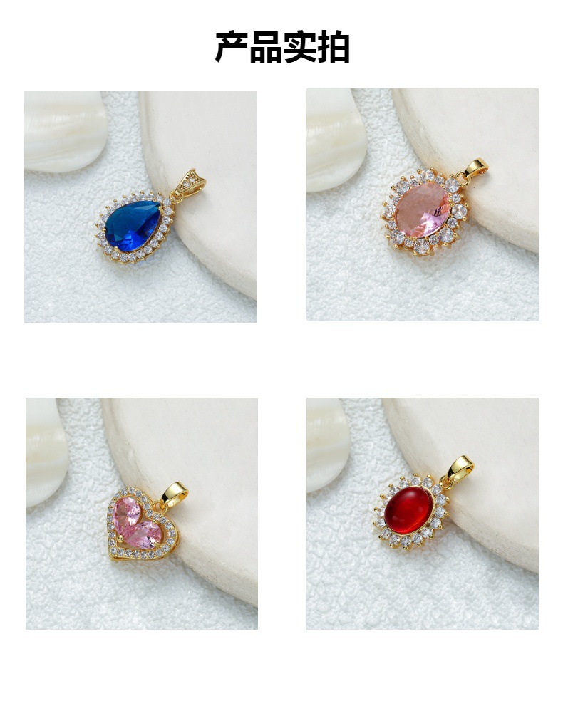 跨境铜镶锆石保色吊坠单坠女式时尚水滴心形爱心DIY项链女配饰