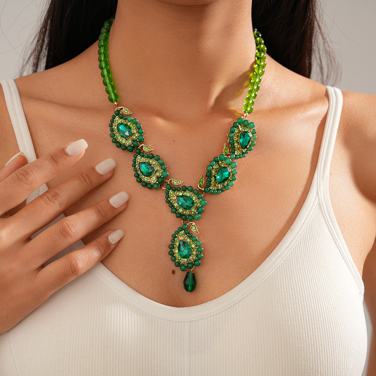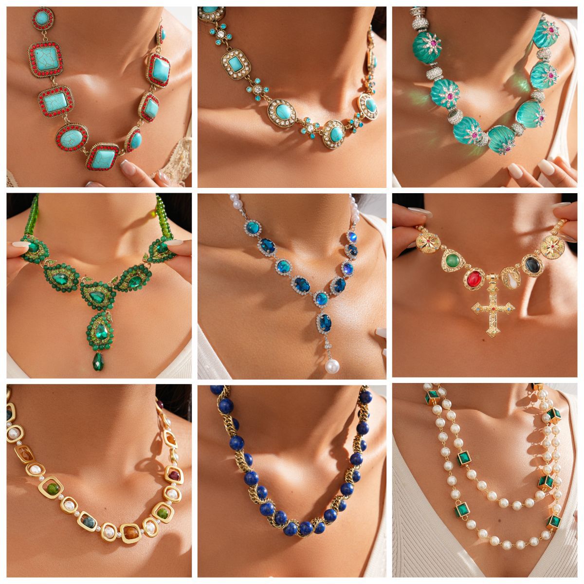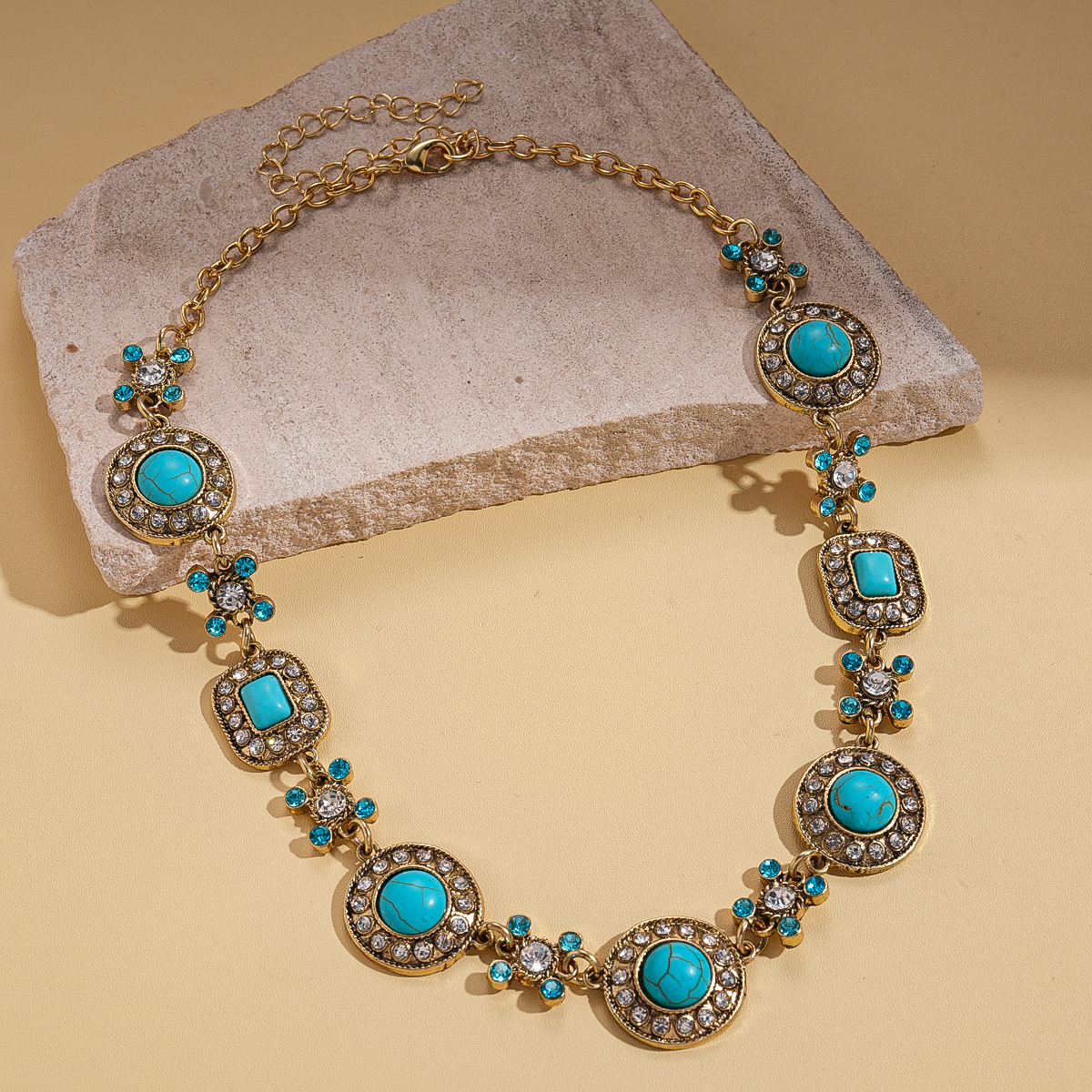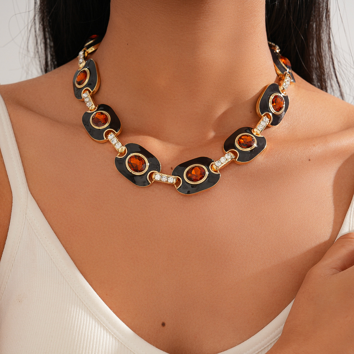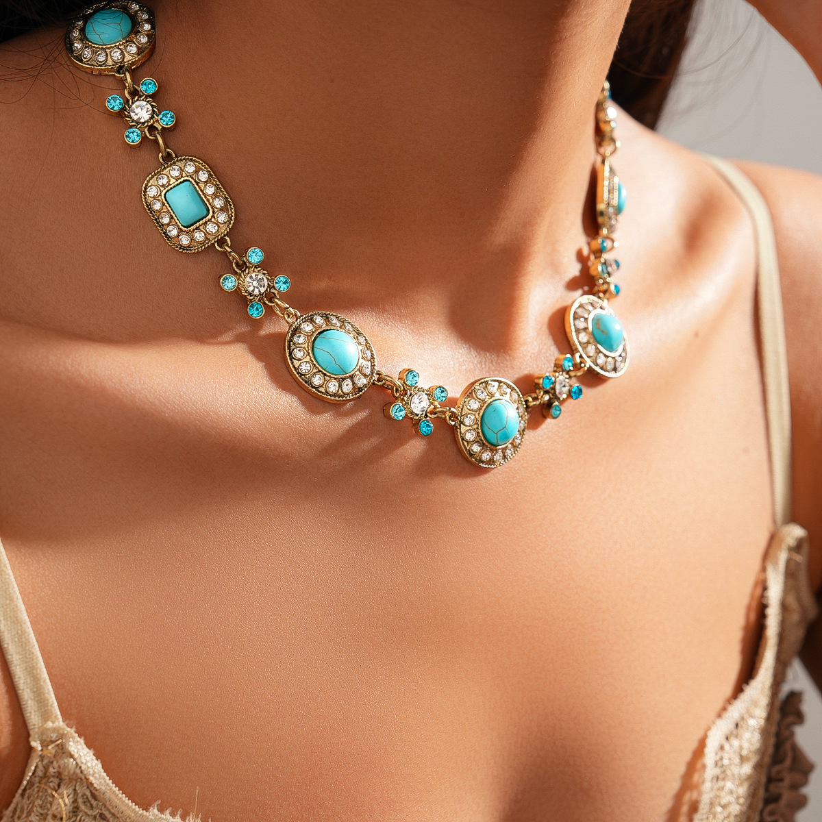 欧美跨境新款中古镶钻项链小众设计感锁骨链气质潮流复古百搭项饰