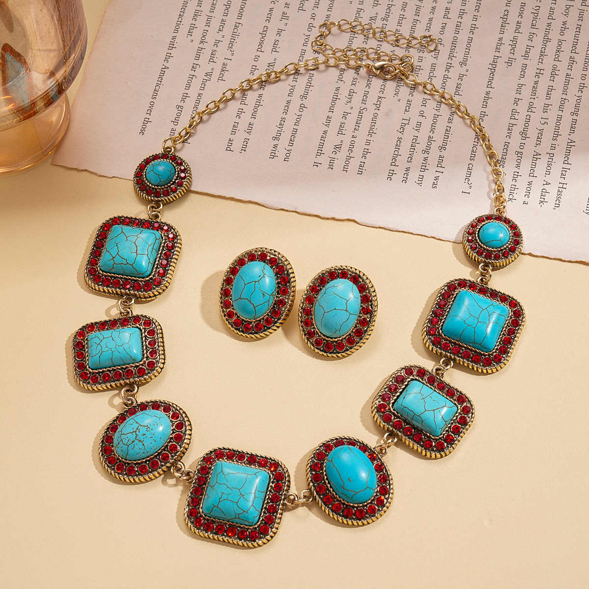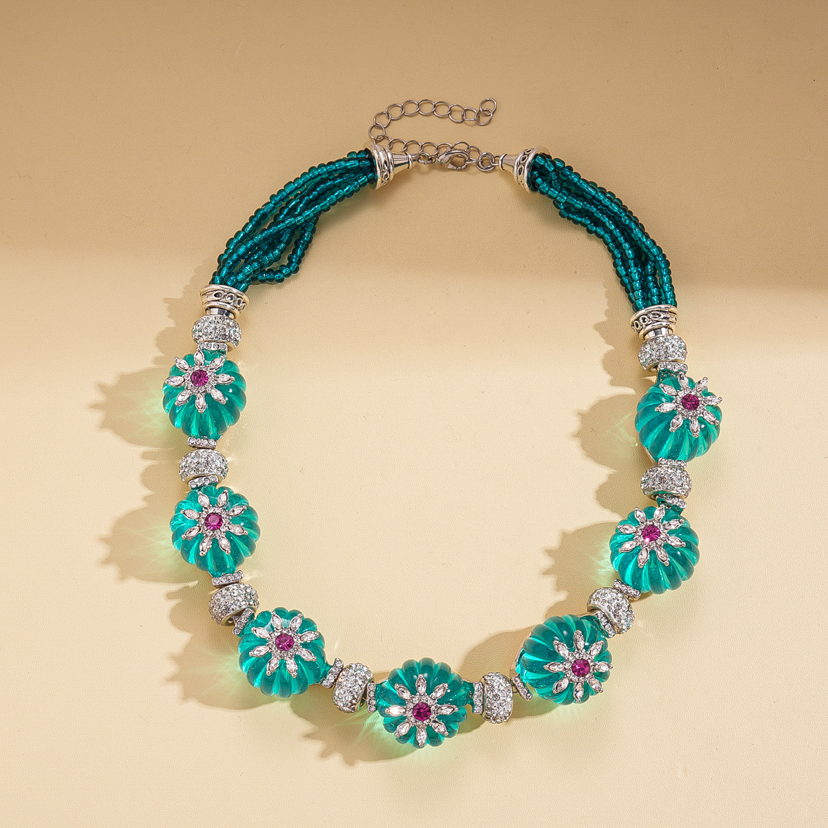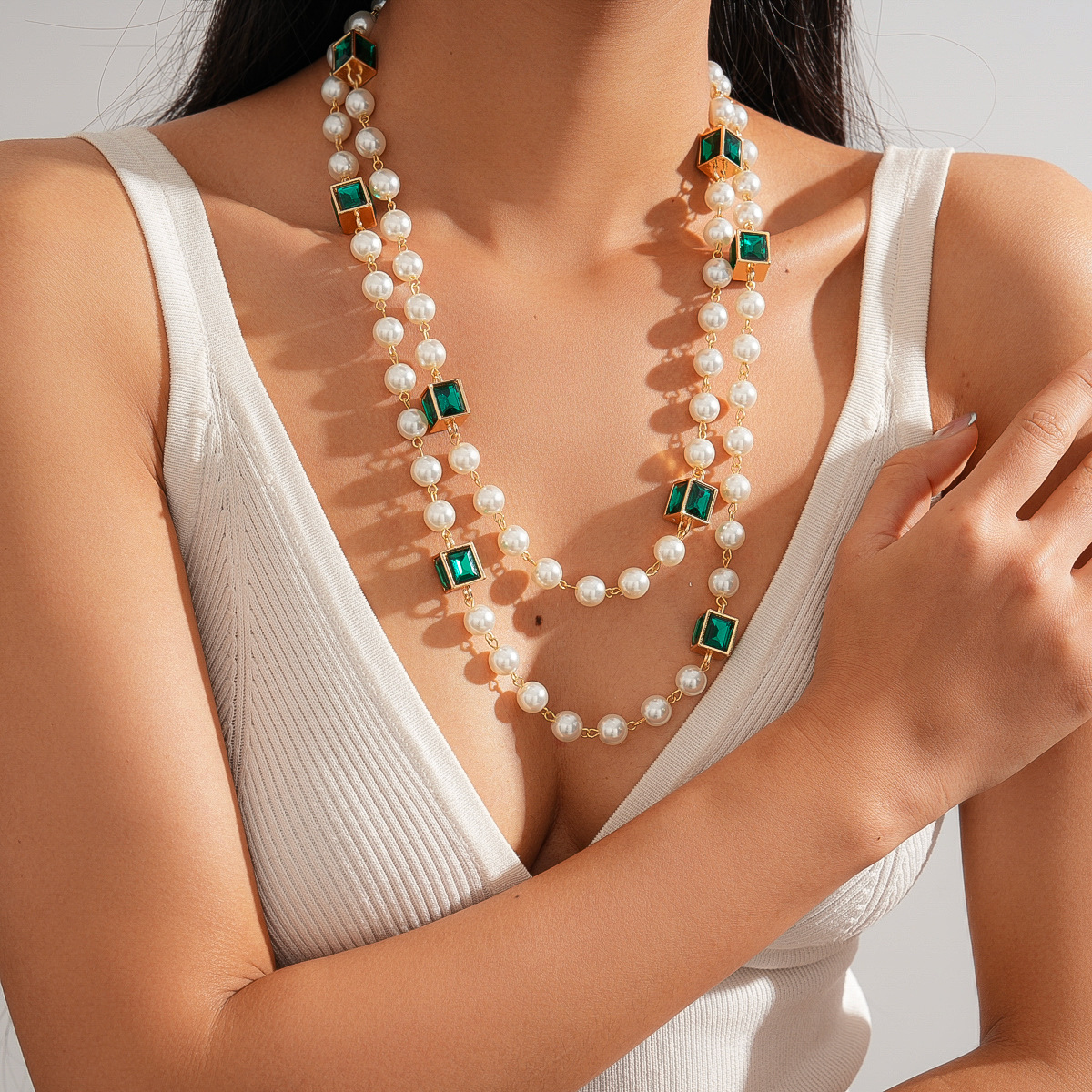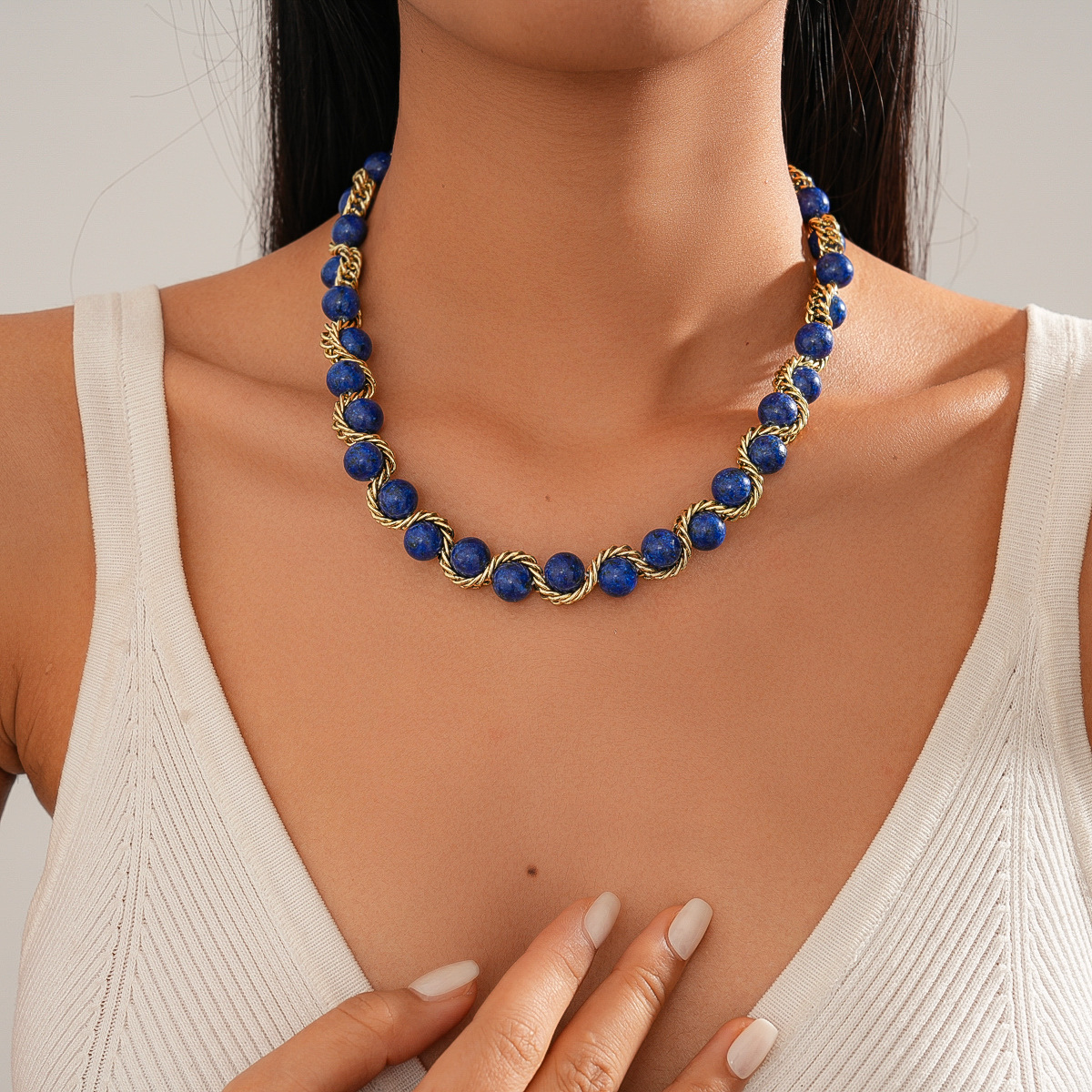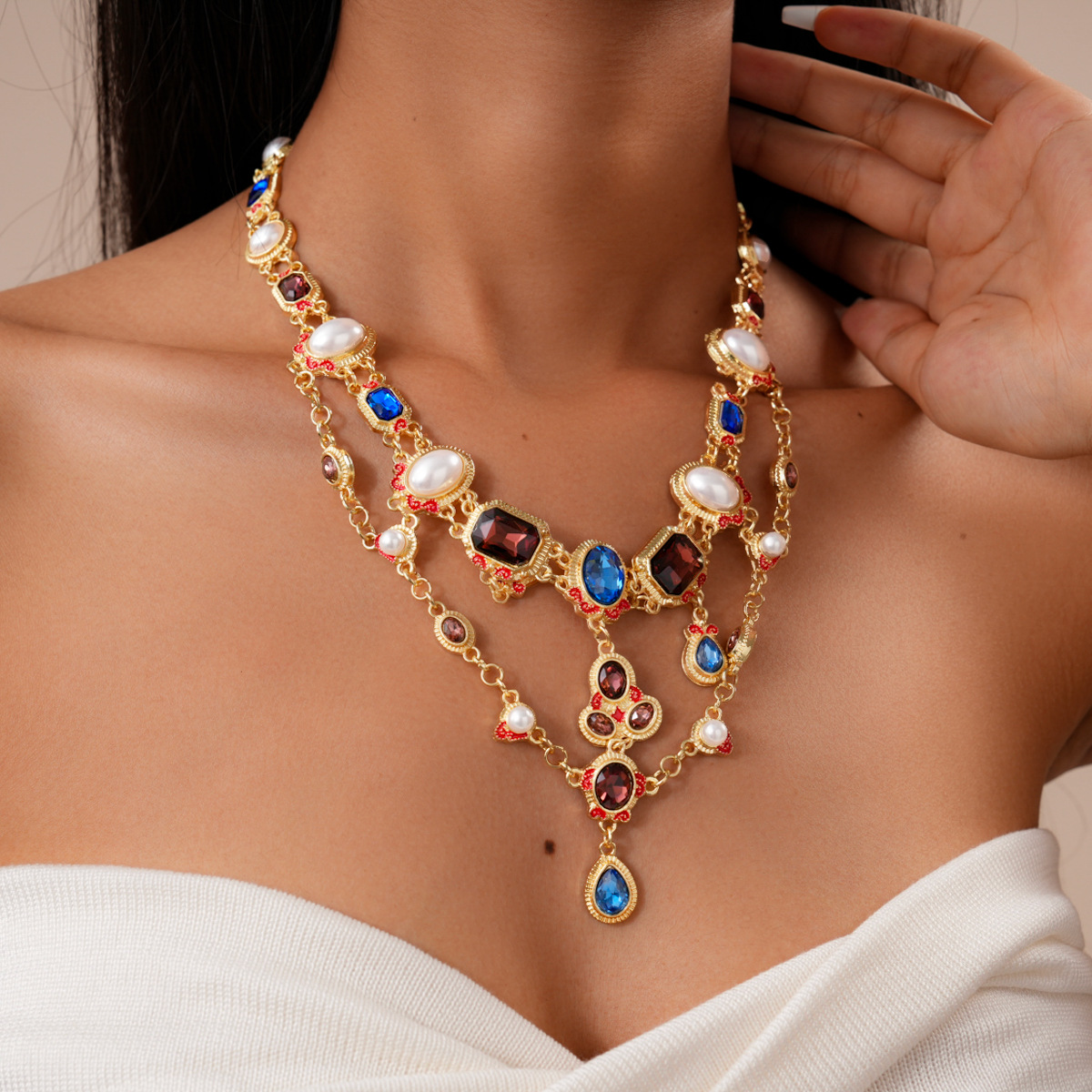 欧美跨境新款中古镶钻项链小众设计感锁骨链气质潮流复古百搭项饰