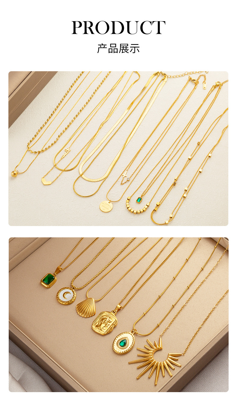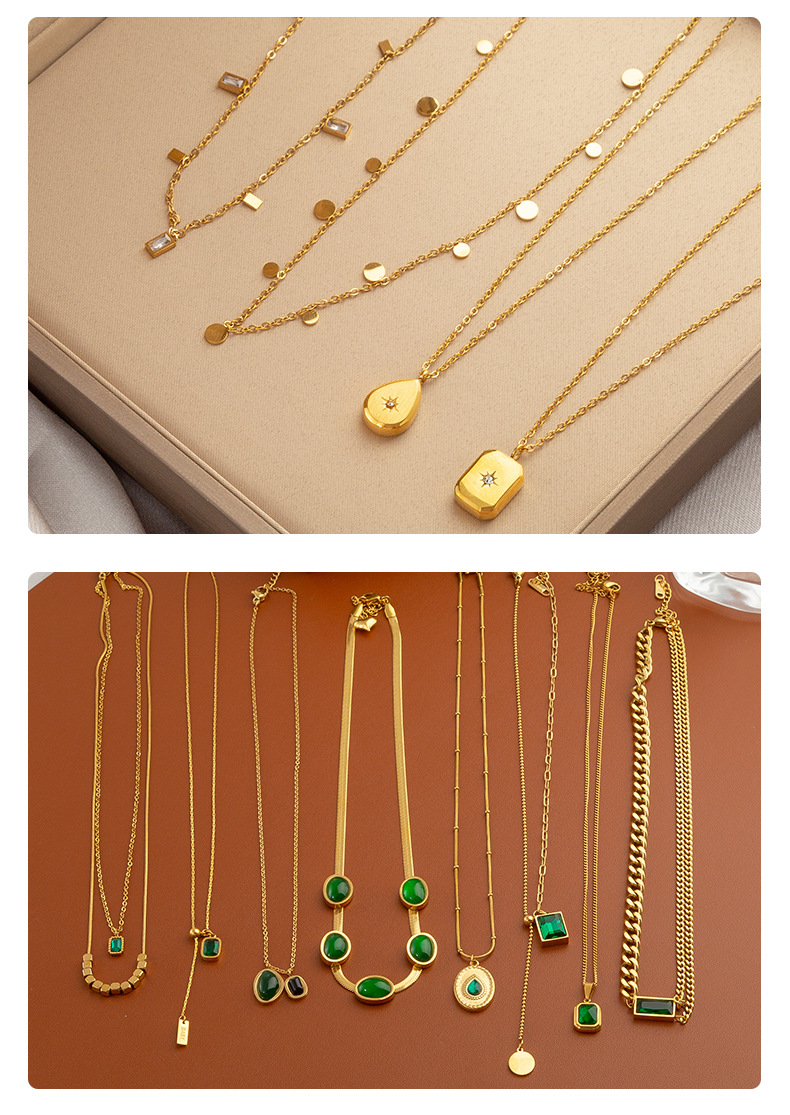 欧美时尚轻奢小众祖母绿钛钢项链女ins风高级感锁骨链配饰不掉色