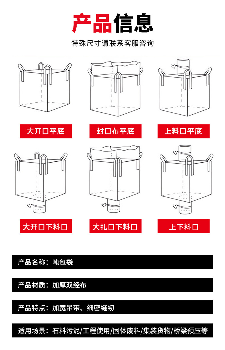 吨包袋工厂1.5吨2吨批发防磨敞口四吊平底耐磨包装预压编织袋吨袋