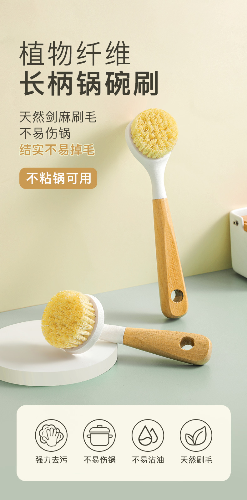 榉木剑麻软毛锅刷家用厨房清洁刷子长柄洗碗刷多功能刷锅神器批发