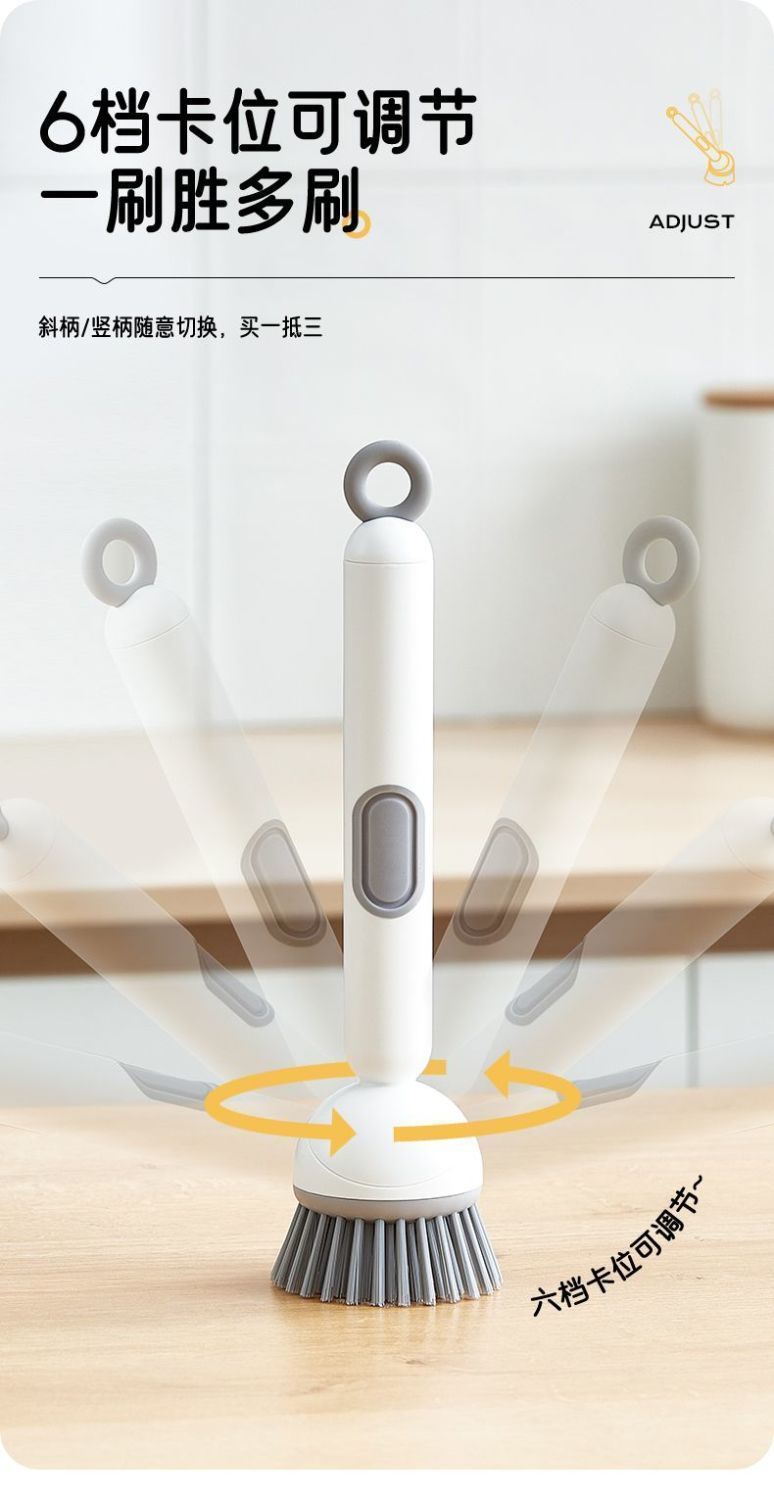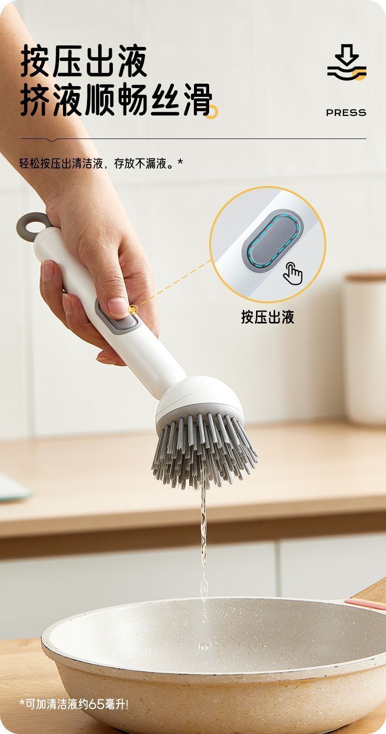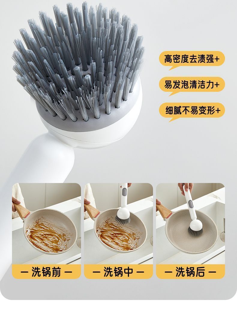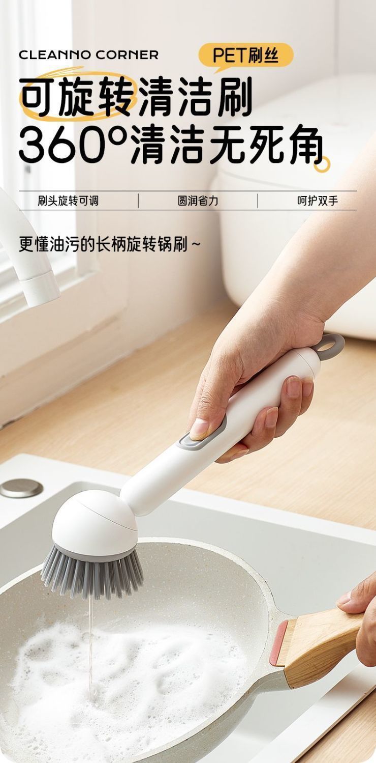 长柄加液多功能洗锅刷子家用可旋转锅刷按压出液洗碗不油手锅碗刷